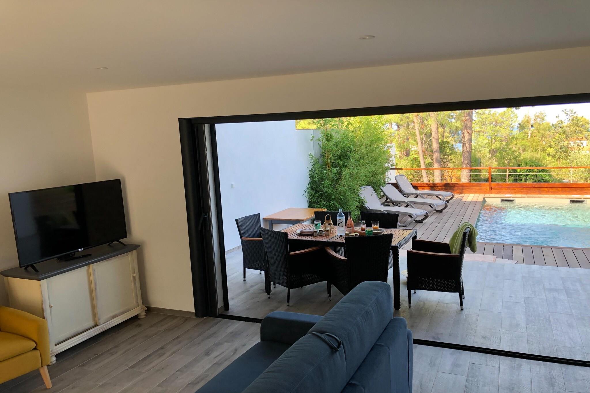 Åbent køkken(kogeplade(induktion), elkedel, brødrister, kaffemaskine, ovn, mikrobølgeovn, opvaskemaskine , køle-fryseskab), stue / spisestue(dobbeltsovesofa, Fjernsyn), soveværelse(dobbeltseng(160 x 190 cm)), badeværelse(bruser, toilet), vaskemaskine, klimaanlæg, terrasse, havemøbler, solstole, swimmingpool(privat, udendørs)