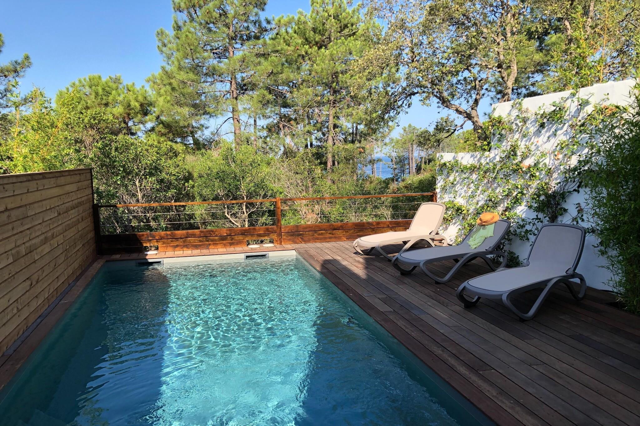 Beliggende i kystbyen Solenzara på Korsika, tilbyder dette stilfulde rækkehus med privat pool en blanding af moderne komfort og middelhavsliv, ideelt for par, familier eller små grupper, der søger en afslappende ferie ved havet. Ejendommens veldesignede planløsning og udendørsarealer gør den perfekt til både hverdagsliv og ferieafslapning. Huset har en lys og rummelig opholds- og spisestue møbleret med komfortable siddepladser på en sovesofa med tv, et indbydende sted til måltider og socialt samvær. Ved siden af opholdsstuen er der et fuldt udstyret åbent køkken med moderne apparater, hvilket gør det nemt at lave mad selv under dit ophold. Rækkehuset tilbyder et komfortabelt dobbeltværelse plus et fuldt udstyret moderne badeværelse med moderne inventar, hvilket sikrer bekvemmelighed og privatliv for alle beboere. Yderligere faciliteter inkluderer aircondition for at holde dig komfortabel i de varmere måneder, gratis Wi-Fi i hele ejendommen og privat parkering på stedet for ubesværet ankomst og afgang. Udendørs er højdepunktet den private swimmingpool, perfekt til forfriskende dukkerter under den korsikanske sol. Terrassen er møbleret med havemøbler og liggestole, hvilket giver et indbydende sted til morgenkaffe, afslappede måltider eller aftendrinks ved solnedgang. Rækkehusets layout giver dig mulighed for at nyde udendørslivet i private omgivelser, der komplementerer kystklimaet. Beliggende i nærheden af Solenzaras strande, lystbådehavn, caféer og naturskønne vandreruter, tilbyder dette rækkehus både bekvemmelighed og ro - hvilket gør det til et fremragende valg for et mindeværdigt ophold på den korsikanske kyst.