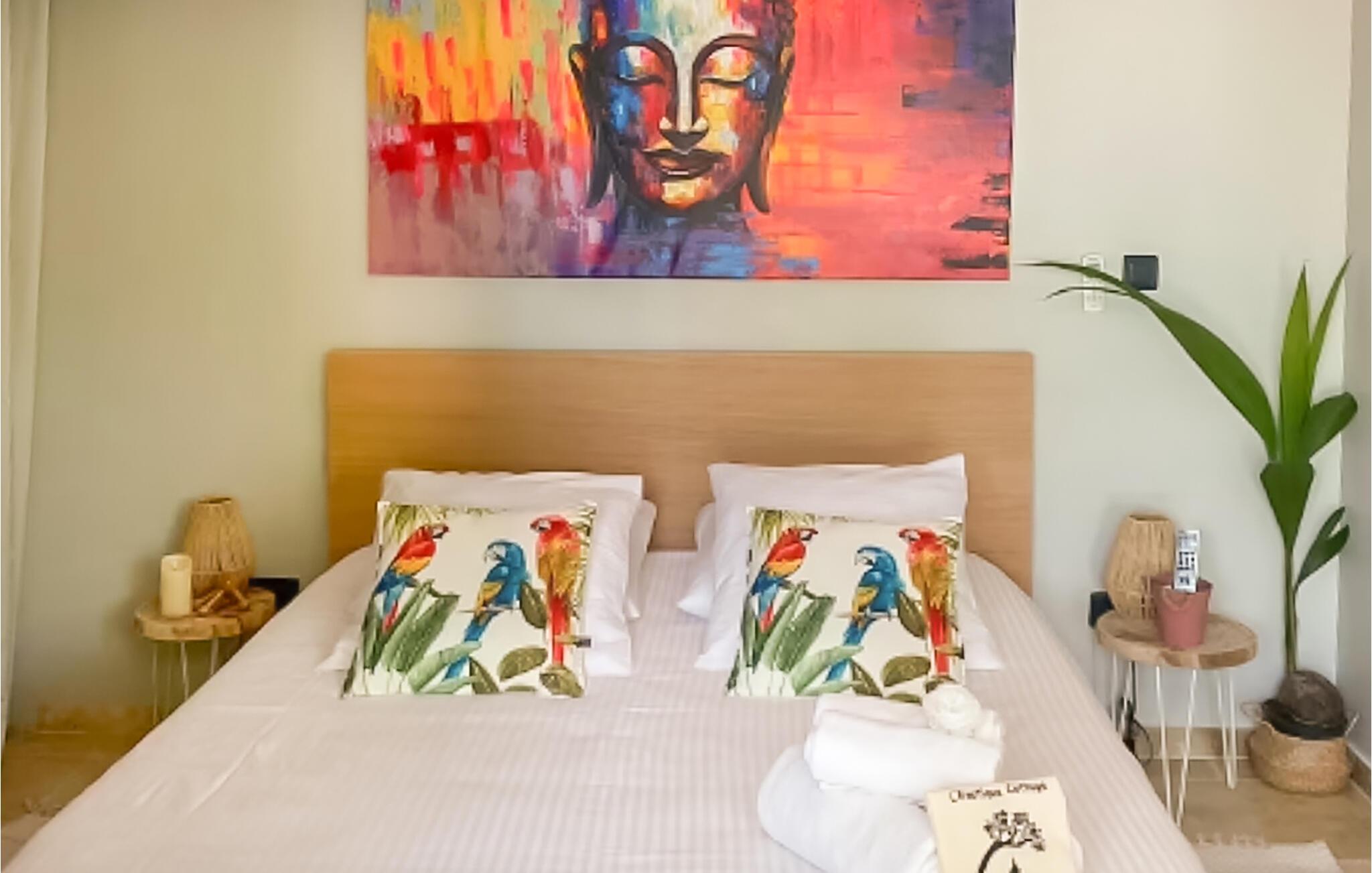 Dette idyllisk beliggende hus er perfekt til en afslappende ferie for to. Omgivet af palmer og middelhavsgrønt, finder I fred og ro væk fra hverdagens travlhed. Slap af med en kop kaffe, stream den seneste serie eller hav en hyggelig madlavningskonkurrence i køkkenet.