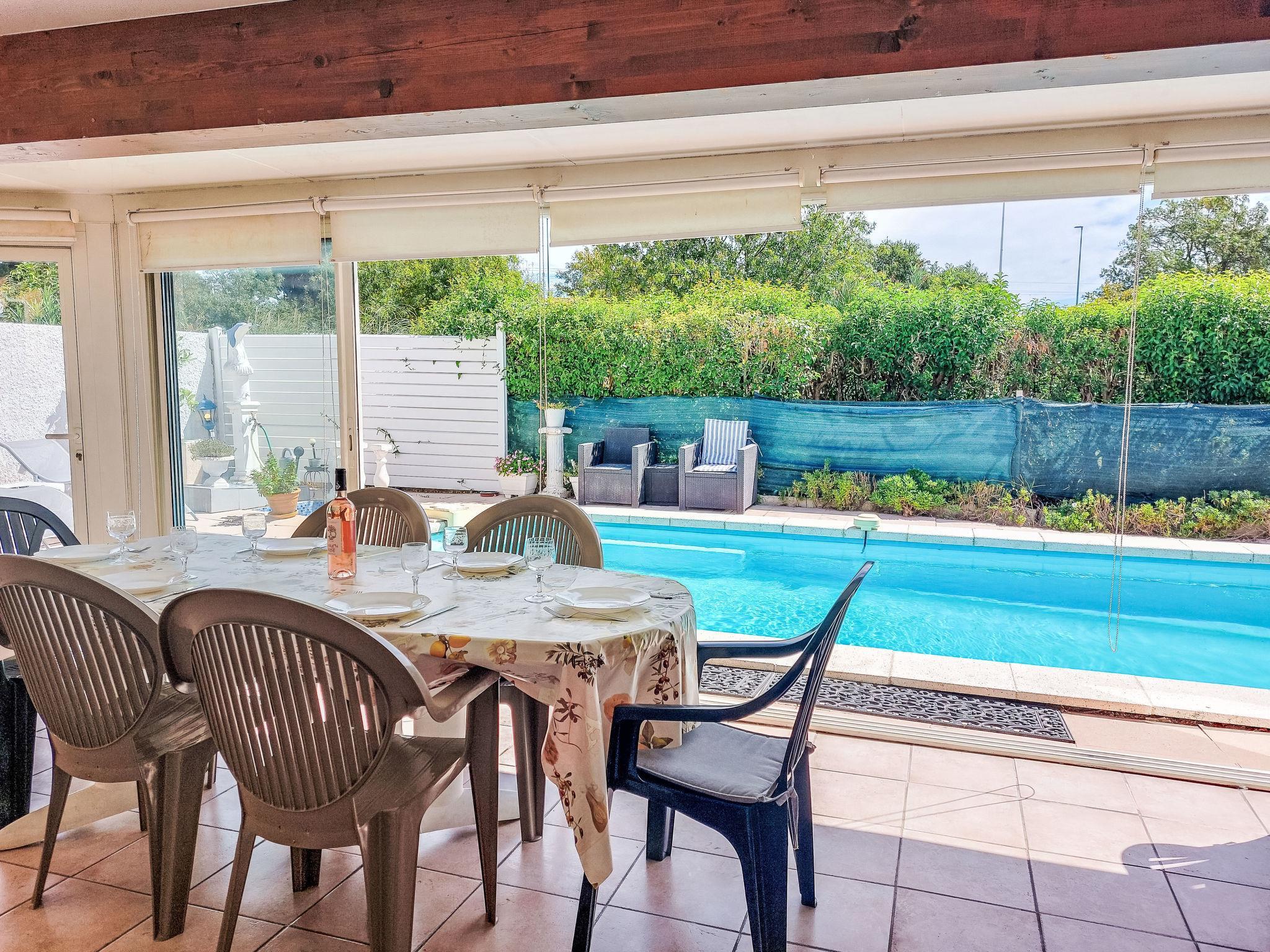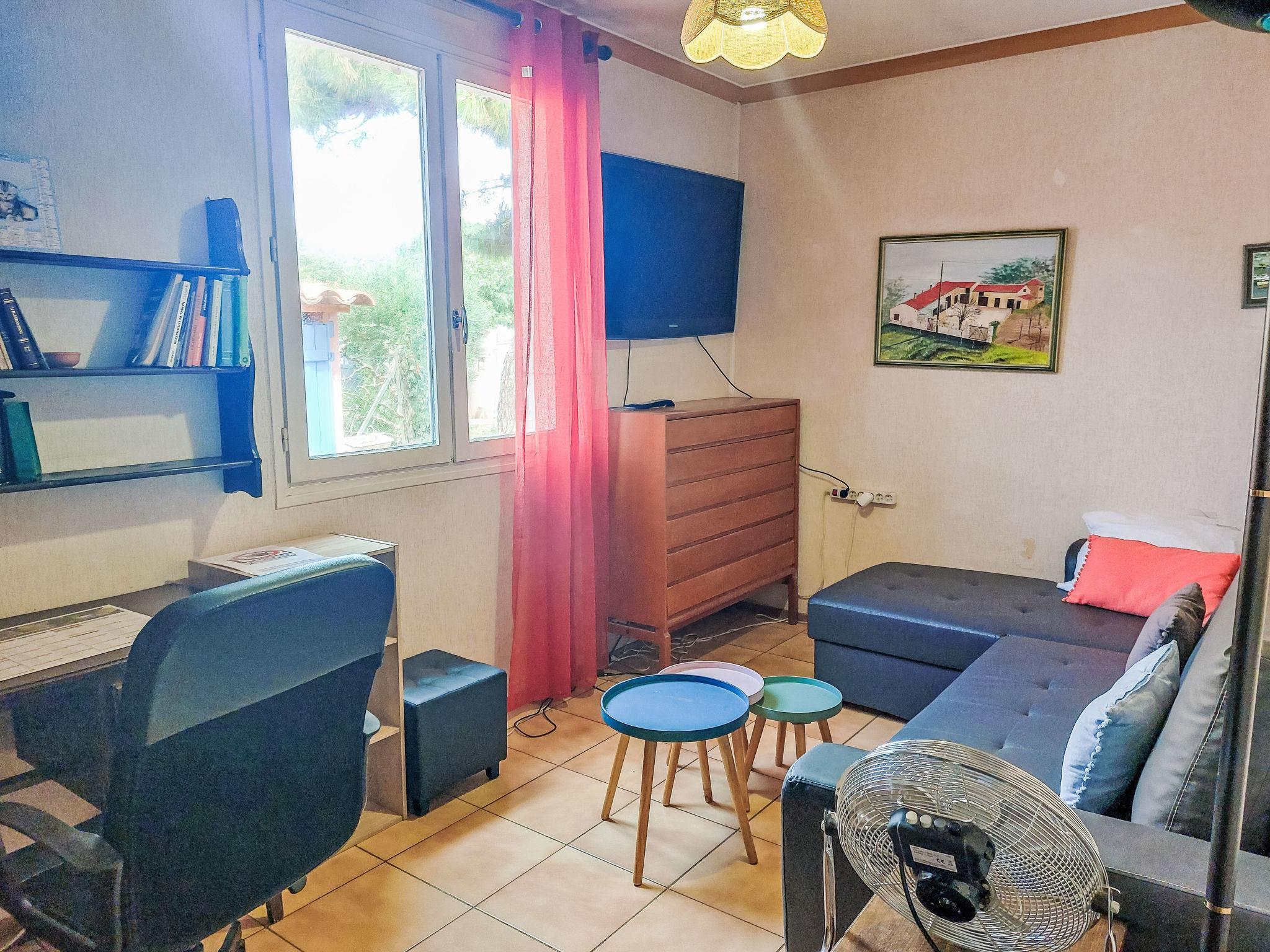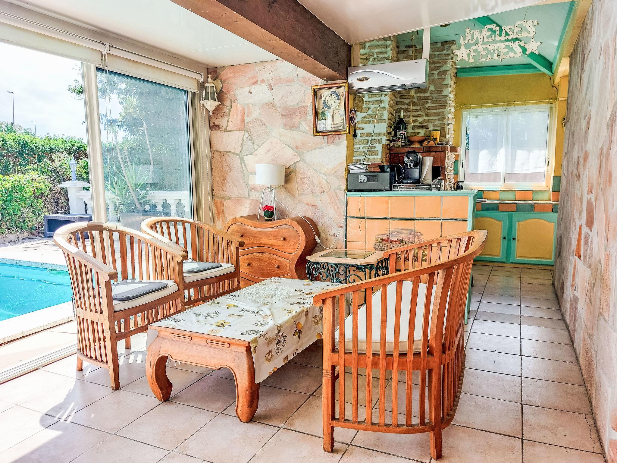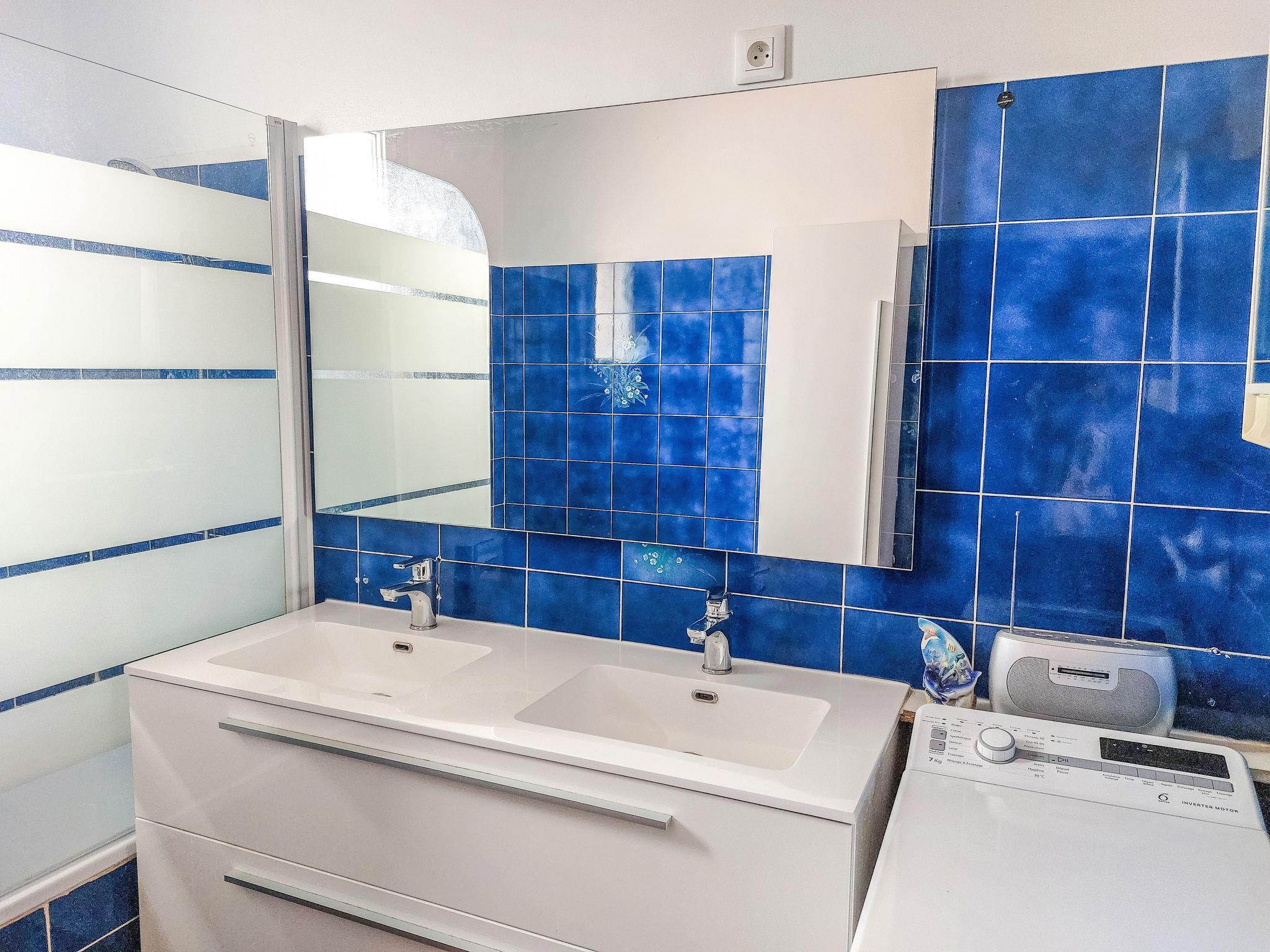 4-room house 90 m2. Practical and beautiful furnishings: entrance hall with air conditioning. Living/dining room with TV (flat screen), hi-fi system. Exit to the terrace. 2 rooms, each room with 1 french bed (140 cm, length 190 cm). 1 room with 1 double sofabed (160 cm, length 200 cm), TV (flat screen). Kitchen (dishwasher, 3 ceramic glass hob hotplates, toaster, kettle, microwave, freezer, electric coffee machine, pizza oven). Bathroom, sep. WC. Electric heating. Terrace 33 m2, roofed. Terrace furniture, barbecue, deck chairs (4). View of the swimming pool. Facilities: washing machine, baby cot. Internet (WiFi, free). Parking at the house. Please note: suitable for families. 1 small pet/ dog allowed. TV only FR. Smoke alarm.