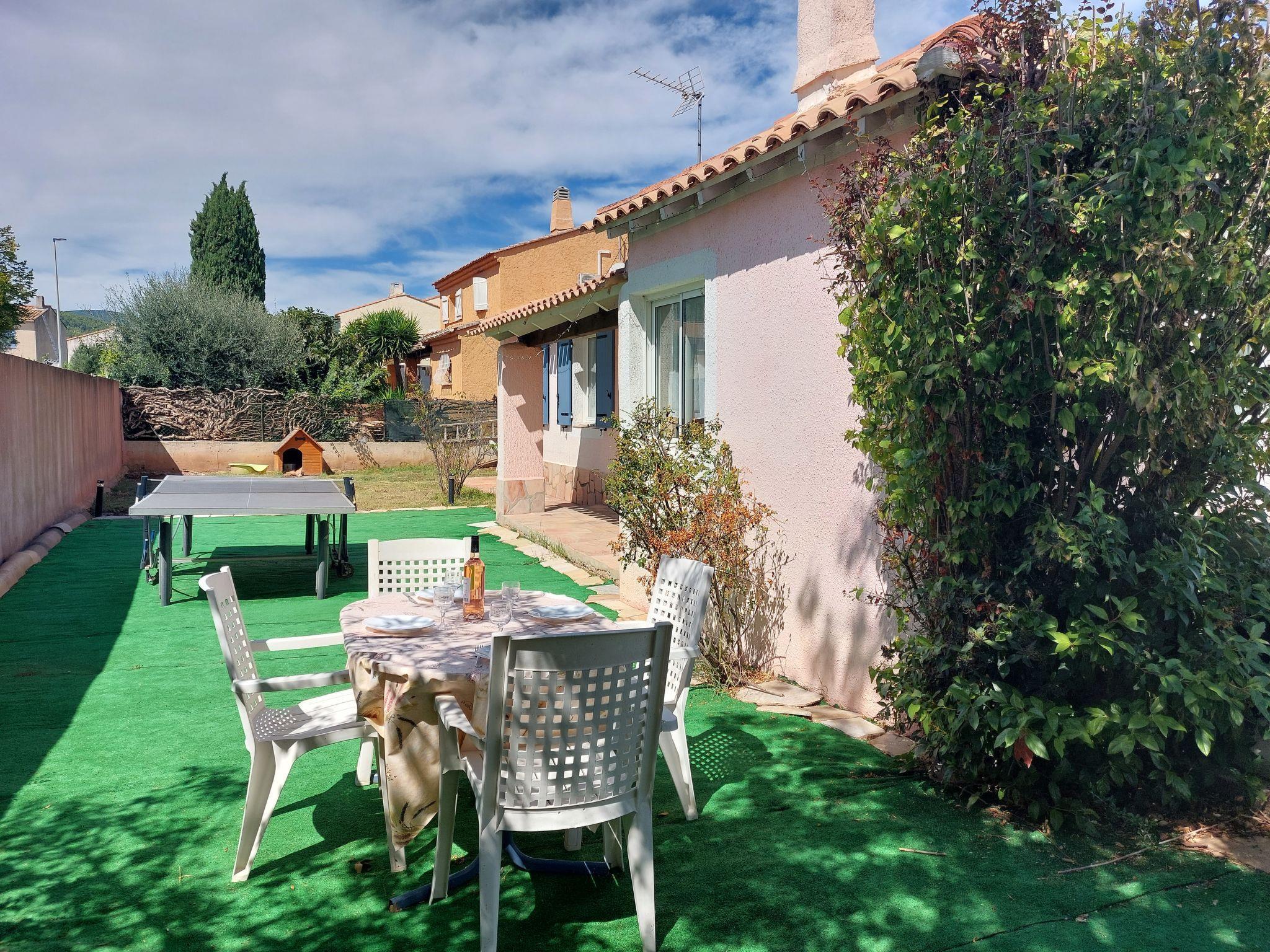 Solliès Pont: Cosy single-family house "Ste Claire", built in 1980, surrounded by trees. In the district of Solliès Pont, in the residential district, 15 km from the sea, in the countryside. Private: property 550 m2, swimming pool with privacy (7 x 4 m, depth 90 - 170 cm, seasonal availability: 15.May. and 30.Oct.) with alarm system. Motor access to the house. Parking at the house. Shop 800 m, grocery 500 m, supermarket 900 m, restaurant 800 m, bar 800 m, bus stop 600 m, railway station "petite gare desservant Toulon." 600 m, sandy beach "Plage les Bonnettes - Le Pradet" 15 km. Tennis 800 m, indoor tennis centre. Nearby attractions: Parc Marie Astoin 1.8 km, Les Berges Du Gapeau 1.8 km, Le parc du chateau de Solliès Pont 600 m, La Rade de Toulon 17 km, Télépherique du Mont Faron 17 km.