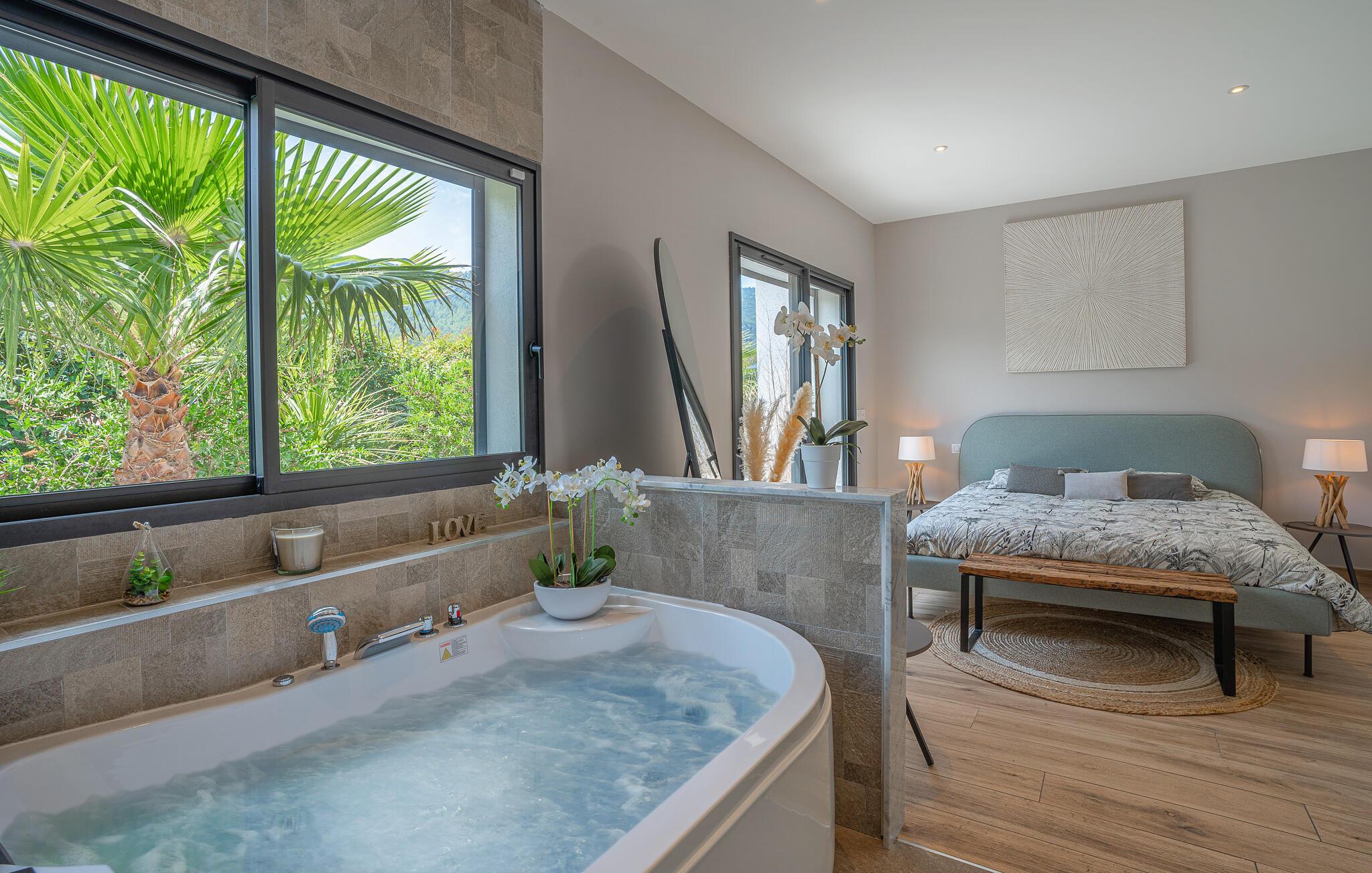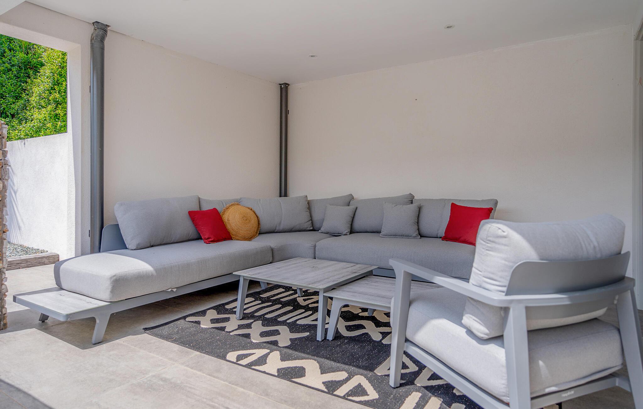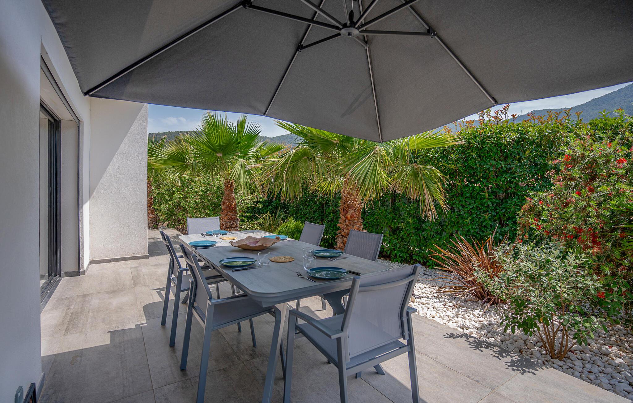 Dette rummelige og moderne feriehus i Solliès-Toucas byder jer og jeres familie velkommen til et komfortabelt tilflugtssted. Den åbne stue er noget særligt med sin smagfulde indretning og lyse atmosfære. Slap af i sofaen, tilbered lækre måltider sammen i det store køkken, eller nyd hyggelige timer med bordfodbold og afslapning i whirlpool-badekarret. Udendørs finder I flere terrasser og en pool, som giver mulighed for solrige og afslappende badedage.