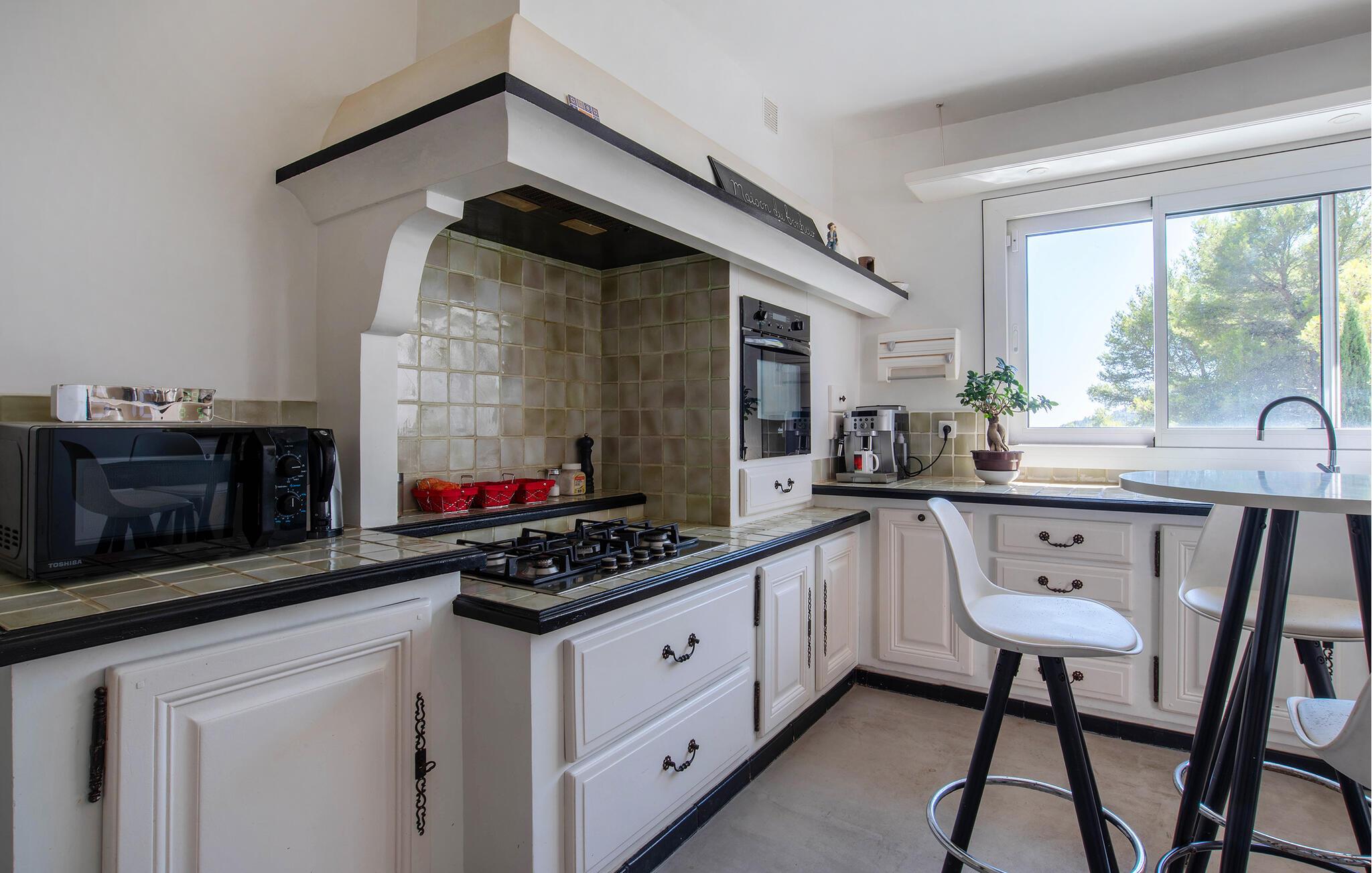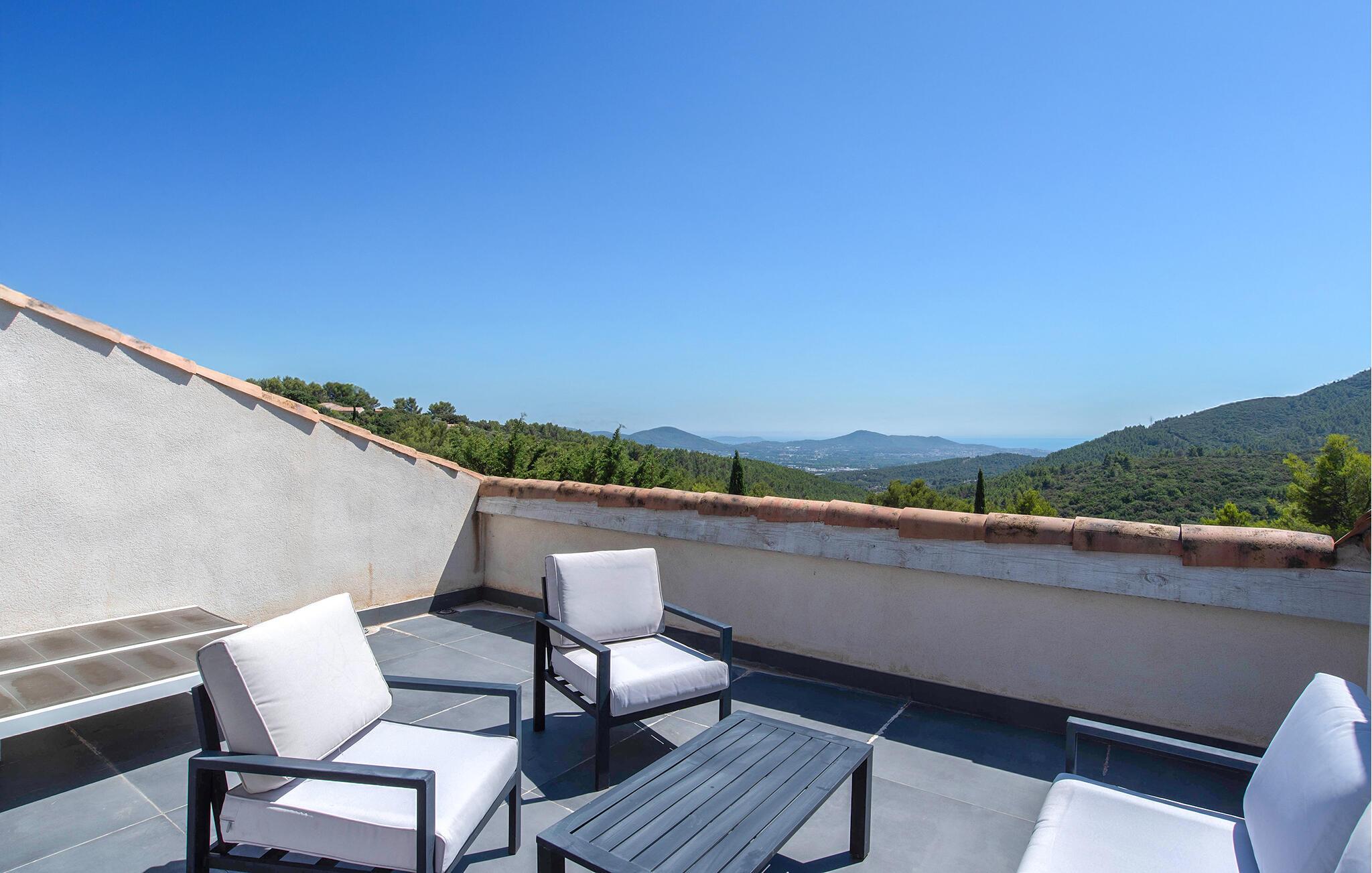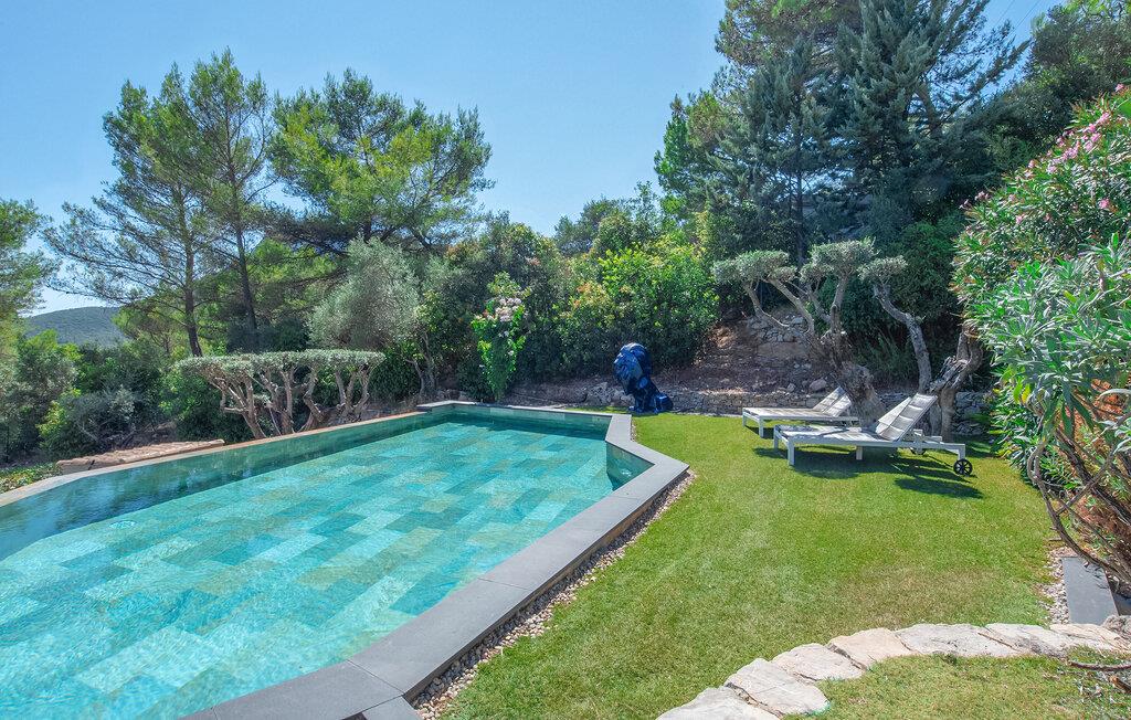 Forkæl jer selv med en afslappende ferie i dette feriehus med infinity-pool, spabad og panoramaudsigt i en idyllisk beliggenhed. Denne pragtfulde villa har en privilegeret beliggenhed på højderne i Solliès-Ville og forkæler jer med elegant og komfortabelt interiør og rigelig plads til familien. Glæd jer til hyggelig madlavning og fælles måltider, og snak om svundne tider i den lyse stue. Det charmerende udendørsområde har en spektakulær infinity-pool med udsigt over bakkerne og et spabad til afslappende øjeblikke under stjernerne. Brug den smukke terrasse til morgenmad om morgenen eller en stemningsfuld middag, og forkæl jer selv med en drink med en betagende udsigt, der strækker sig helt til Giens-halvøen. Solbad på de paradisiske strande på Giens-halvøen og udforsk de gyldne øer Porquerolles, Port-Cros og Le Levant på en bådtur. Gå en tur gennem det provencalske marked i Toulon og nyd havnens middelhavsstemning. Udforsk de maleriske landsbyer Le Lavandou og Bormes-les-Mimosas eller tag en vandretur gennem vinmarkerne. Bemærk venligst: Grillfester og fester er ikke tilladt i denne rolige, skovklædte beliggenhed.