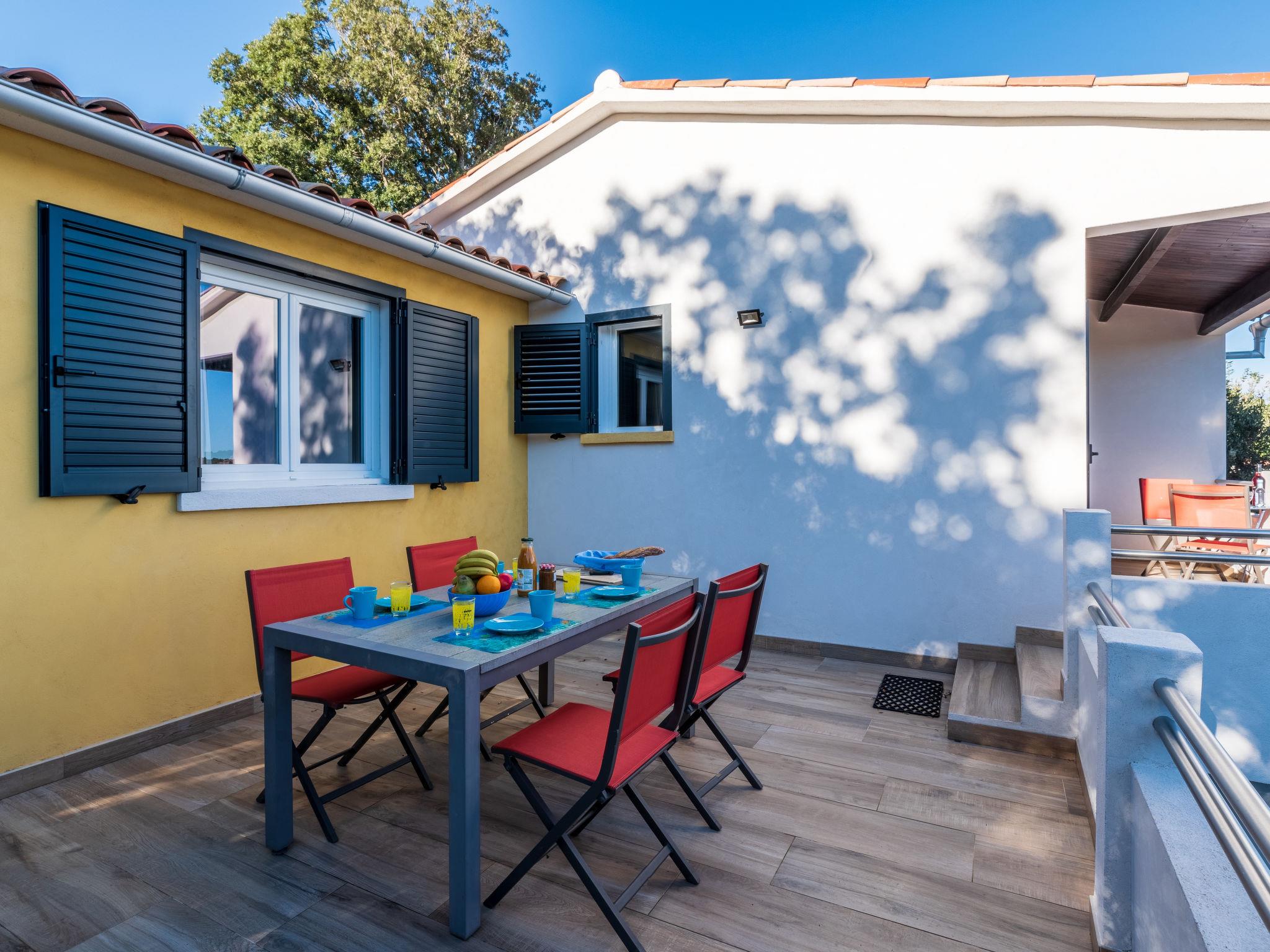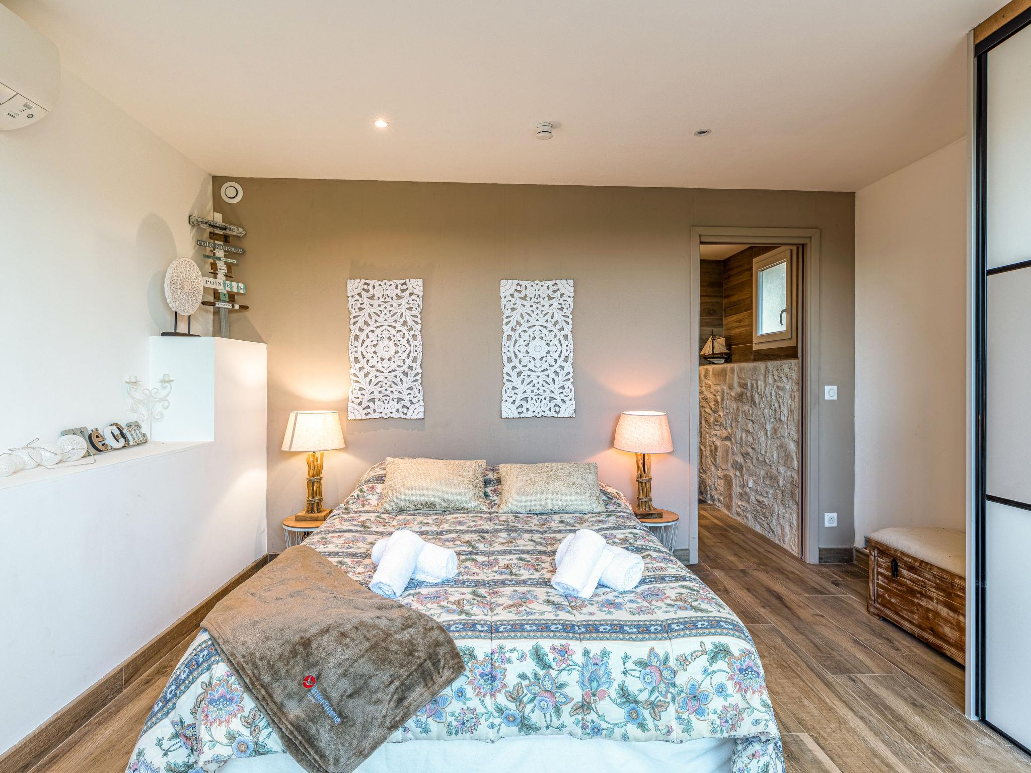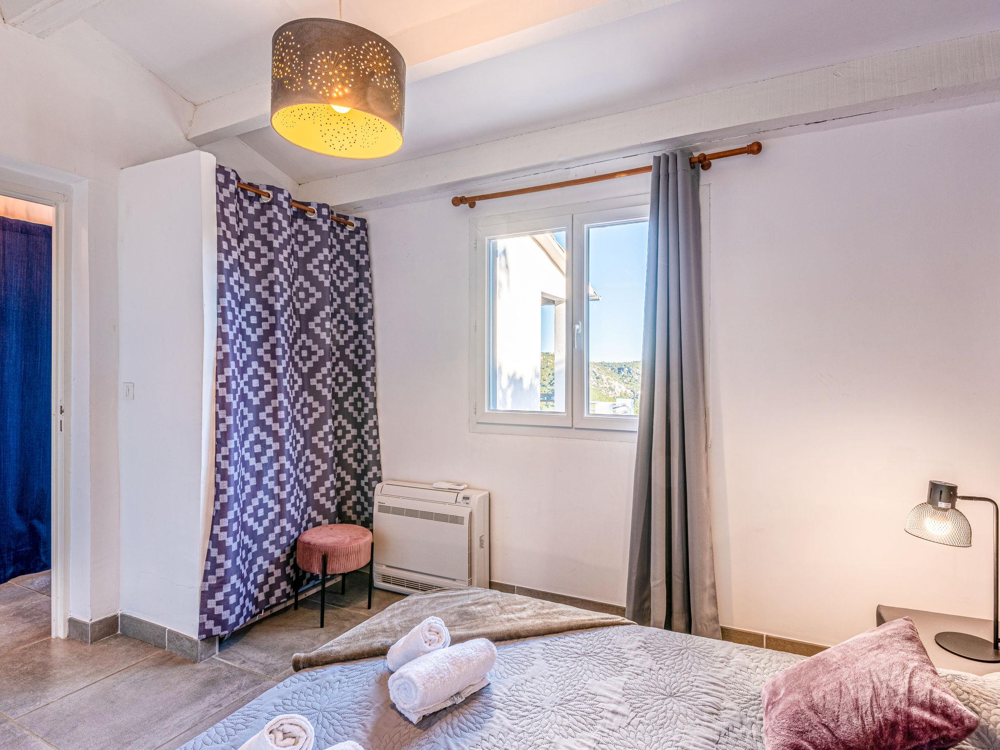 3-room house 82 m2 on 2 levels. Comfortable and beautiful furnishings: living/dining room with 1 sofabed (120 cm, length 190 cm), TV (flat screen). Exit to the terrace. 1 room with 1 french bed (140 cm, length 190 cm). Open kitchen (oven, dishwasher, 3 induction hot plates, toaster, kettle, freezer, electric coffee machine). Exit to the terrace. Shower/WC. Electric heating, air-conditioning. On the lower ground floor: (exterior staircase), 1 room with 1 french bed (140 cm, length 190 cm), shower/WC. Exit to the terrace. Air-conditioning. Beautiful view of the sea. Facilities: washing machine. Internet (WiFi, extra). Parking (2 cars). Please note: non-smoking house. Smoke alarm. No internal connecting door between the floors. 2A24700221028