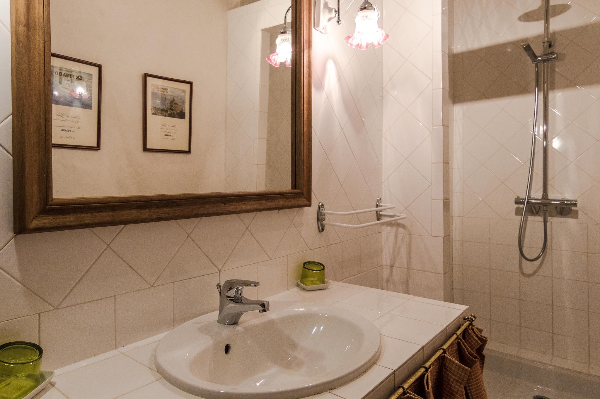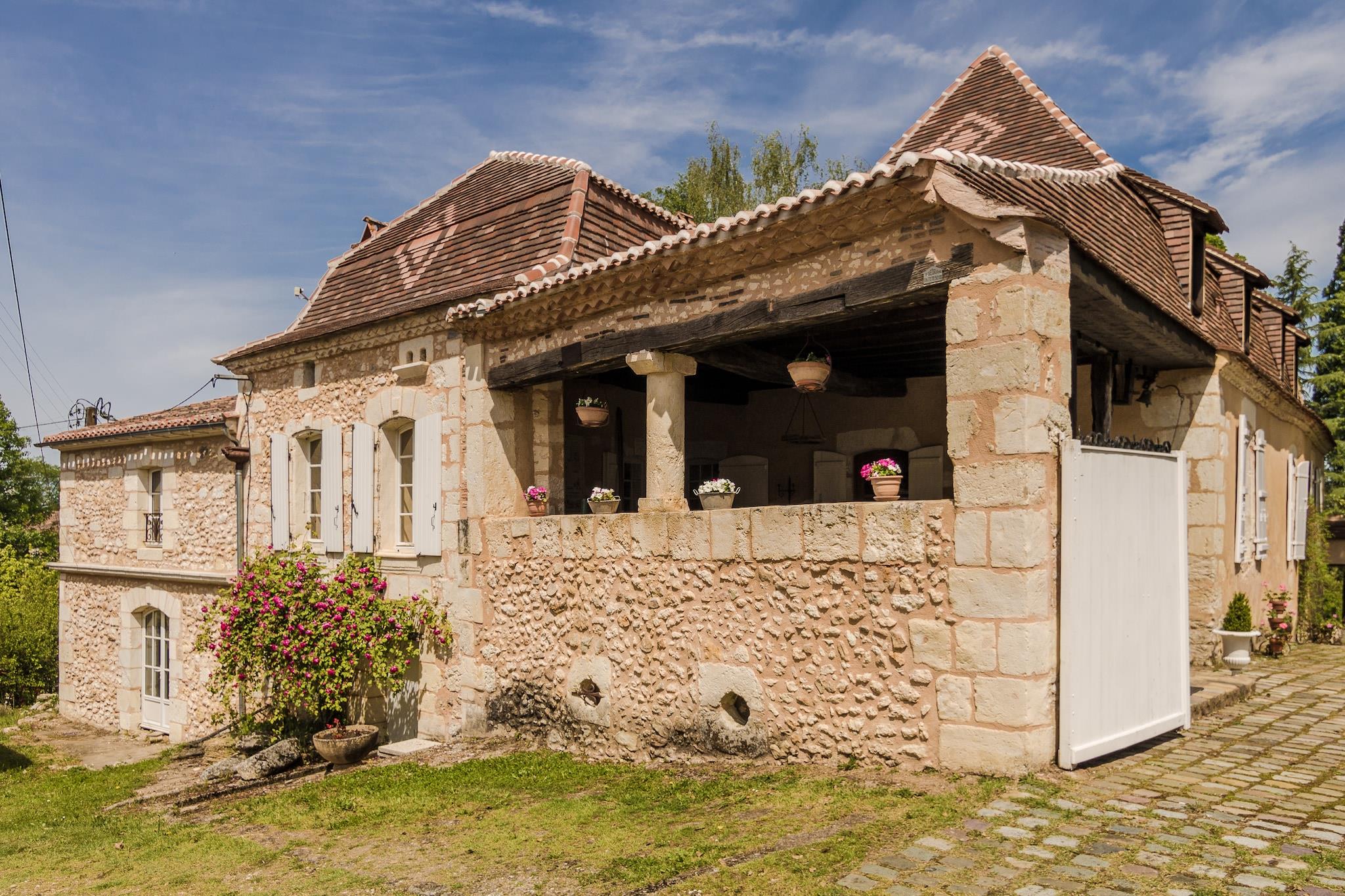 Dette imponerende, totalrenoverede landsted ligger på en velholdt, indhegnet ejendom med stor græsplæne, træer, der giver tilstrækkelig skygge og flere terrasser. Ejendommen er virkelig udstyret med enhver luksus. Du har en indhegnet privat swimmingpool (12 x 6 m), en tennisbane, et basketballnet, et bordtennisbord, forskellige gynger, en badmintonbane og cykler til din rådighed. Der er masser af havemøbler og en grill. Der er masser af plads til børnene at lege, så de kommer bestemt ikke til at kede sig i deres ferie. Landstedet fra det 17. århundrede ligger kun 2 km fra den maleriske landsby Sourzac og 5 km fra den lille by Mussidan. Byen Bergerac ligger 25 km væk, også kaldet "Dordognes spejl" på grund af flodens charme. Dordognes hovedstad, Périgueux, ligger 35 km nord for landstedet. Lidt længere væk, i Périgord Noir, finder du byen Les Eyzies, hvor du finder nogle af de mest berømte forhistoriske grotter i Europa. Du kan også nyde at gå, cykle eller sejle i kano i dette område. Bemærk: Poolopvarmning er kun mulig i juli og august, afhængigt af vejrforholdene.