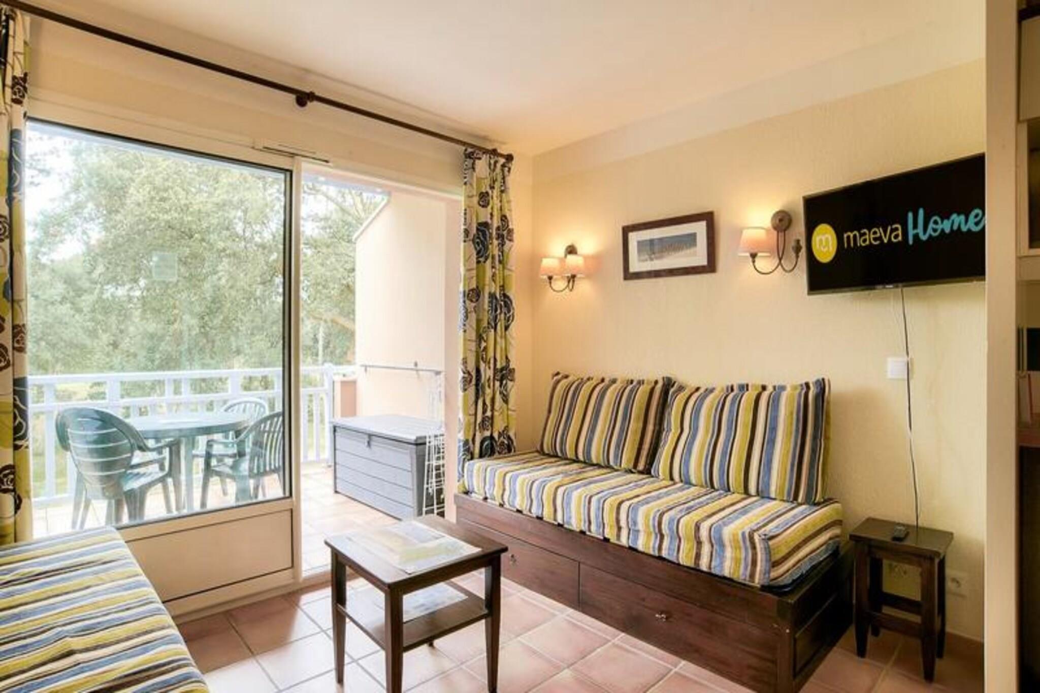 Denne lejlighed med 1 soveværelse tilbyder et afslappende oase i Soustons, perfekt til familier eller grupper på op til fem. Beliggende på kanten af ??en golfbane og kun en kilometer fra en havsø, tilbyder ejendommen et roligt miljø. Beskrivelsen nævner ikke kæledyrspolitikker, så det er bedst at tjekke direkte. Boligen er beliggende i hjertet af en fyrreskov og tilbyder nem adgang til udendørs aktiviteter som golf, tennis og ridning (alt sammen mod et ekstra gebyr). Gæsterne kan også nyde den gratis, opvarmede udendørs swimmingpool med soppebassin, solarium og terrasse (åben fra midten af ??juni til midten af ??oktober). Denne lejlighed i stueetagen har en stue med en sovesofa med plads til to, en udtræksseng til én og en balkon med sydvendt udsigt over golfbanen. Køkkenet er halvåbent til stuen. Soveværelset har en dobbeltseng, og badeværelset har badekar, separat toilet og faciliteter såsom hårtørrer og håndklædetørrer. Til lejligheden hører også en gratis parkeringsplads. Yderligere faciliteter såsom wifi, sengelinned, håndklæder og slutrengøring er alle tilgængelige mod et gebyr.