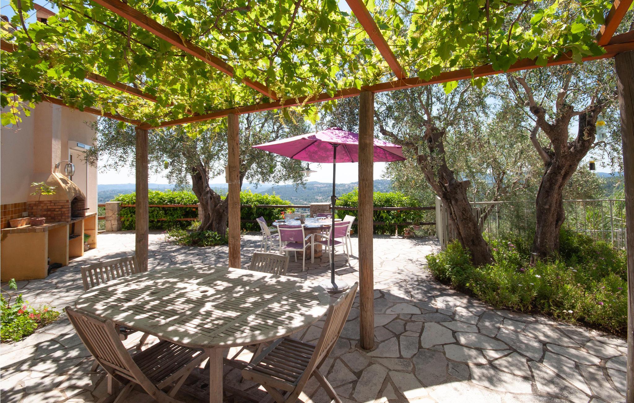 Villaen er et charmerende familiehus, rummeligt og komfortabelt. Stuen og soveværelset åbner ud mod den solrige terrasse, som er udstyret med en grill. Slap af i den meget store, skovklædte have omkring poolen.