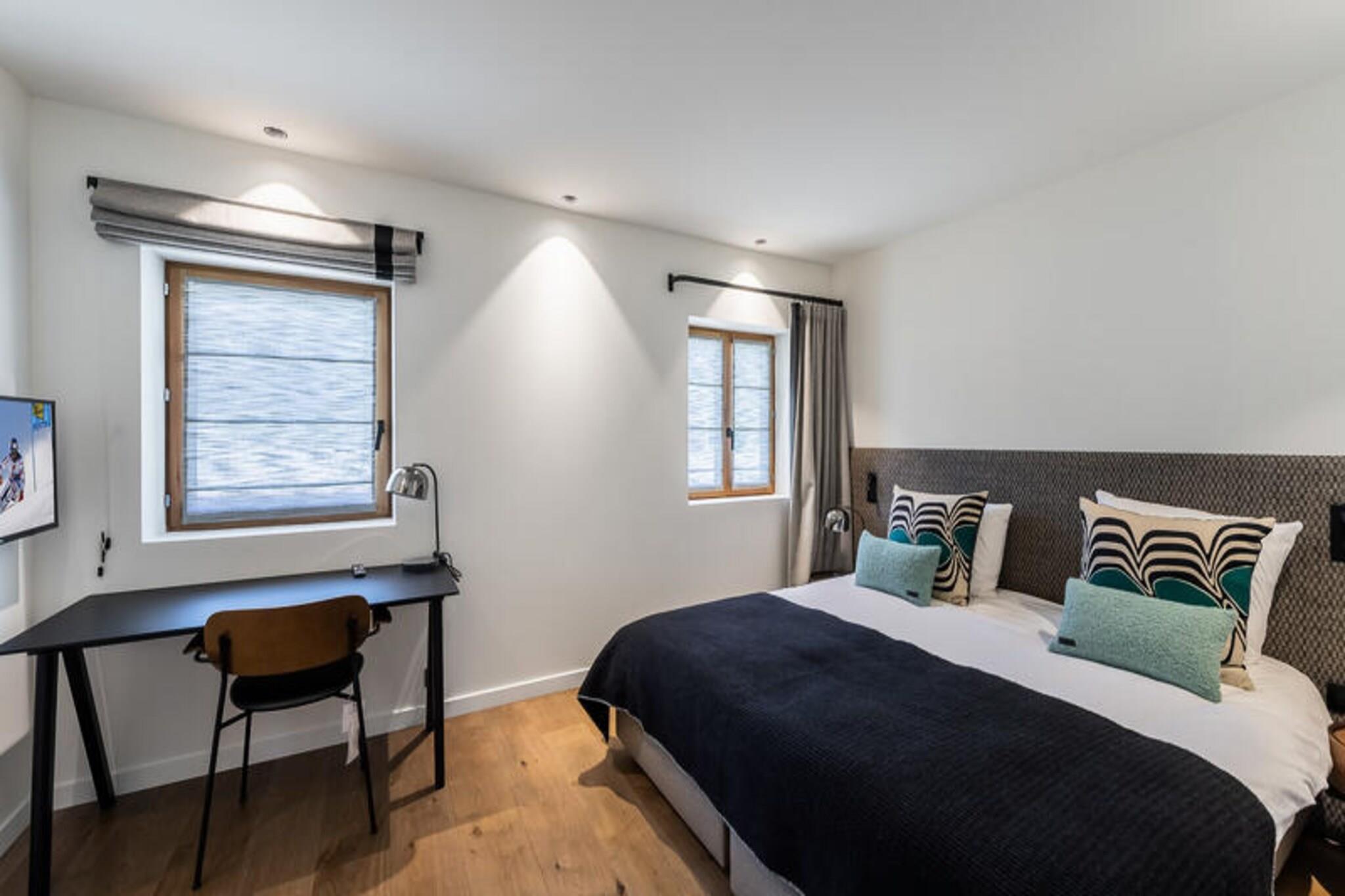 Denne lejlighed på 116 m² tilbyder et behageligt ophold for op til 6 gæster med 3 soveværelser, der hver har en dobbeltseng og et en-suite badeværelse med bruser og toilet. Ejendommen er fri for kæledyr, hvilket sikrer et roligt og fredeligt miljø. Opholds- og spiseområderne er indrettet med en hyggelig pejs, og to terrasser byder på en fantastisk udsigt over de omkringliggende tinder. Lejligheden vender mod sydøst og fylder rummet med naturligt lys, hvilket gør den til et ideelt tilflugtssted for familier eller grupper. Beliggende i det fredelige Nogentil-distrikt, tilbyder denne lejlighed en fredfyldt flugt, mens den er kun 2,5 km fra centrum af Courchevel 1850. Skientusiaster vil sætte pris på muligheden for at stå på ski tilbage fra Pralong-bakken, som er blot 400 meter væk. Landsbyens centrum, med caféer, restauranter og butikker, er kun en kort køretur væk, hvilket giver en perfekt blanding af ro og aktivitet. Indvendigt har lejligheden et fuldt udstyret køkken til selvforplejning sammen med et skiskab til opbevaring af dit udstyr. Tre en-suite badeværelser sikrer maksimal komfort, mens separate toiletter giver ekstra bekvemmelighed. Yderligere faciliteter inkluderer Wi-Fi, udendørs parkering og regelmæssig rengøring to gange om ugen, sammen med brænde til pejsen, hvilket sikrer et varmt, behageligt ophold.