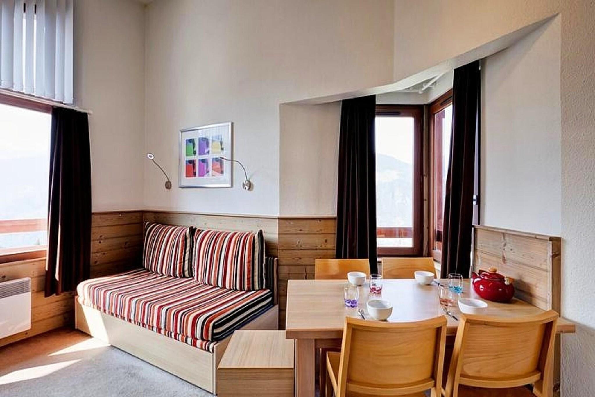 Denne charmerende lejlighed er beliggende i hjertet af La Tania, perfekt til en familie eller en lille gruppe, der søger et behageligt ophold. Indkvarteringen har et soveværelse med dobbeltseng, et opholdsområde med en sovesofa, der kan sove to, og et privat badeværelse med toilet. Ejendommen er ikke kæledyrsvenlig og tilbyder væsentlige faciliteter såsom linned (inkluderet) og mulighed for leje af håndklæder mod et ekstra gebyr. Enheden ligger på anden sal og tilbyder en balkon med en fantastisk udsigt over bjergene, perfekt til at nyde de fredelige omgivelser. En overdækket parkeringsplads er tilgængelig 30 meter fra boligen, hvilket sikrer bekvemmelighed for gæster med et køretøj. Denne lejlighed ligger ved foden af ??pisterne og tilbyder ski-in og ski-out-adgang til La Tanias pister. Landsbyens centrum med restauranter, caféer og butikker ligger kun få skridt væk. Gæsterne kan nyde spisemuligheder, udforske Courchevel La Tania-skoven eller prøve aktiviteter som paragliding, canyoning og vandreture i Vanoise-massivet. Lejligheden har et åbent køkken med komfur, ovn og køleskab samt et komfortabelt opholdsområde og spiseplads. Der er trådløs internetadgang mod et tillægsgebyr, og daglig rengøring eller håndklædeservice kan bestilles i receptionen. Ideelt beliggende nær skiløjperne og landsbyens faciliteter tilbyder denne lejlighed et afslappende ophold i La Tania.