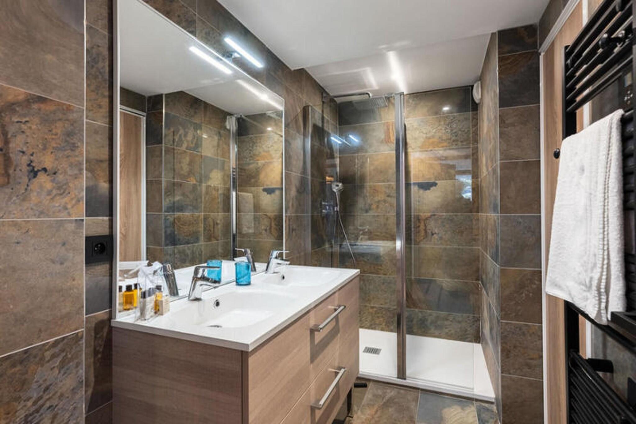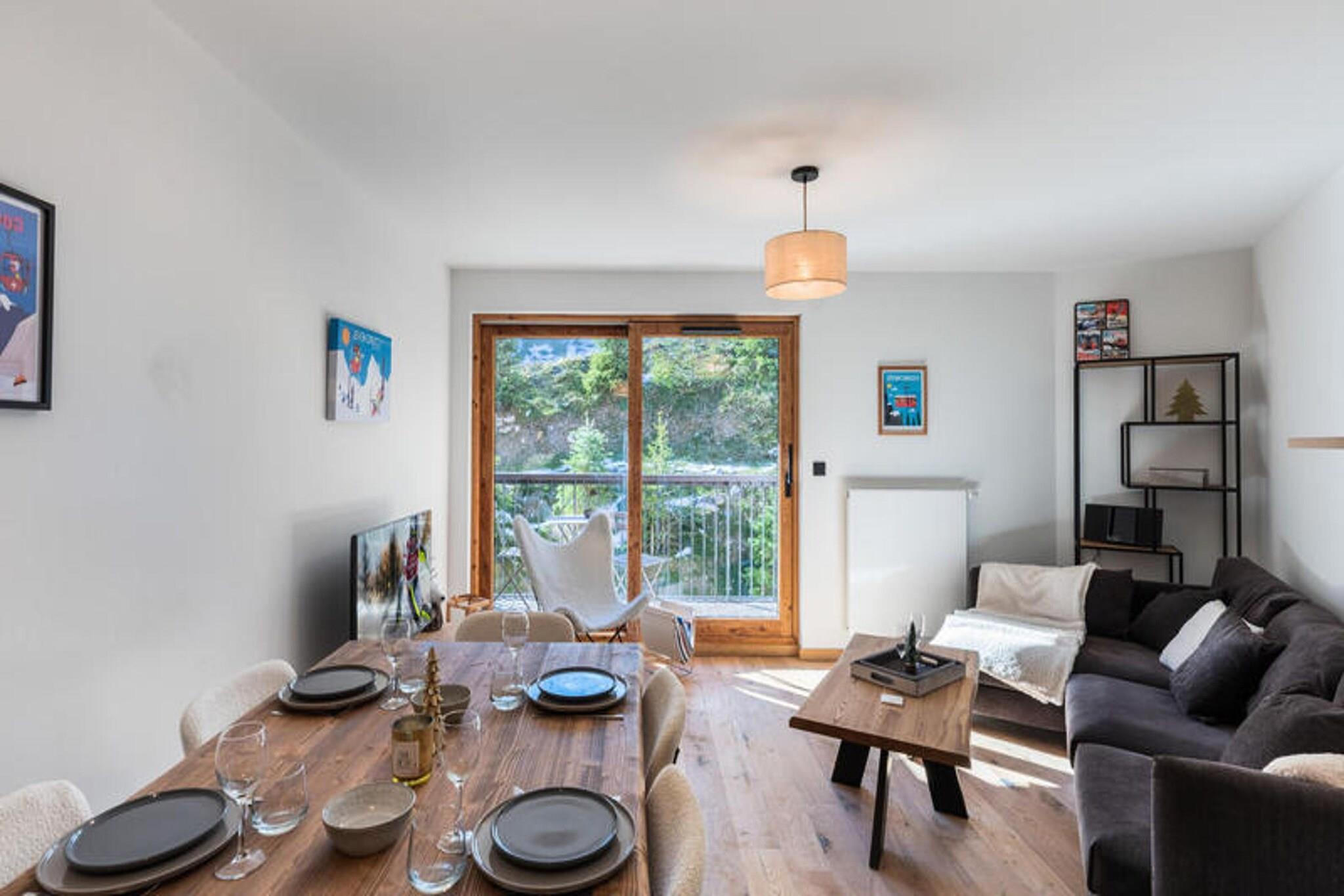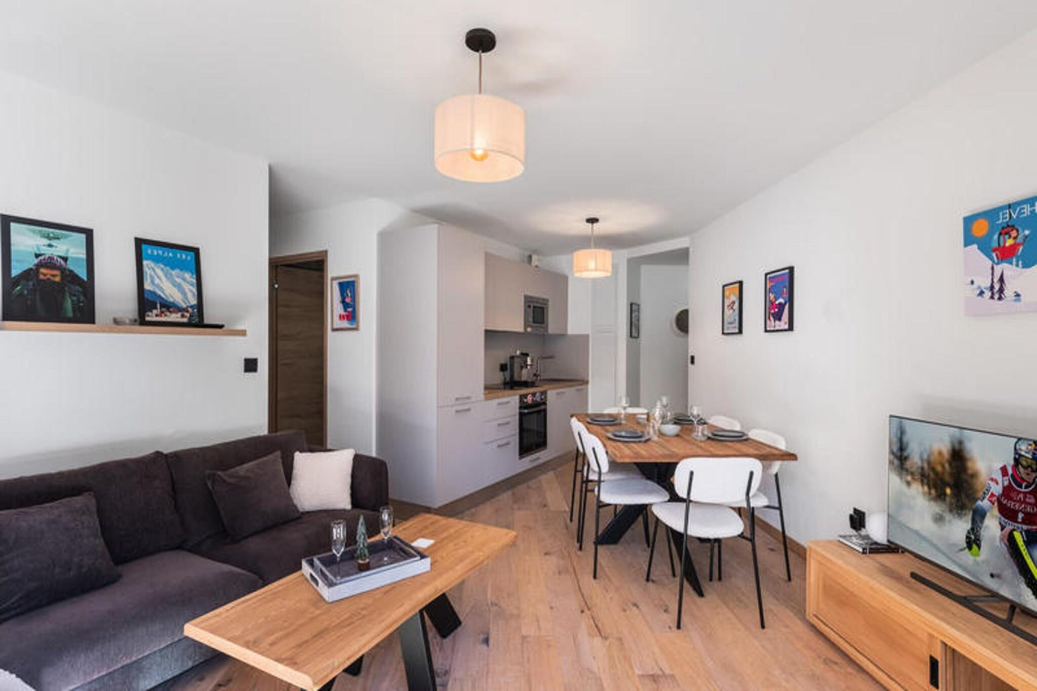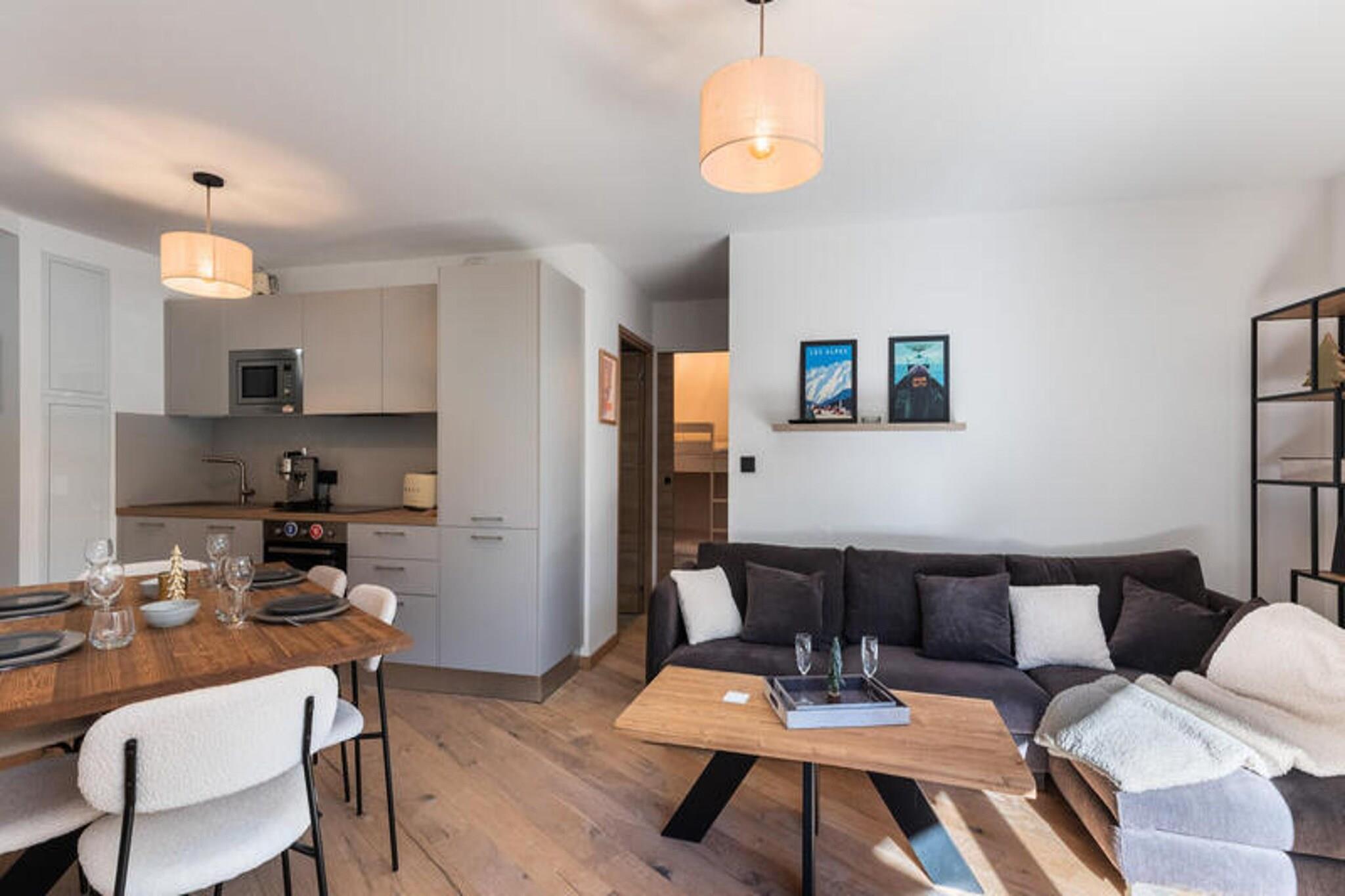 Denne moderne 2-værelses hyttelejlighed tilbyder et behageligt ophold for op til 2 voksne og 2 børn. Indkvarteringen omfatter en rummelig stue med sofa, tv og spisebord. Lejligheden er kæledyrsfri og ikke-ryger, hvilket giver et fredeligt miljø for dit ophold. Soveværelset har en dobbeltseng (160x200) med et ekstra sæt køjesenge (80x185) i kabineområdet. Wi-Fi er tilgængeligt, men bemærk venligst, at mobilnetværksmodtagelsen er begrænset i boligen. For din bekvemmelighed er sengetøj og håndklæder leveret, med sengene redt ved din ankomst. Regelmæssig rengøring er inkluderet to gange om ugen. Beliggende kun 340 meter fra pisterne, er lejligheden perfekt placeret for skientusiaster. Det livlige Moriond-område i Courchevel, med dets butikker, caféer og faciliteter, ligger kun få minutter væk, og giver dig nem adgang til lokale markeder, restauranter og andre attraktioner. Uanset om du søger afterski-afslapning eller udforske de nærliggende stier, er alt inden for rækkevidde. Lejligheden er veludstyret med et fuldt fungerende køkken med moderne apparater som ovn, mikroovn, opvaskemaskine, induktionskomfur og kaffemaskine. Yderligere faciliteter omfatter et rummeligt brusebadeværelse med dobbelt håndvask, en håndklædetørrer, en vaskemaskine-tørretumbler for din bekvemmelighed og et uafhængigt toilet. Ejendommen omfatter også et skiskab i stueetagen og en parkeringsplads for ekstra bekvemmelighed.