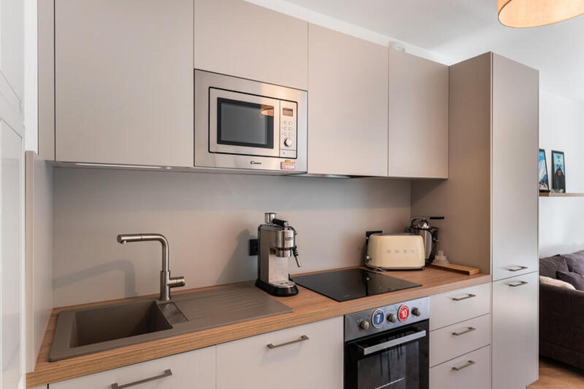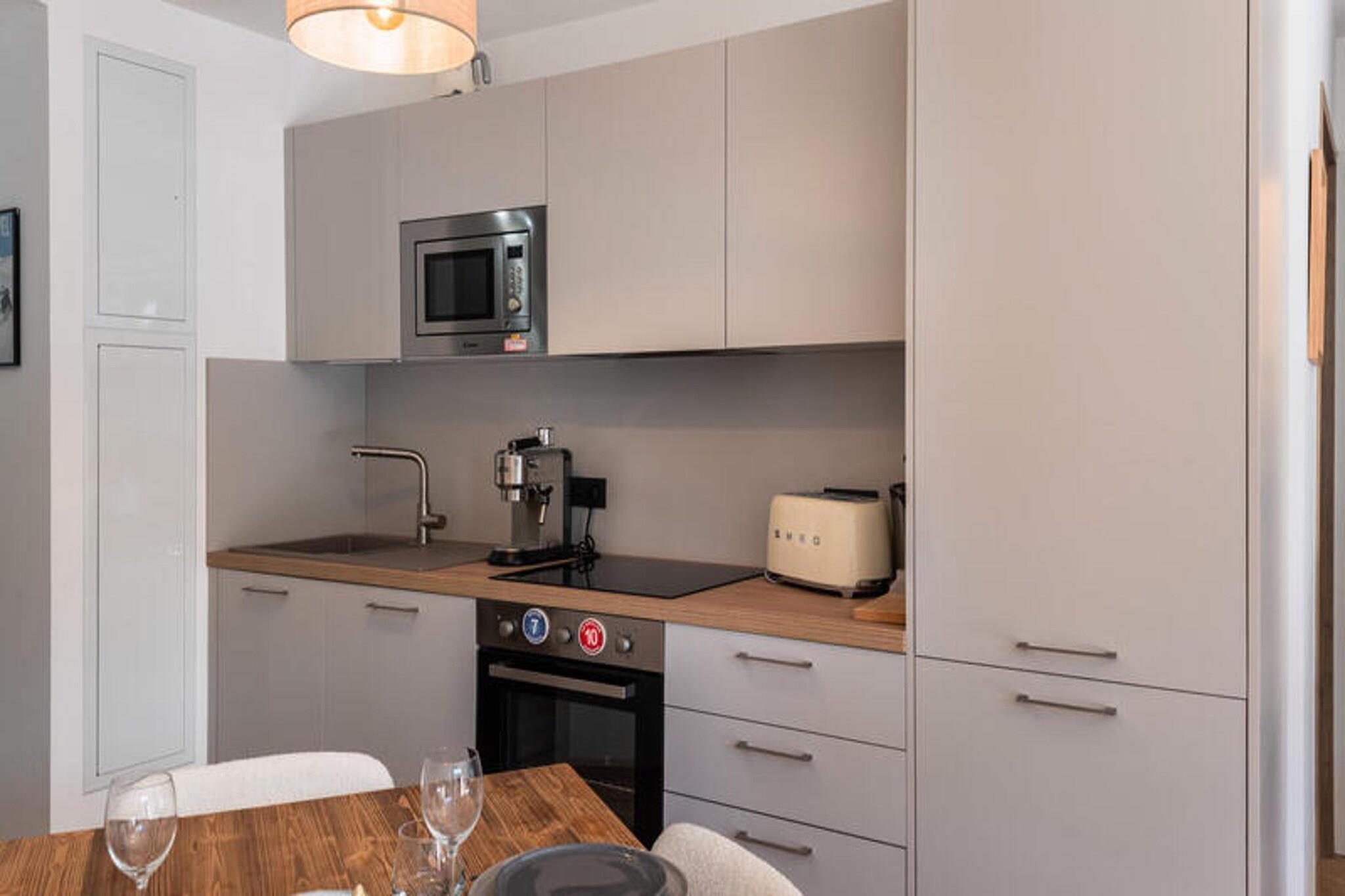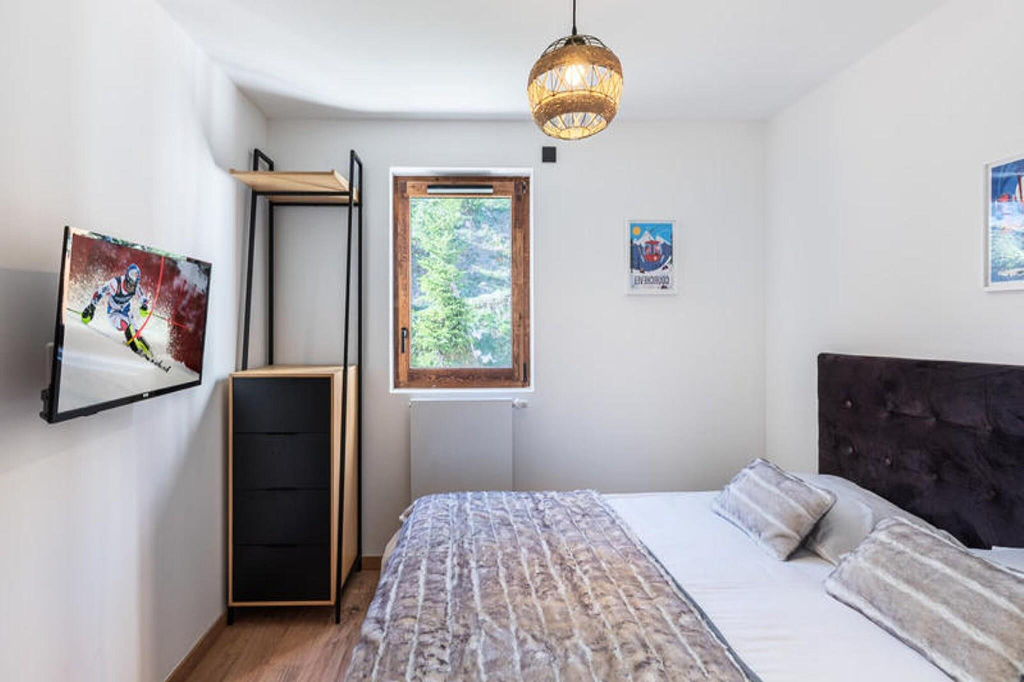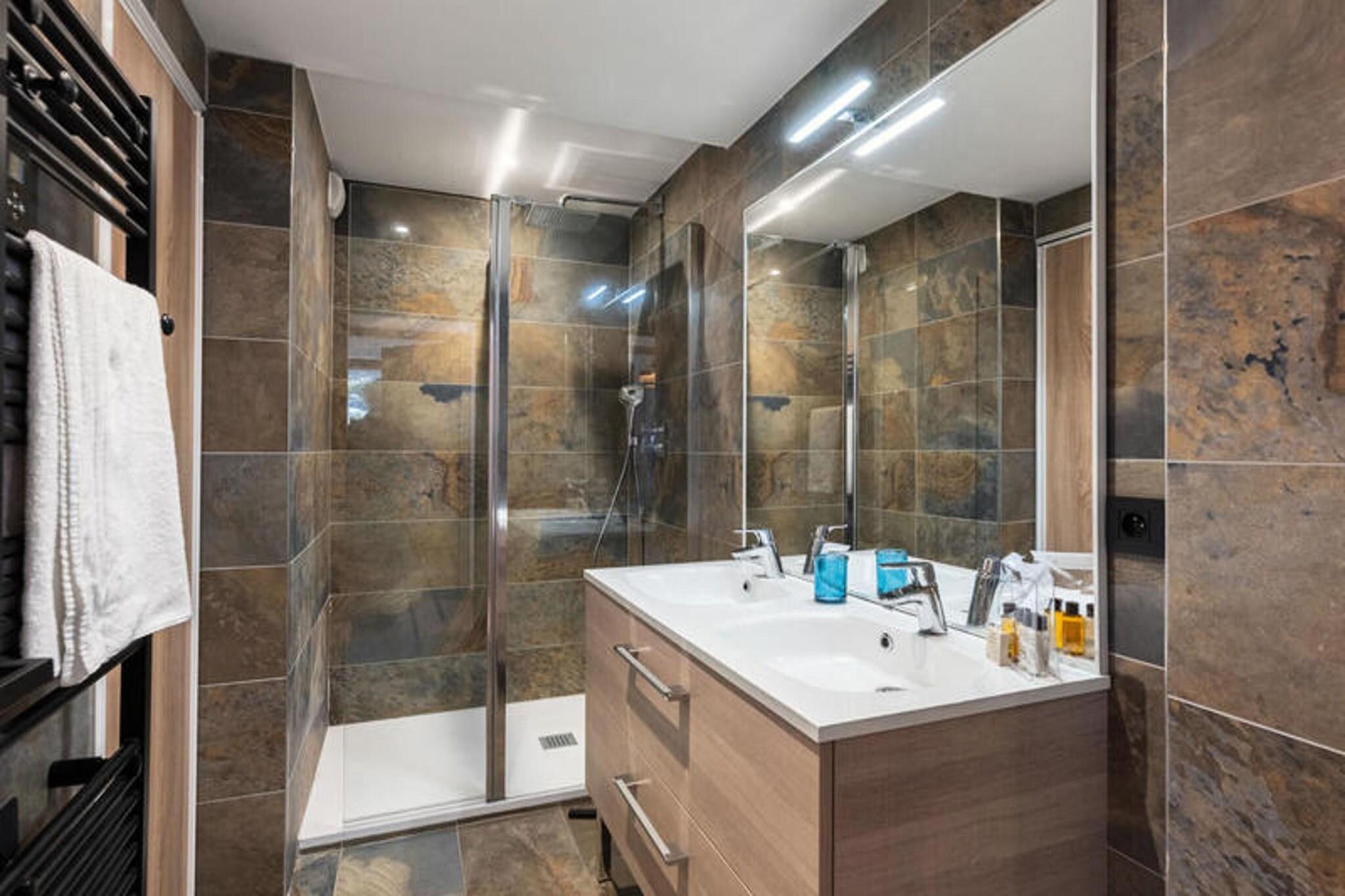 Denne moderne 2-værelses hyttelejlighed tilbyder et behageligt ophold for op til 2 voksne og 2 børn. Indkvarteringen omfatter en rummelig stue med sofa, tv og spisebord. Lejligheden er kæledyrsfri og ikke-ryger, hvilket giver et fredeligt miljø for dit ophold. Soveværelset har en dobbeltseng (160x200) med et ekstra sæt køjesenge (80x185) i kabineområdet. Wi-Fi er tilgængeligt, men bemærk venligst, at mobilnetværksmodtagelsen er begrænset i boligen. For din bekvemmelighed er sengetøj og håndklæder leveret, med sengene redt ved din ankomst. Regelmæssig rengøring er inkluderet to gange om ugen. Beliggende kun 340 meter fra pisterne, er lejligheden perfekt placeret for skientusiaster. Det livlige Moriond-område i Courchevel, med dets butikker, caféer og faciliteter, ligger kun få minutter væk, og giver dig nem adgang til lokale markeder, restauranter og andre attraktioner. Uanset om du søger afterski-afslapning eller udforske de nærliggende stier, er alt inden for rækkevidde. Lejligheden er veludstyret med et fuldt fungerende køkken med moderne apparater som ovn, mikroovn, opvaskemaskine, induktionskomfur og kaffemaskine. Yderligere faciliteter omfatter et rummeligt brusebadeværelse med dobbelt håndvask, en håndklædetørrer, en vaskemaskine-tørretumbler for din bekvemmelighed og et uafhængigt toilet. Ejendommen omfatter også et skiskab i stueetagen og en parkeringsplads for ekstra bekvemmelighed.