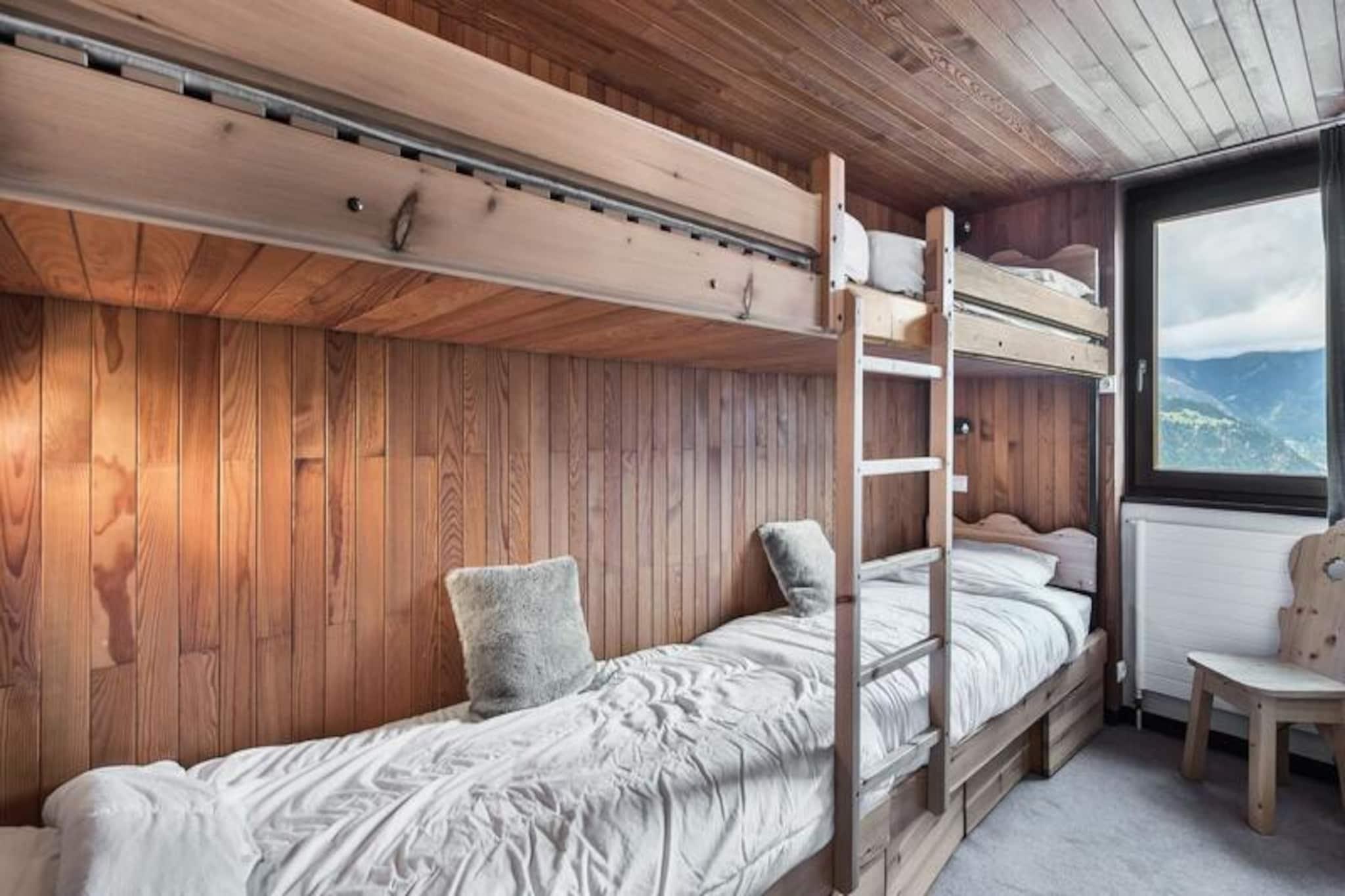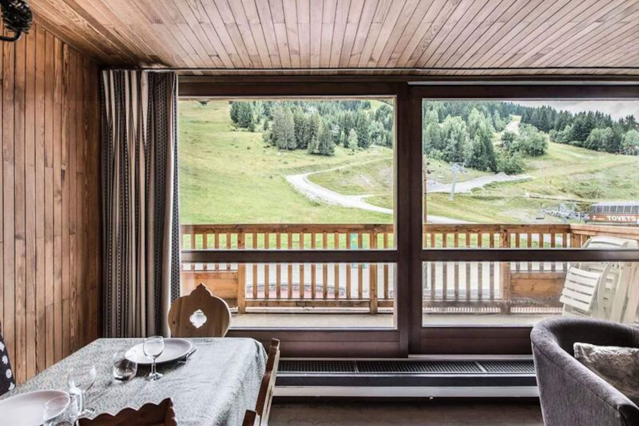 Højt over de fortryllende skråninger i Courchevel Village inviterer denne elegante alpelejlighed dig til at opleve magien i de franske alper i enhver sæson. Badet i naturligt lys fra et stort karnapvindue tilbyder opholdsstuen et hyggeligt tilflugtssted, hvor du kan slappe af efter en dag med eventyr. Fra den store sydvendte terrasse kan du nyde den betagende udsigt over skiområdet og de majestætiske tinder, en perfekt kulisse for din alpine flugt. Uanset om du er her for vintersport eller sommervandreture, lover denne ejendom et mindeværdigt ophold. \n\nLejligheden er designet til komfort og bekvemmelighed og strækker sig over 60 m² og har plads til op til seks gæster. Indretningen omfatter to soveværelser - et med to enkeltsenge, der kan sættes sammen, og et andet med køjesenge til fire - hvilket gør den ideel til familier eller vennegrupper. Det åbne køkken er fuldt udstyret med moderne apparater, herunder ovn, mikrobølgeovn, opvaskemaskine og køleskab, hvilket sikrer, at du har alt, hvad du behøver for at tilberede måltider. Yderligere faciliteter såsom fladskærms-tv, Blu-ray-afspiller, vaskemaskine/tørretumbler og skiboks bidrager til at gøre dit ophold endnu nemmere. \n\nLejligheden ligger ved foden af ??pisterne og tilbyder uovertruffen adgang til skilifter, den franske skiskole og lokale butikker. Familier vil sætte pris på nærheden til børnecentret, mens friluftsentusiaster vil elske bekvemmeligheden ved at træde direkte ud på stierne. Om sommeren forvandles regionen til et paradis for vandrere og cyklister med frodige landskaber og alpin skønhed overalt. \n\nUanset om du søger spændende vintersport eller rolige sommerferier, kombinerer denne ejendom en fantastisk udsigt, moderne komfort og en uovertruffen beliggenhed for at skabe den perfekte alpine getaway. Lad charmen ved Courchevel Village og de omkringliggende tinder inspirere dit næste eventyr.