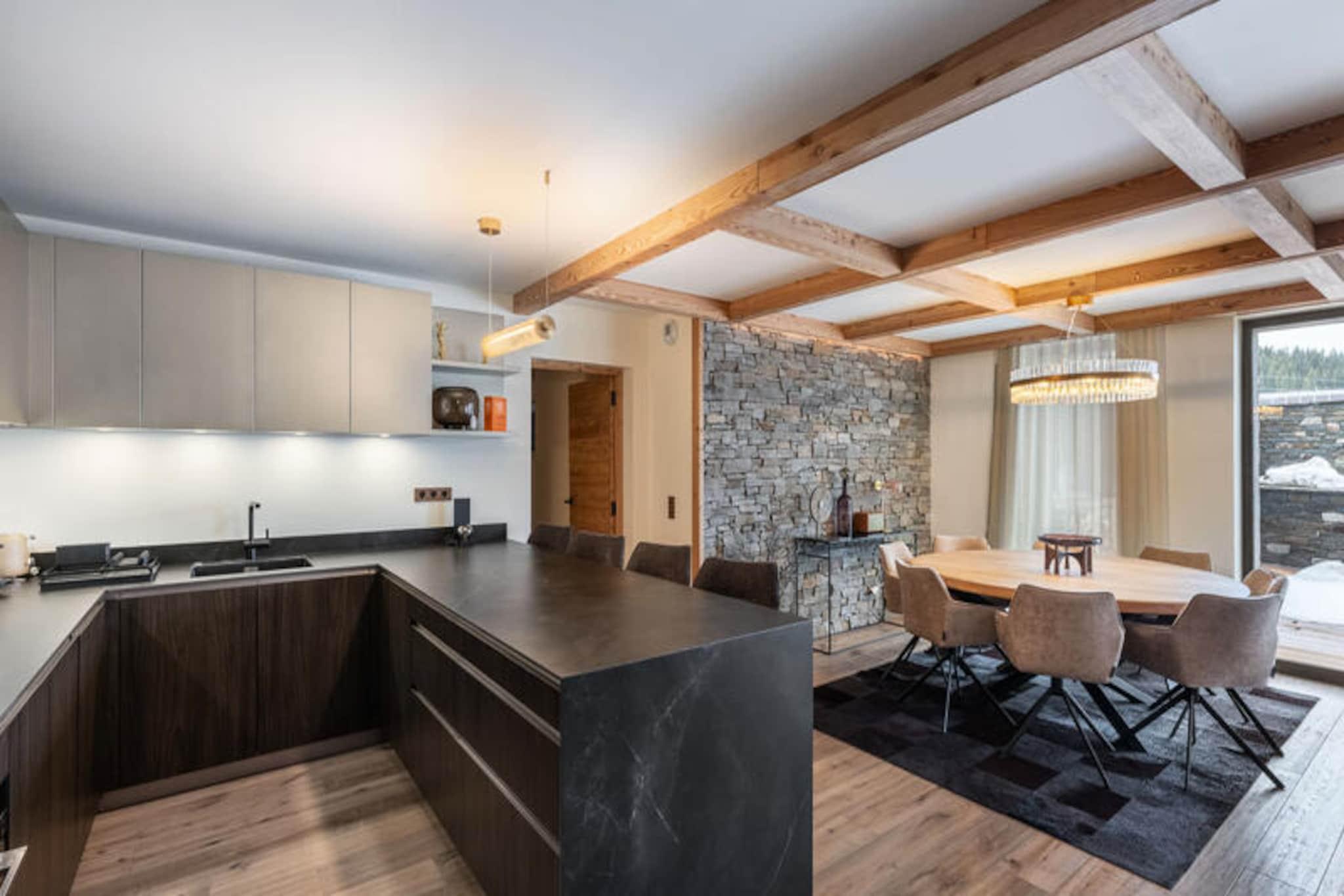Højt over de uberørte skråninger i Courchevel 1850 tilbyder denne luksuriøse alpine lejlighed en oase af elegance og komfort til din næste bjergtur. Forestil dig at vågne op til den friske bjergluft, træde ud på din private balkon for at beundre de snedækkede tinder og tage direkte til pisterne fra skirummet for foden af ??boligen. Dette er mere end bare en ferie; det er en invitation til at fordybe dig i den tidløse charme i de franske alper. Denne omhyggeligt designede lejlighed er på cirka 151 m² og har plads til op til 4 voksne og 4 børn, hvilket gør den ideel til familier eller små grupper. Den åbne stue med hyggelig pejs og spiseplads er perfekt til afslapning efter en dag med eventyr. Det fuldt udstyrede køkken inviterer dig til at tilberede solide måltider, mens de to dobbeltværelser med eget badeværelse, hver med egen balkon, tilbyder et roligt tilflugtssted. En charmerende alkove med køjesenge og eget brusebad sikrer, at yngre gæster bliver lige så forkælede. Moderne faciliteter såsom skirum, overdækket parkering og adgang til boligens spa og swimmingpool forbedrer dit ophold. Beliggende i hjertet af Courchevel 1850 er beliggenheden uovertruffen. Fra døren kan du udforske skiløjper i verdensklasse, nyde udsøgte restauranter eller besøge de elegante butikker i feriestedets centrum. Efter en dag på ski kan du slappe af i spaen eller tage en forfriskende dukkert i poolen. Uanset om du er her for spændingen ved pisterne eller roen i bjergene, tilbyder denne bolig en perfekt balance mellem luksus og bekvemmelighed. Vælg denne exceptionelle ejendom til en uforglemmelig alpin ferie, hvor hver eneste detalje er designet til at gøre dit ophold ekstraordinært.