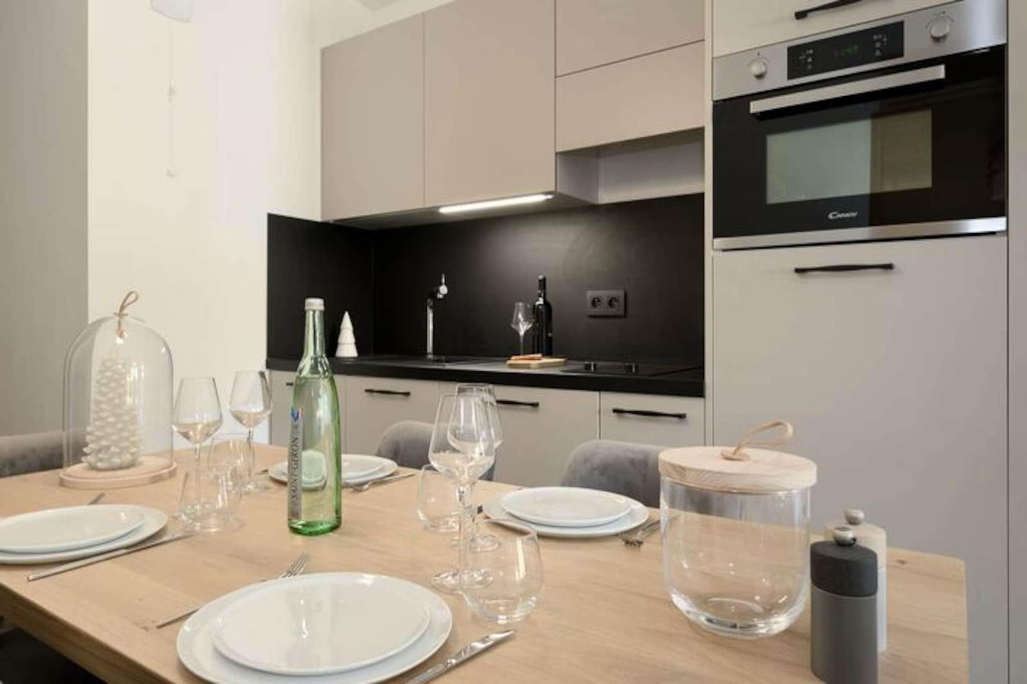 Højt over den maleriske Courchevel Moriond tilbyder denne elegante og moderne lejlighed et roligt tilflugtssted for dem, der søger den perfekte alpine ferie. Med sin minimalistiske indretning og gennemtænkte design er denne bolig et paradis for familier eller par, der ønsker at fordybe sig i de franske alpers skønhed. Ski-in/ski-out-beliggenheden sikrer, at pisterne altid er kun et skridt væk, hvilket gør den til et ideelt valg for vintersportsentusiaster. Vågn op til en betagende udsigt over bjergene fra din private balkon, og lad den friske alpeluft forfriske dine sanser. Indenfor er den 46 m² store lejlighed designet til komfort og bekvemmelighed. Den åbne stue og spisestue er et hyggeligt sted at slappe af efter en dag på pisterne, komplet med et tv og adgang til balkonen. Det fuldt udstyrede køkken inviterer dig til at tilberede solide måltider, mens sovepladserne henvender sig til både familier og små grupper. Soveværelset har en luksuriøs 180x200 cm seng og adgang til balkonen, mens sovealkoven med køjesenge er perfekt til børn eller ekstra gæster. Moderne faciliteter såsom Wi-Fi, et skiboks og en overdækket parkeringsplads sikrer et problemfrit ophold. Ud over lejligheden tilbyder Courchevel Moriond en livlig blanding af lokale butikker, gourmet-delicatessener og skiudlejning lige uden for døren. Petit Moriond-svævebanen er bekvemt tilgængelig via boligen, og Ariondaz-pisten bringer dig nemt tilbage til din base. Uanset om du udforsker de uberørte pister eller forkæler dig selv med afterskiing, placerer denne beliggenhed dig i hjertet af det hele. Med personlig concierge-service, luksuriøst sengetøj og slutrengøring inkluderet, er der taget hånd om alle detaljer for at sikre en stressfri og mindeværdig ferie. Fra at arrangere liftkort og -lektioner til at booke private kokke eller rengøring midt i opholdet, er alle dine behov imødekommet. Oplev magien ved Courchevel Moriond og skab uforglemmelige minder i dette exceptionelle alpine tilflugtssted.