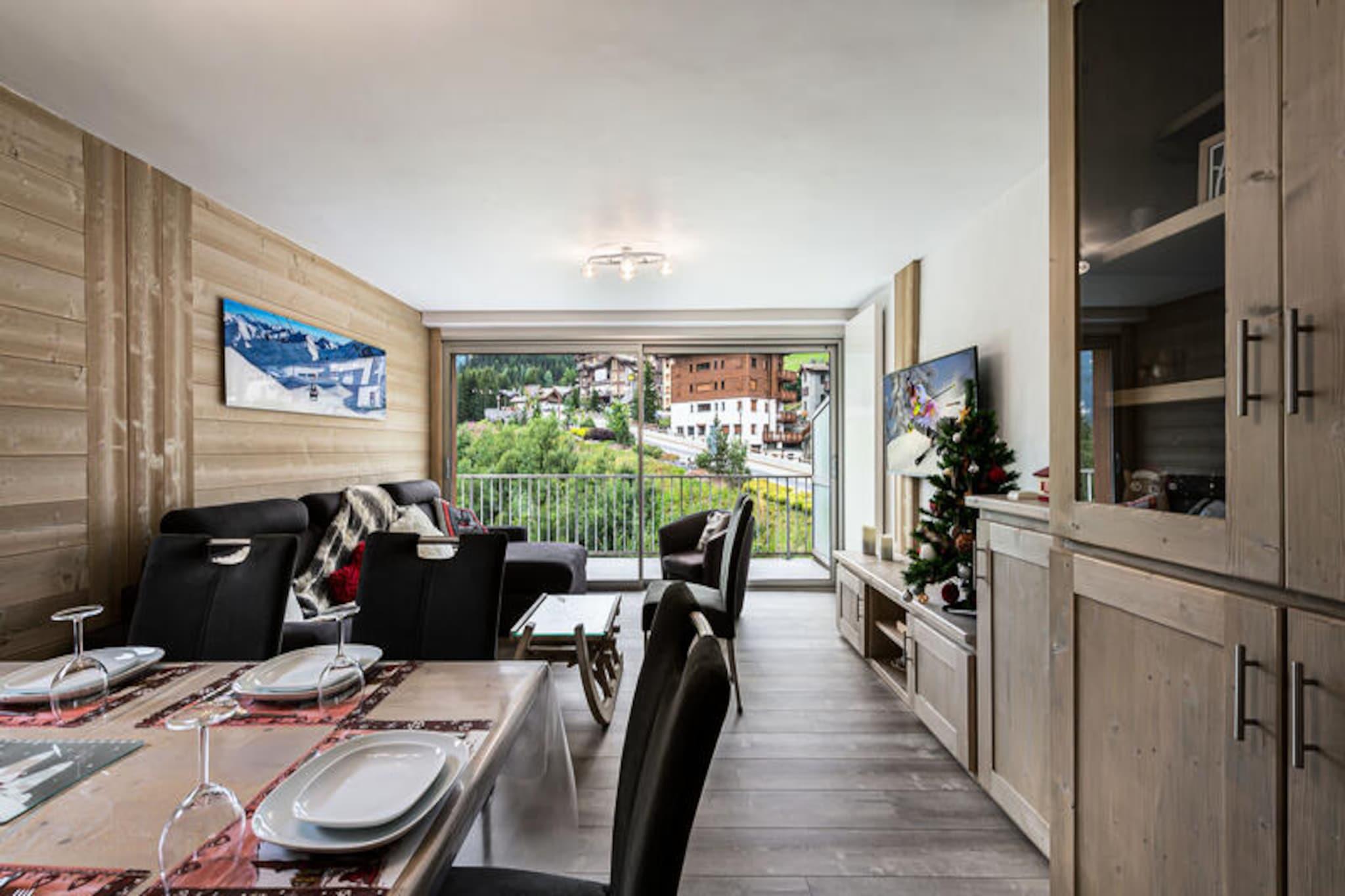 Højt over den maleriske dal Courchevel Moriond tilbyder denne smukt renoverede lejlighed en rolig alpin oase med moderne komfort og en betagende udsigt over bjergene. Beliggende på anden sal i Le Doron-residensen byder den dig velkommen med sin sydvestvendte balkon, hvor solnedgange maler bjergtoppene i nuancer af guld og karmosinrød. Uanset om du er her for pisterne eller sommerens stier, er dette hyggelige tilflugtssted din perfekte base for eventyr og afslapning. Indenfor er det 53 m² store rum omhyggeligt designet til at rumme op til 6/7 gæster. Den åbne opholdsstue har et fuldt udstyret køkken med induktionskogeplade, kombineret mikrobølgeovn/ovn og opvaskemaskine, hvilket gør det nemt at tilberede måltider efter en dag med udforskning. Stuen kan prale af en komfortabel sovesofa og et tv, mens spiseområdet er perfekt til at dele historier over et solidt måltid. To veludstyrede soveværelser har en dobbeltseng og et sæt køjesenge med tre enkeltsenge, hvilket sikrer rigelig plads til familier eller grupper. Et moderne brusebad med vaskemaskine/tørretumbler og et separat toilet bidrager til bekvemmeligheden. Lejligheden ligger ved indgangen til Moriond, kun få minutter fra den pulserende landsbymidte, skilifter og lokale faciliteter. Der er et skirum og en reserveret parkeringsplads i det nærliggende område.