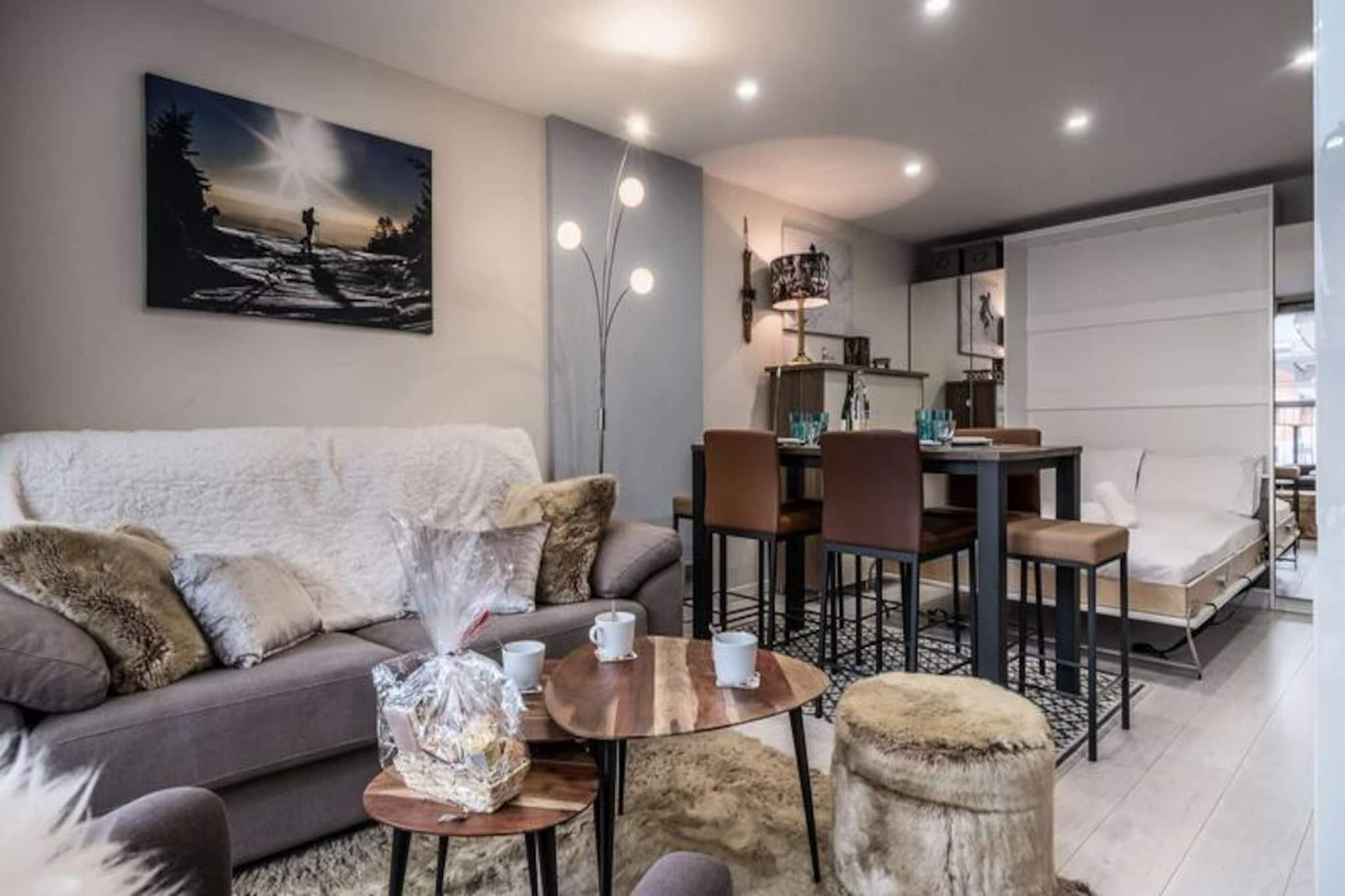 I hjertet af Courchevel Moriond tilbyder denne nyrenoverede, sydvendte lejlighed et idyllisk bjergparadis med en betagende udsigt over de omkringliggende tinder. Forestil dig at vågne op til det gyldne morgenlys, der strømmer ind gennem vinduerne, træde ud på din private terrasse med en varm kop kaffe og nyde den fredfyldte alpine atmosfære. Denne ski-in/ski-out-perle placerer dig lige ved dørtærsklen til Petit Moriond-svævebanen, hvilket sikrer ubesværet adgang til de verdensberømte pister i skiområdet Trois Vallées. Uanset om du er her for vintersport eller sommervandreture, er denne ejendom din port til uforglemmelige eventyr. Den 40 m² store lejlighed er omhyggeligt designet til at rumme op til fire gæster. Opholdsstuen har en hyggelig stue med tv og en dobbelt Murphy-seng, der problemfrit blander komfort og funktionalitet. Det fuldt udstyrede køkken med elkedel, ovn og filterkaffemaskine åbner op til det primære opholdsrum, hvilket gør det perfekt til at tilberede måltider efter en dag på pisterne. Et separat dobbeltværelse med rigelig opbevaringsplads sikrer afslappende nætter, mens det moderne badeværelse med bruser og separat toilet gør dit ophold mere bekvemt. Yderligere faciliteter inkluderer et skirum, en privat udendørs parkeringsplads og en vaskemaskine/tørretumbler for din komfort. Ud over lejligheden tilbyder Courchevel Moriond en pulserende landsbyatmosfære med charmerende restauranter, afterski-steder og butikker kun en kort gåtur væk. Ariondaz-ruten bringer dig bekvemt tilbage til din bolig, hvilket gør dine skidage problemfri og stressfri. For dem, der søger ekstra forkælelse, står vores concierge-service til din rådighed for at arrangere liftkort, lektioner, leje af udstyr og endda restaurantbestillinger. Uanset om du er tiltrukket af de uberørte pister, landsbyens charme eller bjergenes ro, lover denne lejlighed et mindeværdigt ophold i hjertet af de franske alper. Lad magien i Courchevel Moriond fortrylle dig og skabe minder for livet.