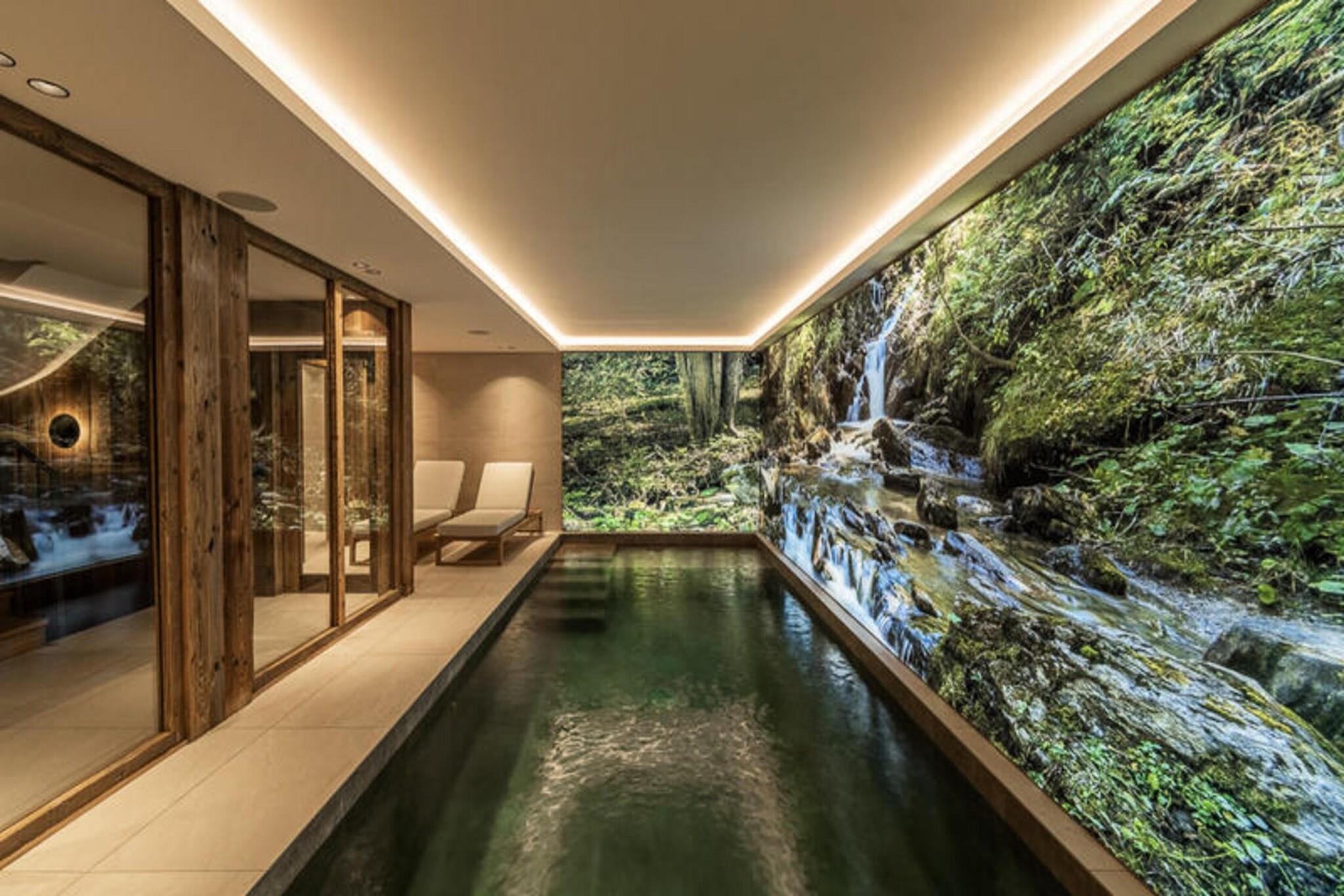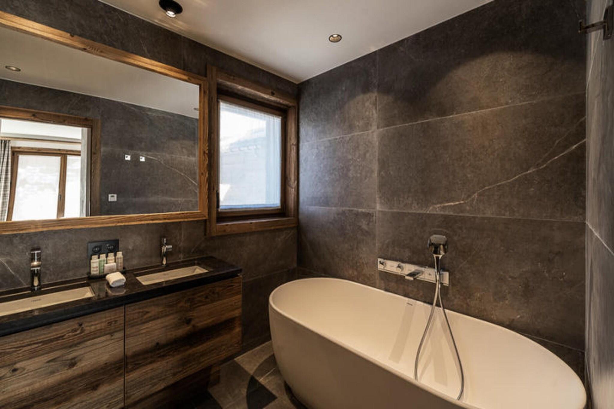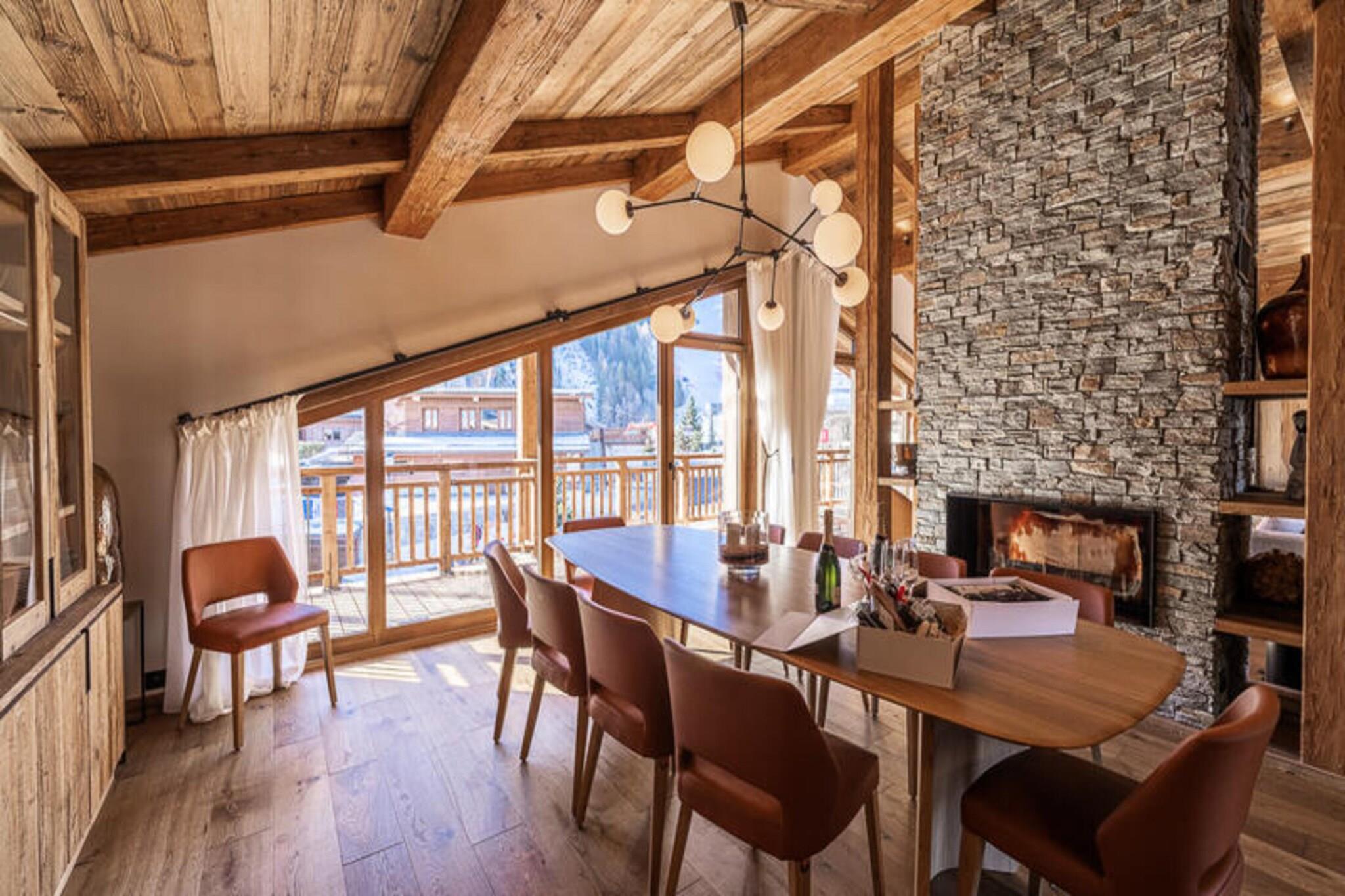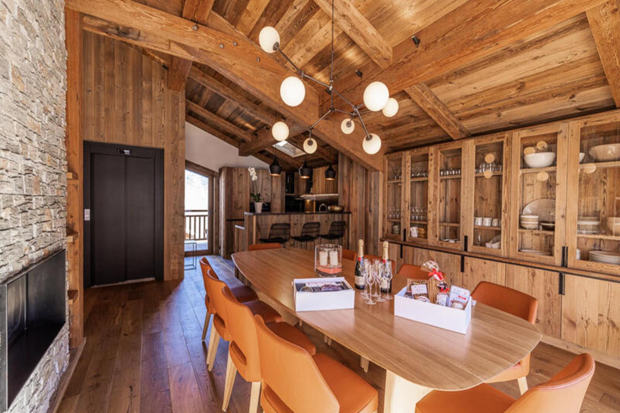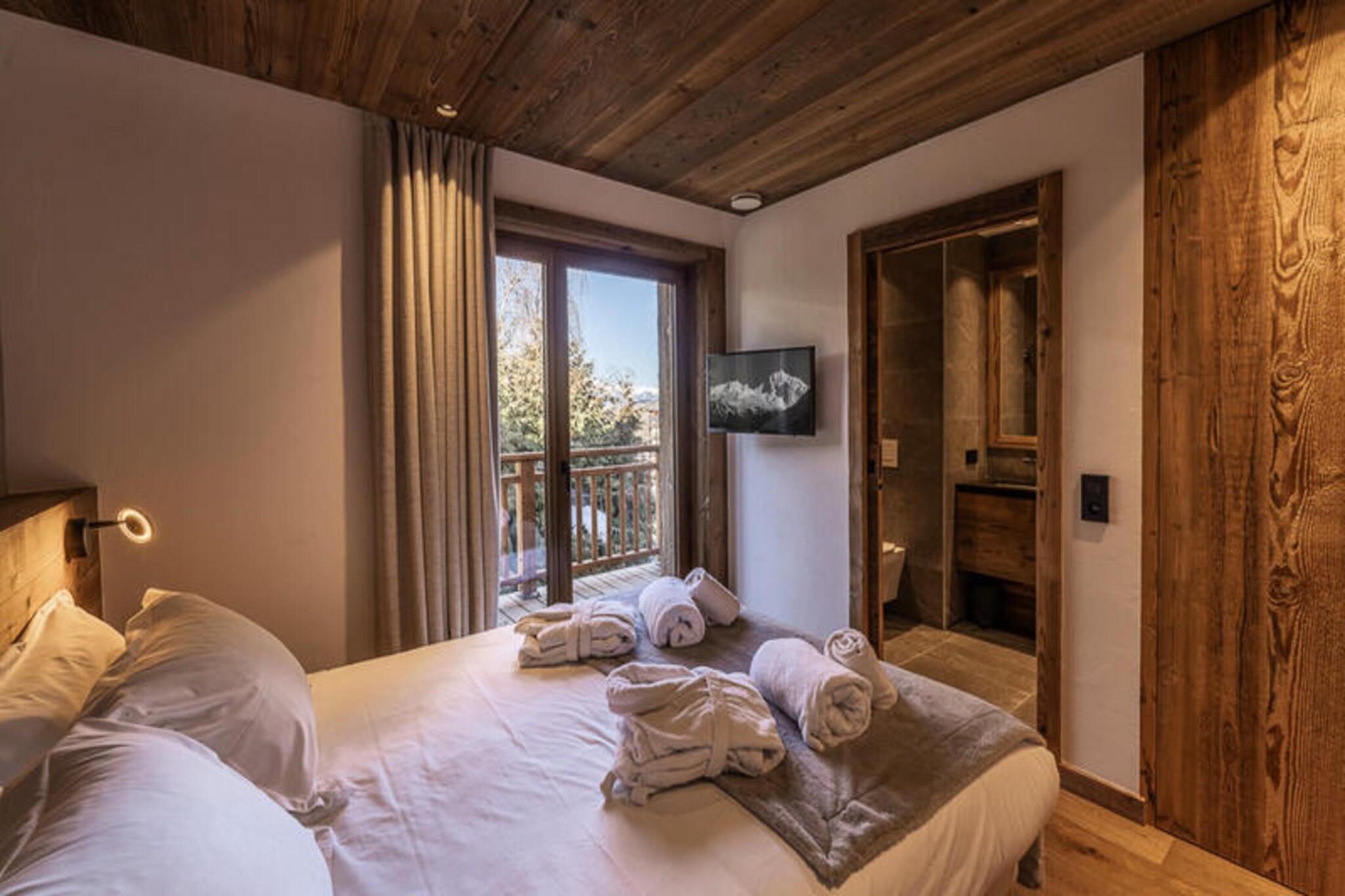 Denne luksuriøse 5-etagers chalet tilbyder rummelig indkvartering for op til 12 gæster, med 6 en-suite soveværelser med enkeltsenge eller dobbeltsenge. Det store soveværelse har et badeværelse med badekar og bruser, mens andre værelser har bruser og balkon. Ejendommen omfatter også et skirum med støvletørrere, en tv-stue og en værdiboks. Kæledyr er velkomne mod et gebyr, hvilket sikrer et behageligt ophold for alle familiemedlemmer. Beliggende i den fredelige landsby Bois du Praz, er denne hytte kun 400 meter fra landsbyens centrum, hvor du finder charmerende butikker, caféer og restauranter. Skilifterne, der ligger kun 200 meter væk, giver hurtig adgang til pisterne på Courchevel 1850, som er ideelle for vintersportsentusiaster. Området byder på et afslappende oase med nem adgang til både landsbyens faciliteter og det større Courchevel-resort. Chaletens rummelige opholdsstue omfatter en lounge med pejs, en spisestue og et fuldt udstyret åbent køkken med en bar. Gæsterne kan nyde det udendørs med en terrasse og balkon, mens en dedikeret læsesal giver et roligt tilflugtssted. Afslapningsområdet på det nederste niveau omfatter en swimmingpool, sauna og urtete-rum, hvilket sikrer en foryngende oplevelse efter en dag på pisterne.