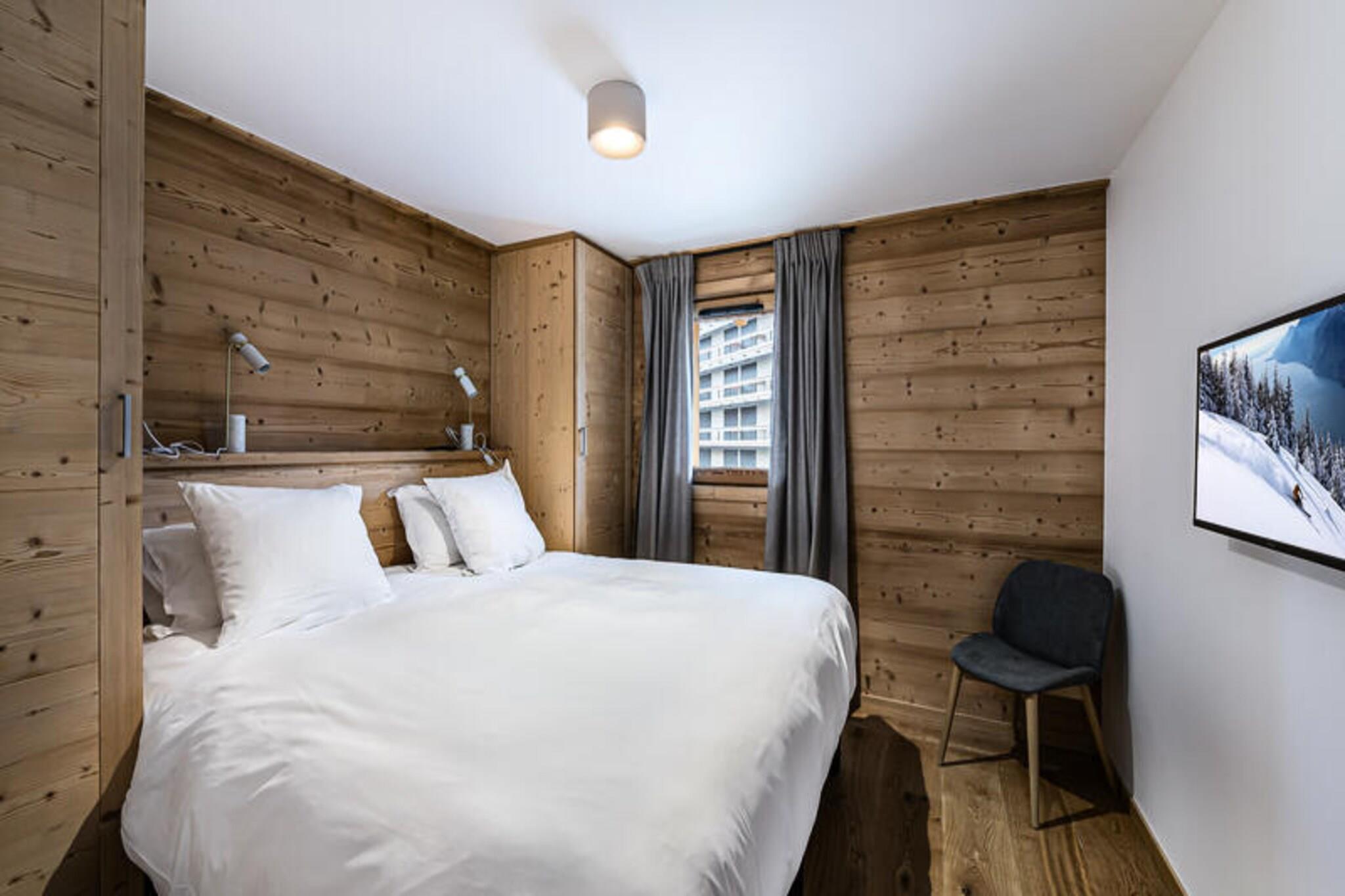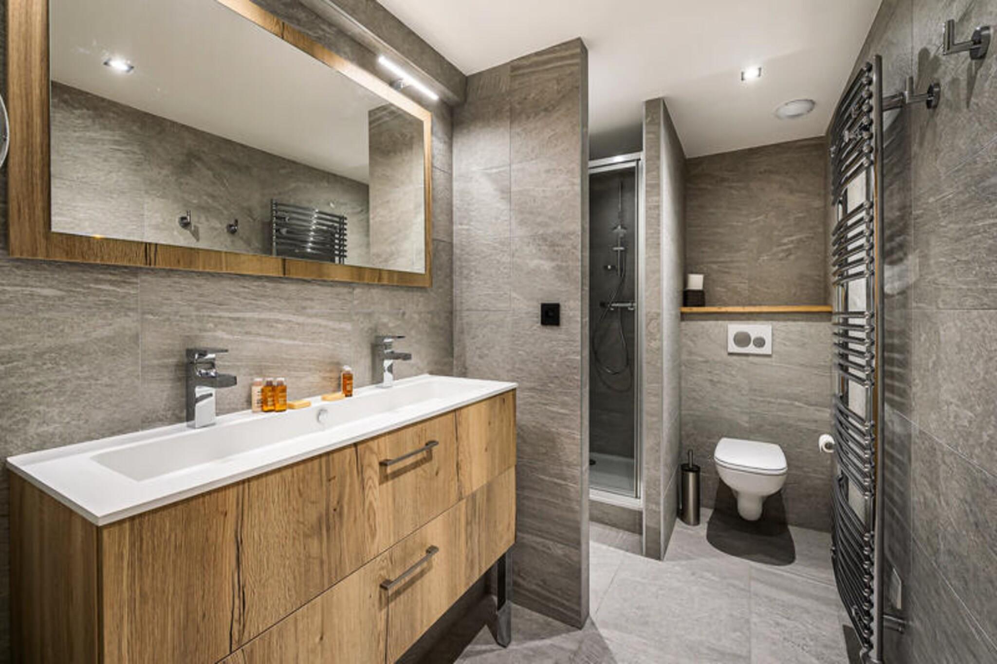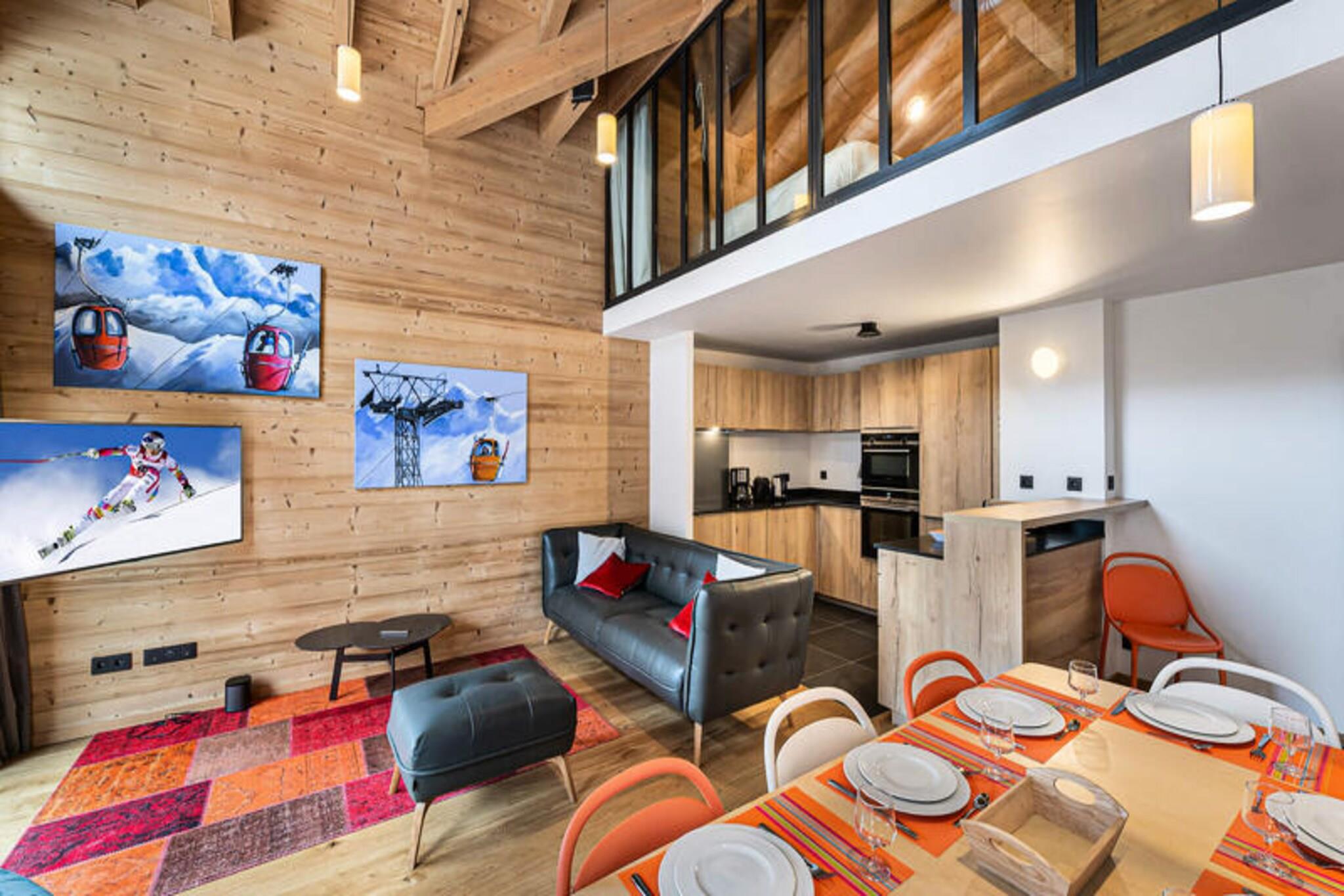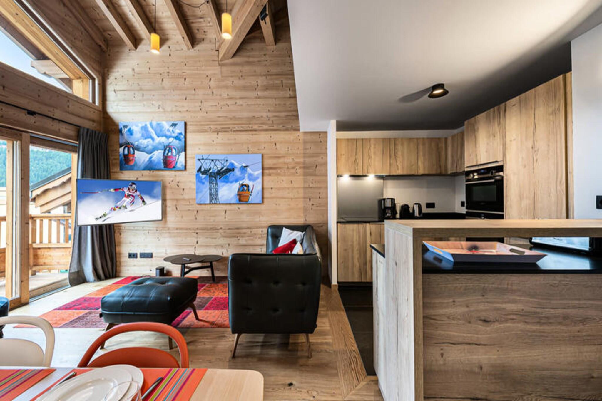Denne rummelige duplex-lejlighed på 89 m² kan rumme op til 8 gæster med 4 soveværelser. Det første niveau har to soveværelser med dobbeltsenge, hver med et tv, og et selvstændigt badeværelse med dobbelt håndvask. Mezzaninen byder på et andet soveværelse med dobbeltseng og et værelse med to enkeltsenge, hver også udstyret med et tv. Lejligheden er ikke-ryger og tillader ikke kæledyr, hvilket sikrer et rent og behageligt miljø for alle gæster. Beliggende kun 100 meter fra snefronten og nærliggende faciliteter giver lejligheden nem adgang til Ariondaz-gondolen, der forbinder gæsterne til det ekspansive 3 Valleys-skiområde. Den pulserende landsby Courchevel Moriond er også inden for rækkevidde og tilbyder en række butikker, caféer og restauranter, perfekt til afterski eller afslappede udflugter. Lejligheden har et fuldt udstyret åbent køkken med moderne apparater, herunder en raclettemaskine og opvaskemaskine. Gæsterne kan nyde måltider i spiseområdet eller slappe af i den komfortable tv-stue. Yderligere faciliteter omfatter Wi-Fi, en dobbeltgarage, et skiskab og regelmæssig rengøring to gange om ugen. Lejligheden har også en vaskemaskine og tørretumbler for ekstra bekvemmelighed.