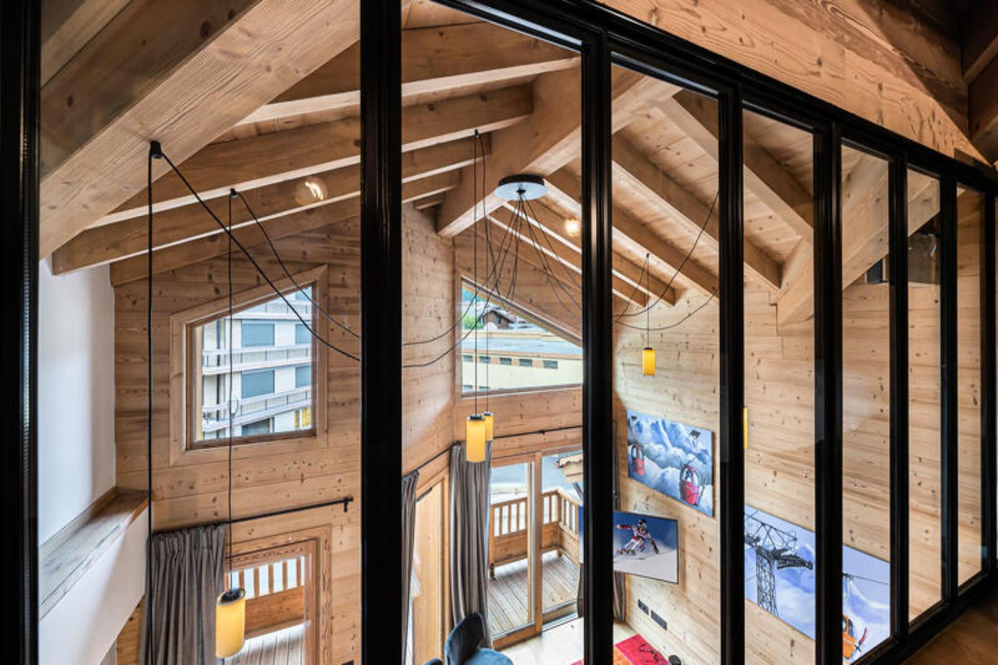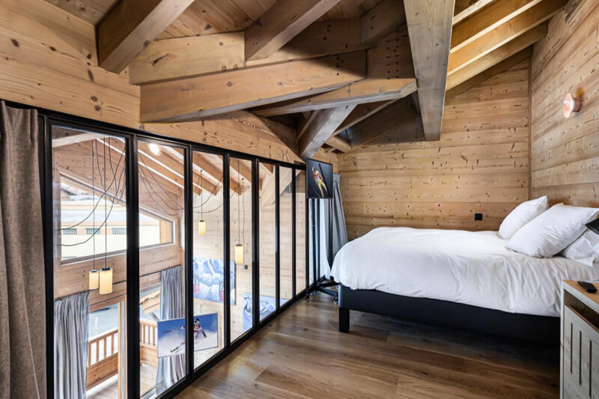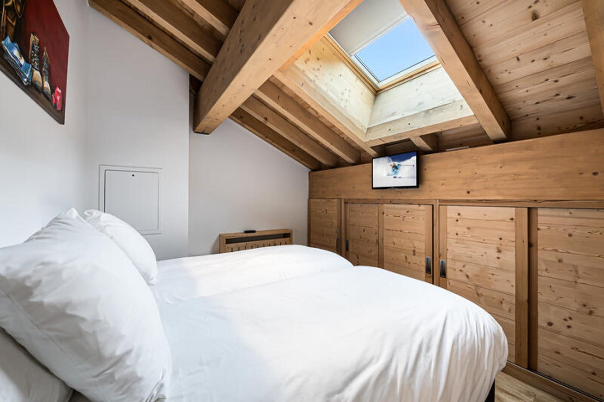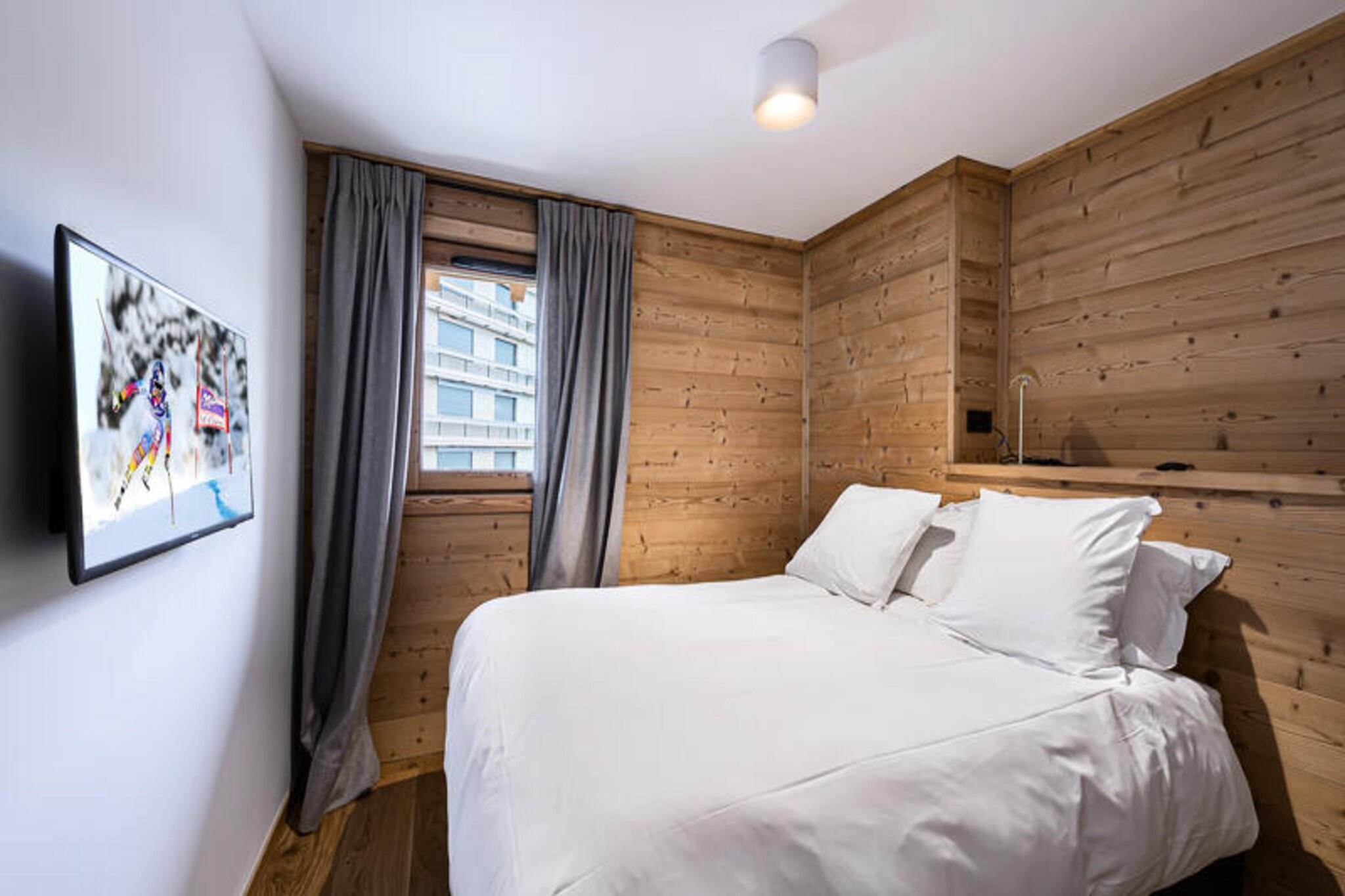 Denne rummelige duplex-lejlighed på 89 m² kan rumme op til 8 gæster med 4 soveværelser. Det første niveau har to soveværelser med dobbeltsenge, hver med et tv, og et selvstændigt badeværelse med dobbelt håndvask. Mezzaninen byder på et andet soveværelse med dobbeltseng og et værelse med to enkeltsenge, hver også udstyret med et tv. Lejligheden er ikke-ryger og tillader ikke kæledyr, hvilket sikrer et rent og behageligt miljø for alle gæster. Beliggende kun 100 meter fra snefronten og nærliggende faciliteter giver lejligheden nem adgang til Ariondaz-gondolen, der forbinder gæsterne til det ekspansive 3 Valleys-skiområde. Den pulserende landsby Courchevel Moriond er også inden for rækkevidde og tilbyder en række butikker, caféer og restauranter, perfekt til afterski eller afslappede udflugter. Lejligheden har et fuldt udstyret åbent køkken med moderne apparater, herunder en raclettemaskine og opvaskemaskine. Gæsterne kan nyde måltider i spiseområdet eller slappe af i den komfortable tv-stue. Yderligere faciliteter omfatter Wi-Fi, en dobbeltgarage, et skiskab og regelmæssig rengøring to gange om ugen. Lejligheden har også en vaskemaskine og tørretumbler for ekstra bekvemmelighed.