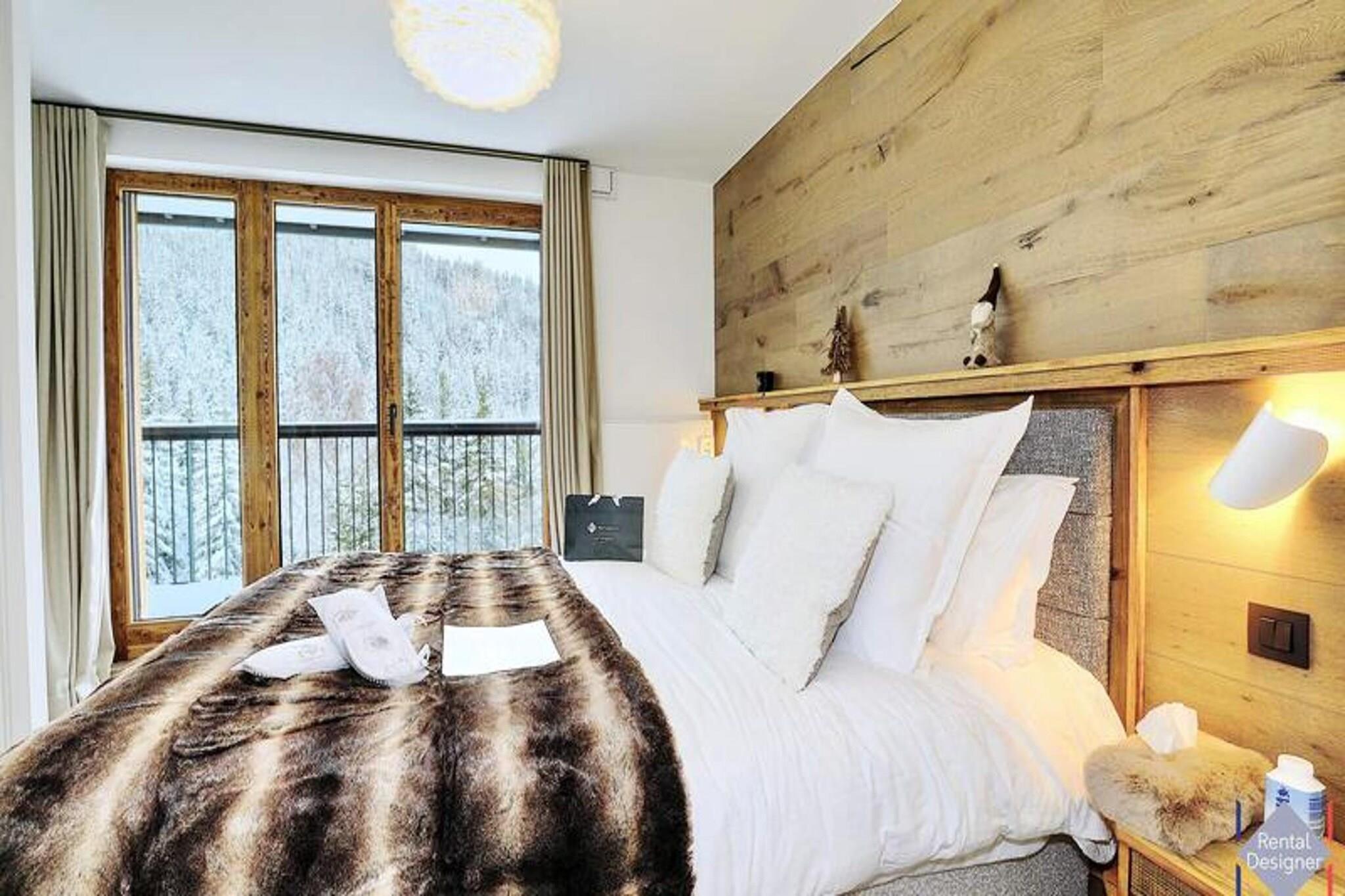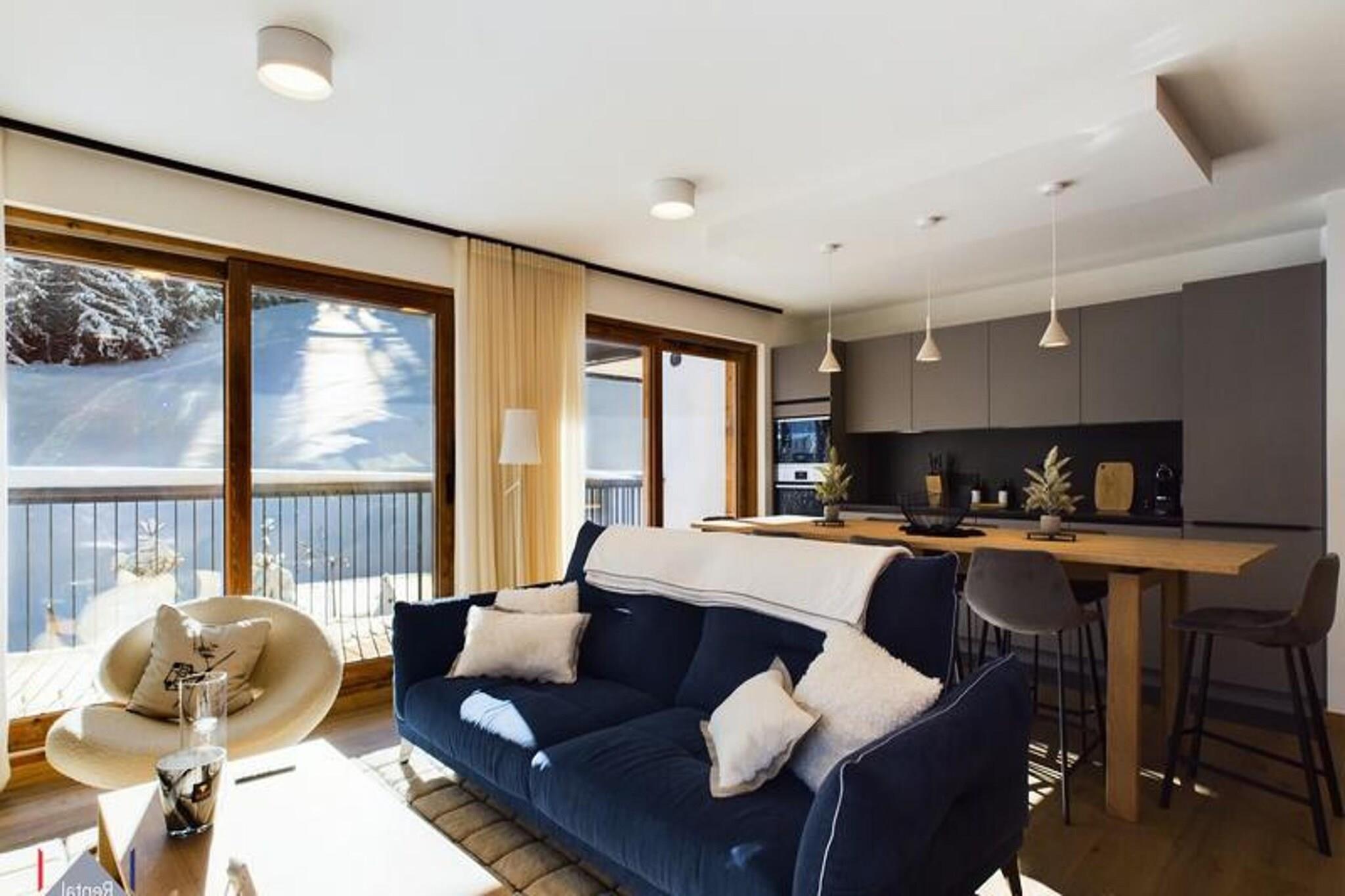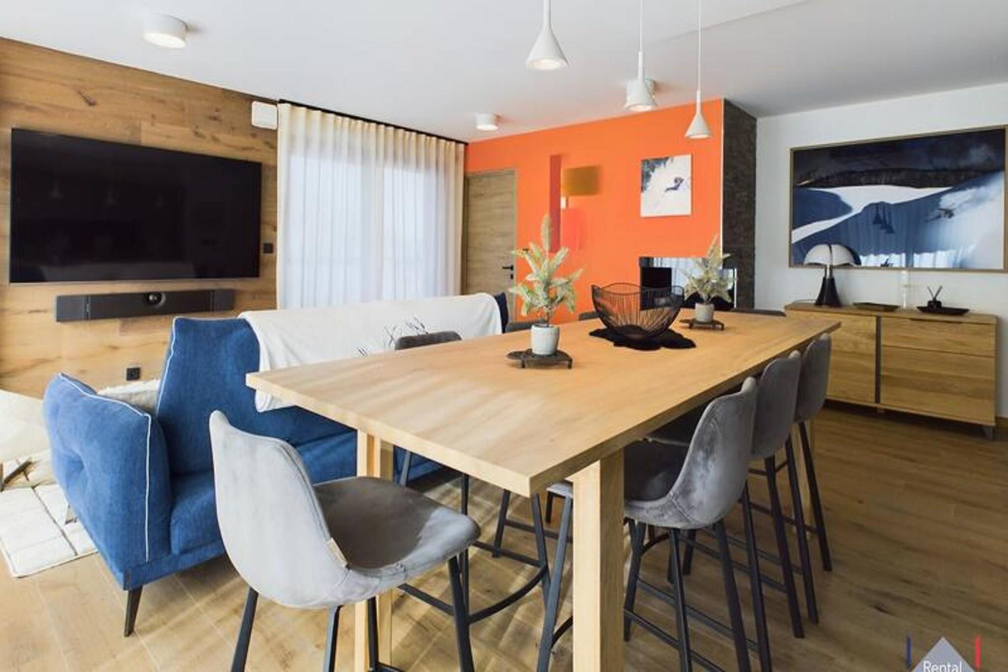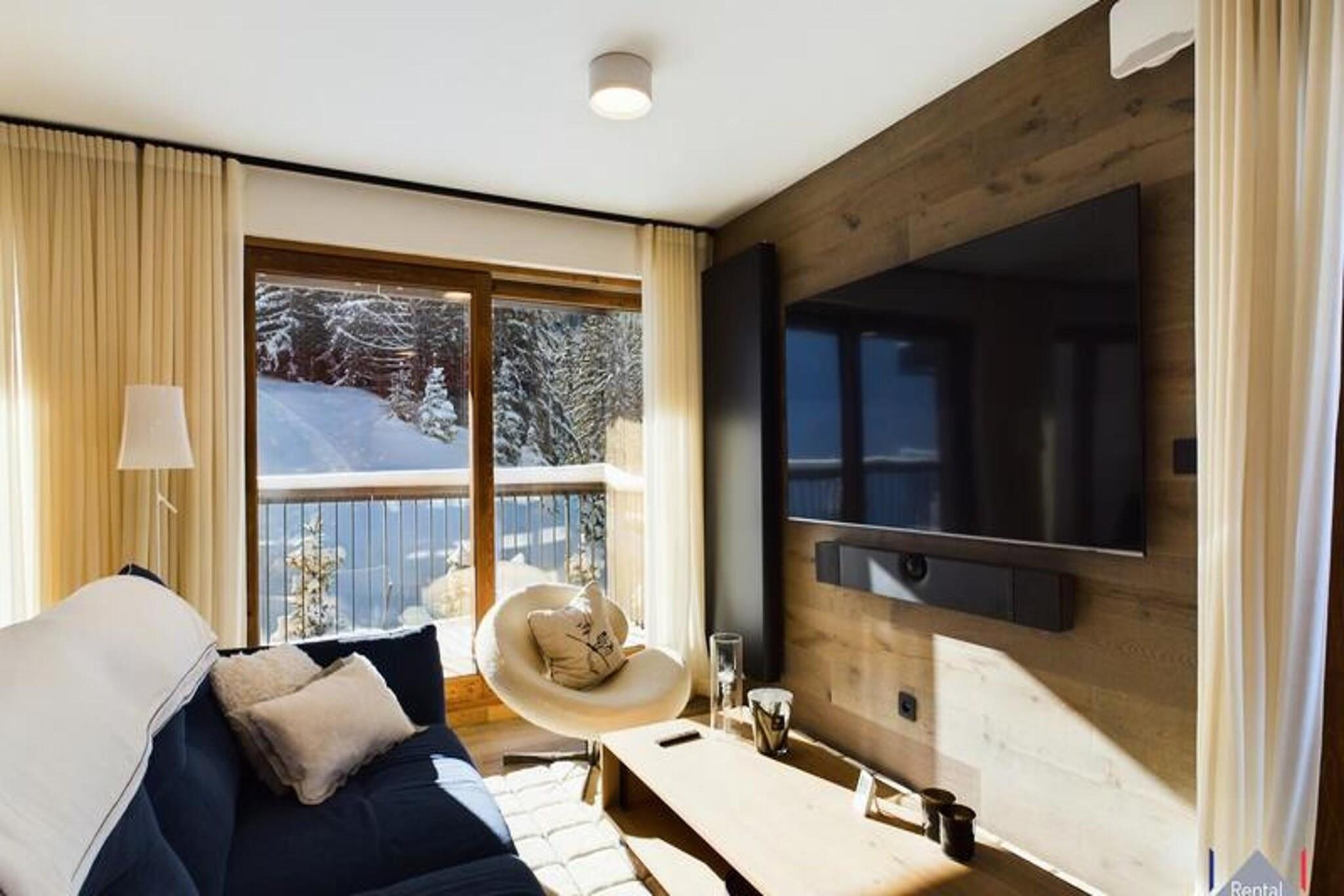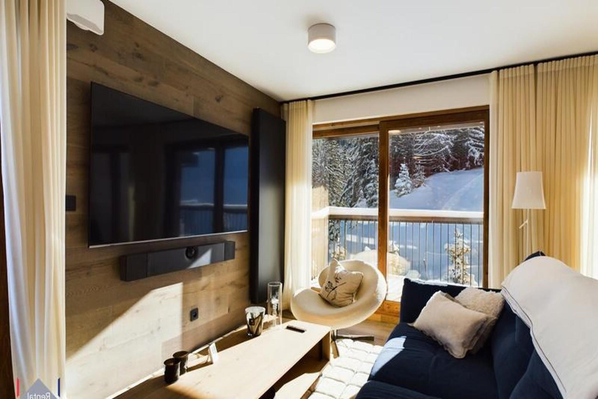 Denne nyrenoverede lejlighed, beliggende på 2. sal i en moderne bolig, tilbyder en rummelig 91 m² indretning designet til 8 gæster. Det har tre en-suite soveværelser: to med dobbeltsenge og et med to sæt køjesenge (4 sovepladser). Hvert værelse er udstyret med et Smart TV, rigelig opbevaring og adgang til en af ??de tre altaner. Ejendommen er ikke-ryger og ikke kæledyrsvenlig, hvilket sikrer et fredeligt og behageligt miljø for alle gæster. Lejligheden har en førsteklasses beliggenhed med adgang til ski-in og kun en kort gåtur til "Petit Moriond" gondolen, 50 meter væk. Den gratis shuttle-service, som er tilgængelig ved foden af ??bygningen, giver adgang til alle feriesteder i Courchevel samt Aquamotion, 5 minutters kørsel derfra. For dem, der ønsker at udforske, kan området prale af nærliggende butikker og en række spisemuligheder. Resortet giver nem adgang til pisterne, hvilket gør det til et ideelt valg for skientusiaster. Indvendigt byder lejligheden på en stor stue på 32 m² med et komfortabelt opholdsområde med ethanolpejs. Den rummelige spiseplads er perfekt til familiemåltider, mens det moderne køkken er fuldt udstyret til alle dine kulinariske behov. Yderligere faciliteter inkluderer sengetøj og håndklæder samt daglig rengøring, hvilket sikrer et problemfrit ophold i hjertet af Courchevel Moriond.