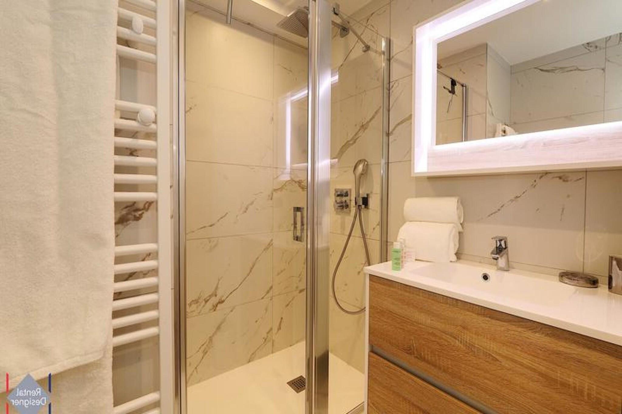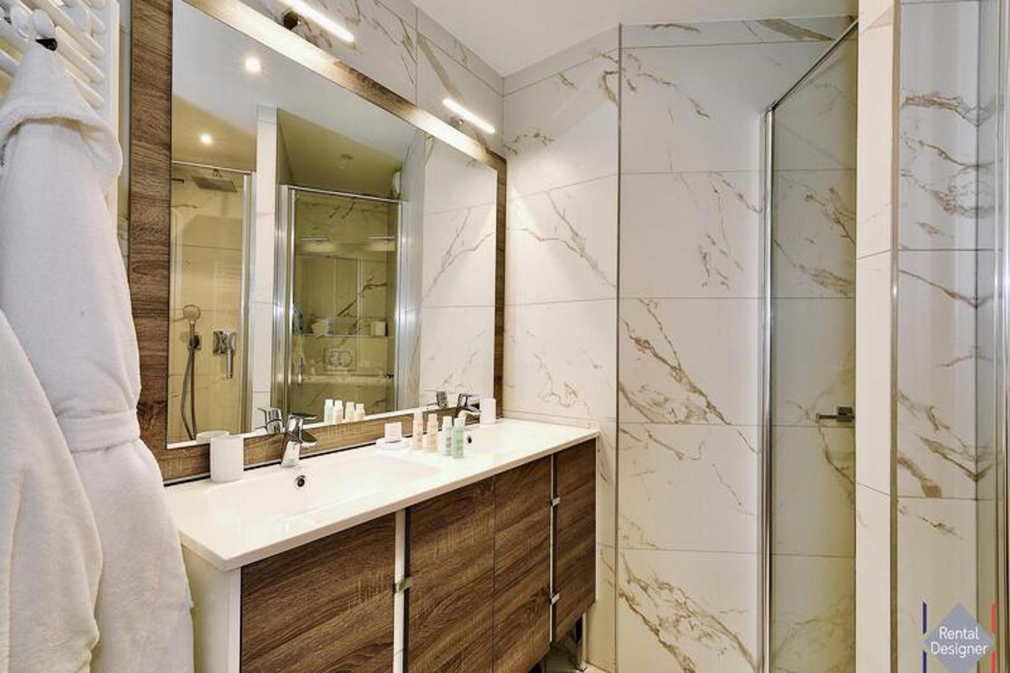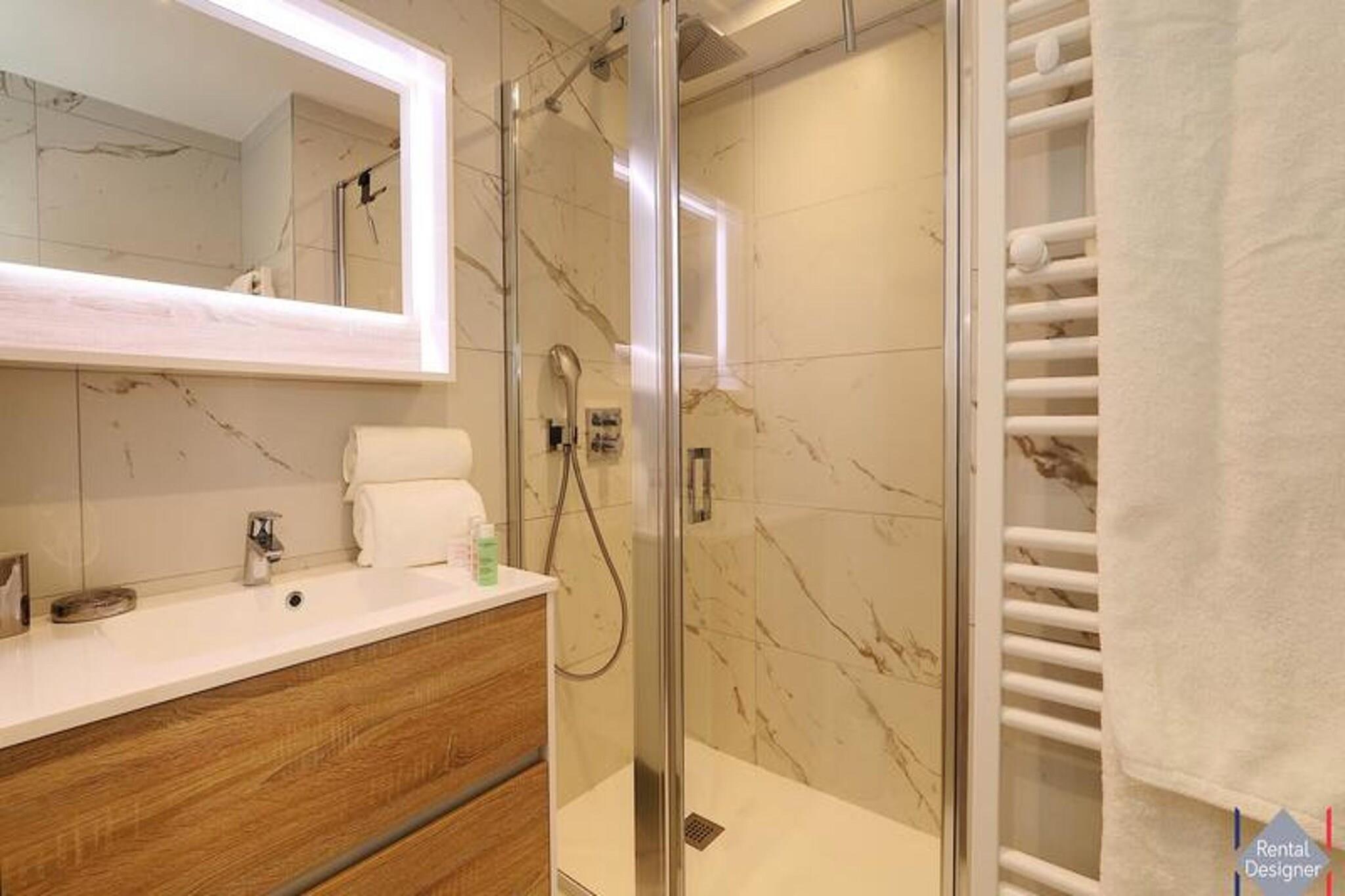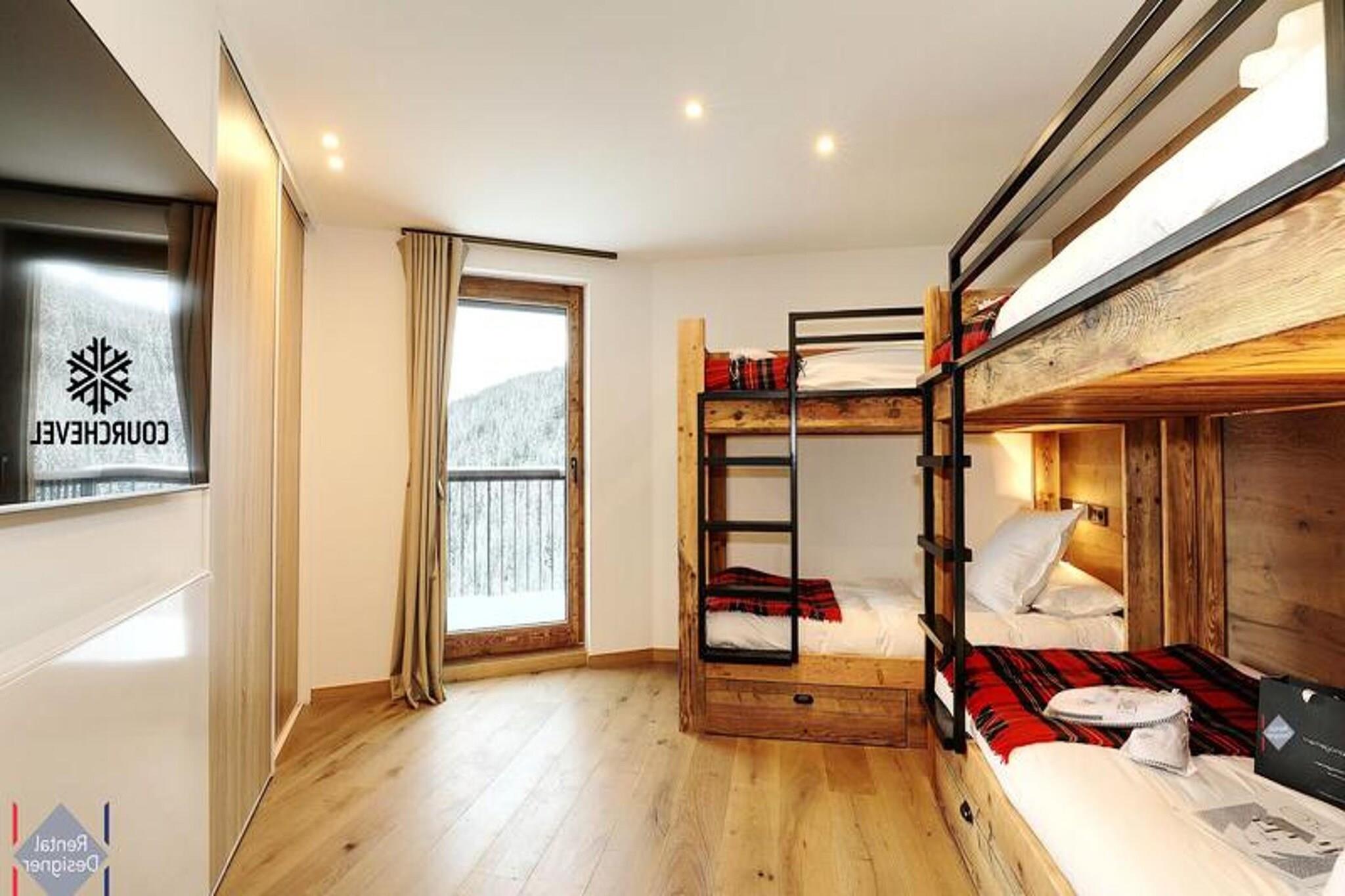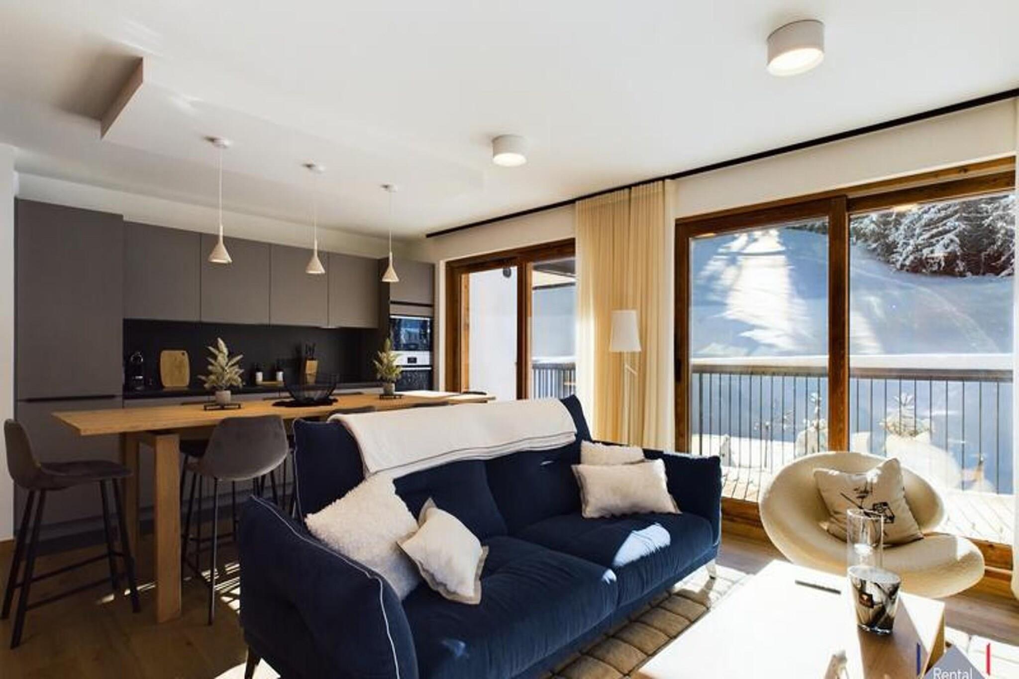 Denne nyrenoverede lejlighed, beliggende på 2. sal i en moderne bolig, tilbyder en rummelig 91 m² indretning designet til 8 gæster. Det har tre en-suite soveværelser: to med dobbeltsenge og et med to sæt køjesenge (4 sovepladser). Hvert værelse er udstyret med et Smart TV, rigelig opbevaring og adgang til en af ??de tre altaner. Ejendommen er ikke-ryger og ikke kæledyrsvenlig, hvilket sikrer et fredeligt og behageligt miljø for alle gæster. Lejligheden har en førsteklasses beliggenhed med adgang til ski-in og kun en kort gåtur til "Petit Moriond" gondolen, 50 meter væk. Den gratis shuttle-service, som er tilgængelig ved foden af ??bygningen, giver adgang til alle feriesteder i Courchevel samt Aquamotion, 5 minutters kørsel derfra. For dem, der ønsker at udforske, kan området prale af nærliggende butikker og en række spisemuligheder. Resortet giver nem adgang til pisterne, hvilket gør det til et ideelt valg for skientusiaster. Indvendigt byder lejligheden på en stor stue på 32 m² med et komfortabelt opholdsområde med ethanolpejs. Den rummelige spiseplads er perfekt til familiemåltider, mens det moderne køkken er fuldt udstyret til alle dine kulinariske behov. Yderligere faciliteter inkluderer sengetøj og håndklæder samt daglig rengøring, hvilket sikrer et problemfrit ophold i hjertet af Courchevel Moriond.