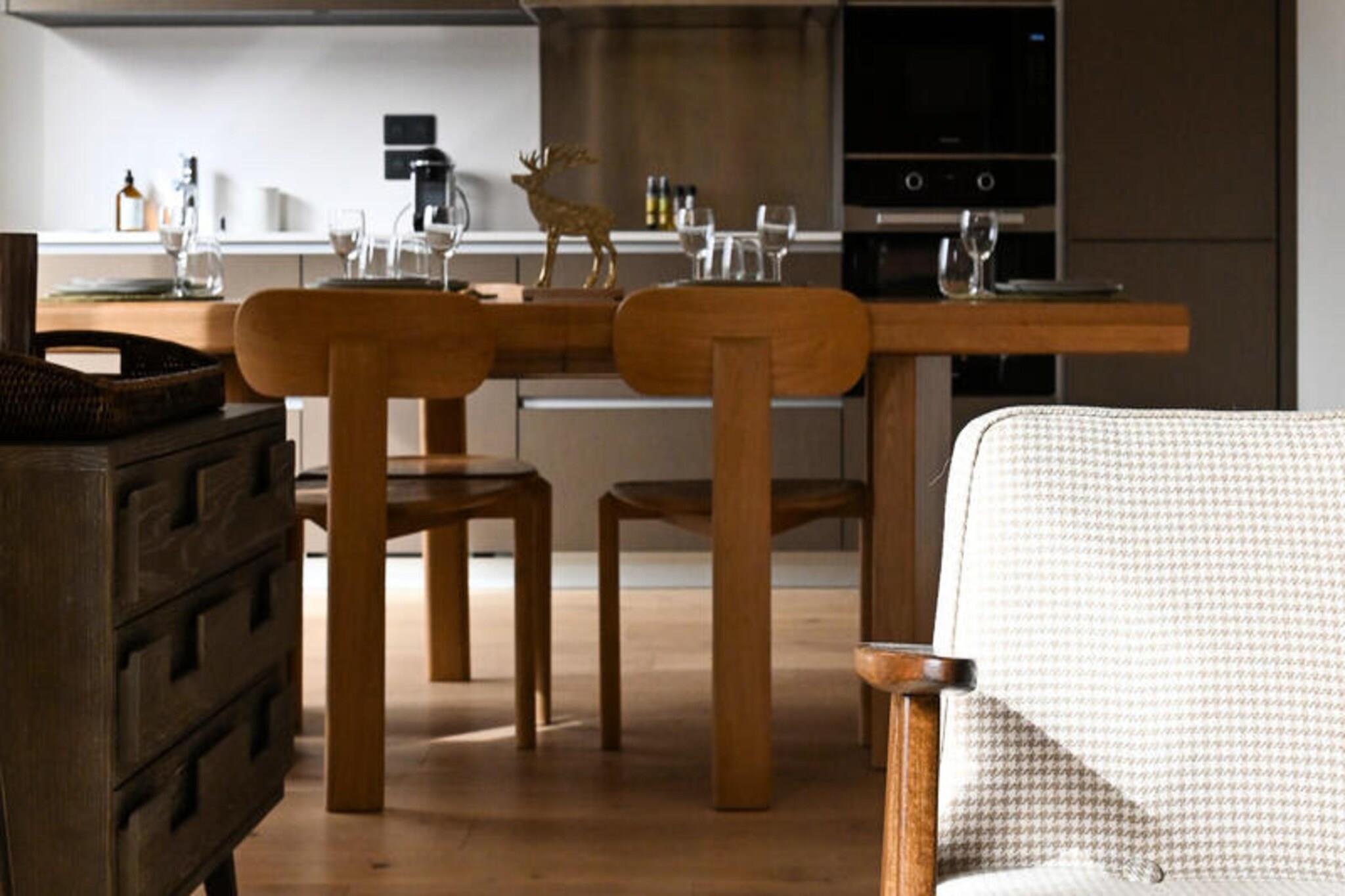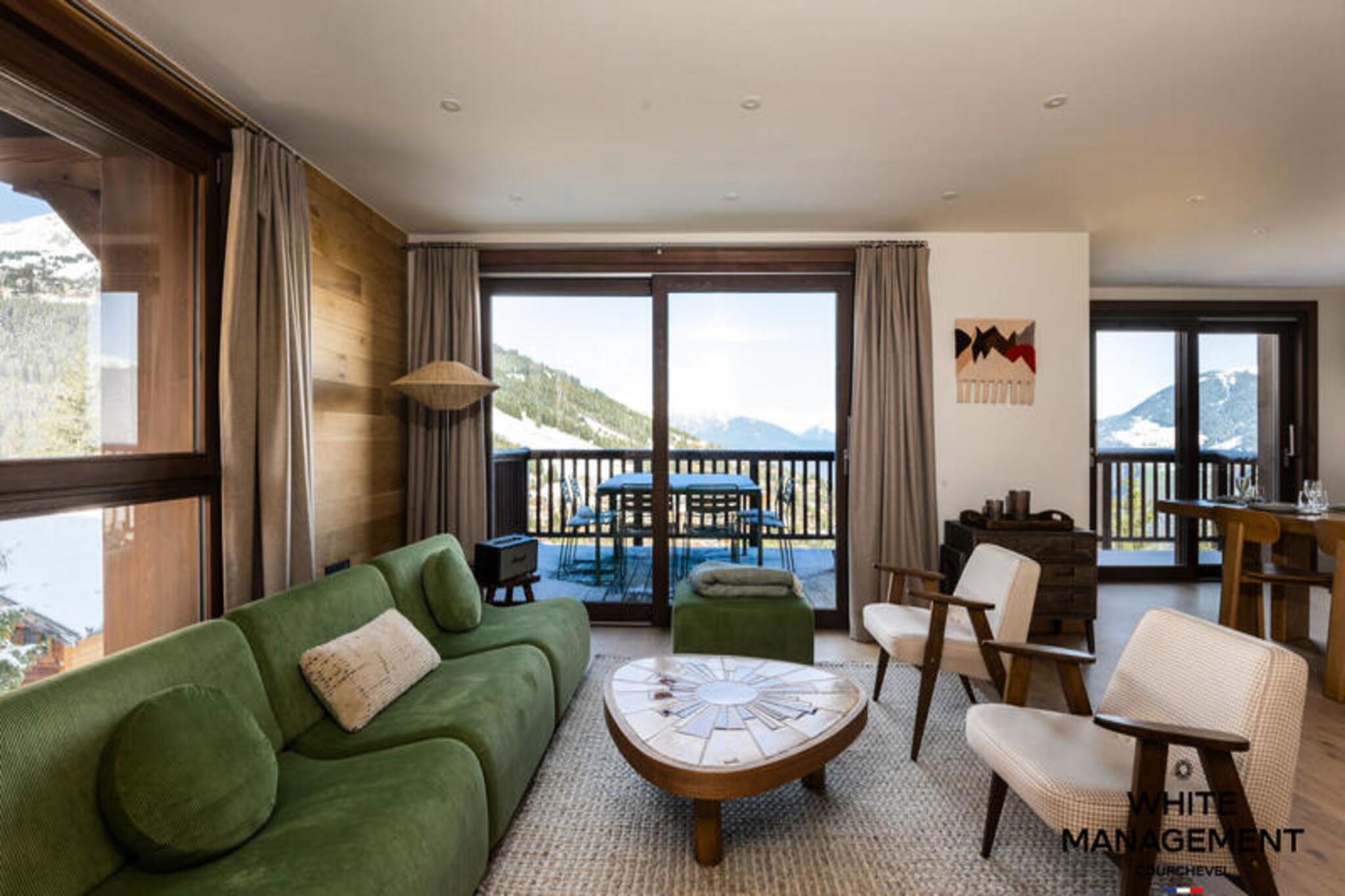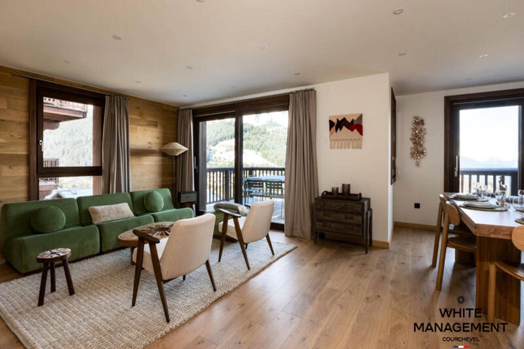 Denne nyligt afsluttede duplex lejlighed i Courchevel 1650 byder på et rummeligt layout på 114 m², perfekt til familier eller grupper på op til 8 personer. Ejendommen har fire soveværelser, herunder et dobbeltværelse med eget badeværelse med balkon i stueetagen, og to ekstra soveværelser - et dobbeltværelse og et med 2 enkeltsenge - der deler et forbindende badeværelse ovenpå. Lejligheden er ikke-ryger og ikke kæledyrsvenlig, hvilket sikrer et behageligt og roligt miljø for alle gæster. Lejlighedens beliggenhed byder på en enestående udsigt over dalen med nem adgang til skiløjperne. Blot en kort afstand fra feriestedets centrum kan du nyde den rolige afsondrethed ved Domaine Privé des Glaciers, mens du forbliver tæt på handlingen. Et privat skirum med støvlevarmer tilføjer bekvemmelighed for gæsterne efter en dag på pisterne. For dem, der ønsker at udforske, ligger nærliggende caféer, butikker og markeder blot et par minutter væk, og de tilbyder en række spise- og shoppingmuligheder. Indvendigt har lejligheden et rummeligt opholdsområde med komfortable lænestole og en brændeovn, perfekt til at slappe af efter en dag på ski. Den store spiseplads med plads til 8 suppleres af et fuldt udstyret åbent køkken. Lejligheden har også moderne bekvemmeligheder såsom sengetøj og håndklæder, hvilket sikrer et problemfrit ophold.