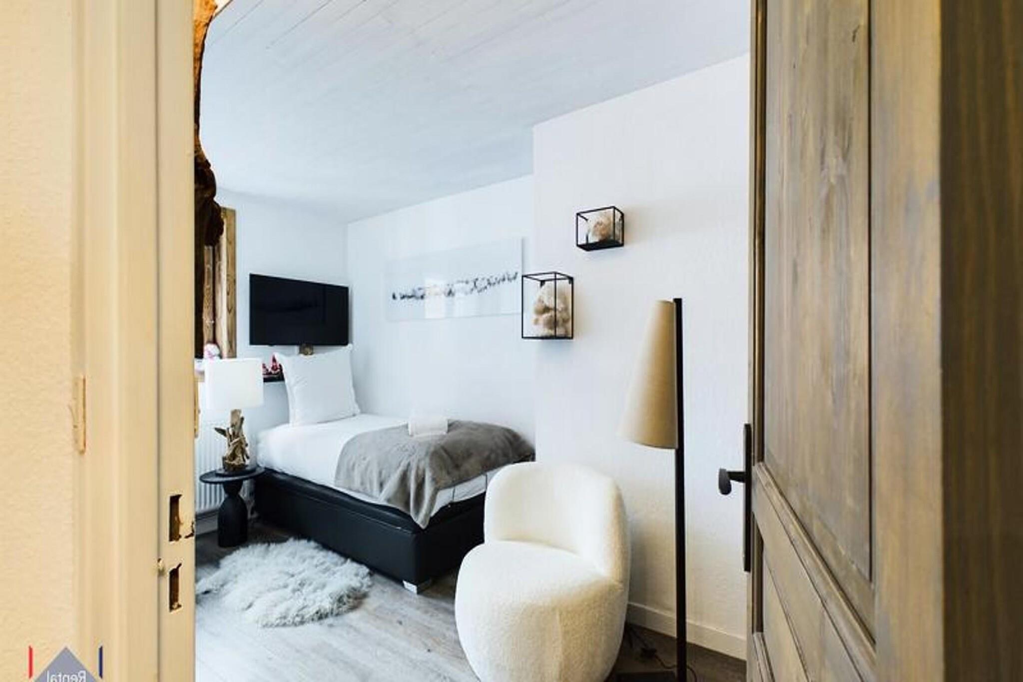 Denne charmerende 5-personers lejlighed ligger på 4. sal i en lille bolig, og tilbyder en varm, familievenlig atmosfære. Lejligheden har et hovedsoveværelse med en-suite badeværelse og et andet soveværelse med to senge og et separat badeværelse. Børnenes soveområde omfatter en enkeltseng og boudoir samt en adskillelig dobbeltseng. Ejendommen er fri for kæledyr, hvilket sikrer et afslappende ophold for alle gæster. En stor balkon med en fantastisk udsigt over bjergene fuldender rummet. Denne lejlighed har en ideel beliggenhed kun få meter fra Petit Moriond-gondolen og tilbyder nem adgang til skiløjperne. Den gratis shuttle stopper lige ved foden af ??bygningen, hvilket giver nem adgang til Courchevel-resorterne og nærliggende Aquamotion. Nye butikker, caféer og markeder er inden for gåafstand, hvilket gør det til et perfekt sted for en blanding af eventyr og afslapning. Lejligheden har et åbent køkken fuldt udstyret til selvforplejning, og den rummelige stue med en hjørnesofa åbner ud til den store balkon. Badeværelset har separate toiletfaciliteter for ekstra bekvemmelighed, hvilket sikrer et behageligt og behageligt ophold for gæsterne.