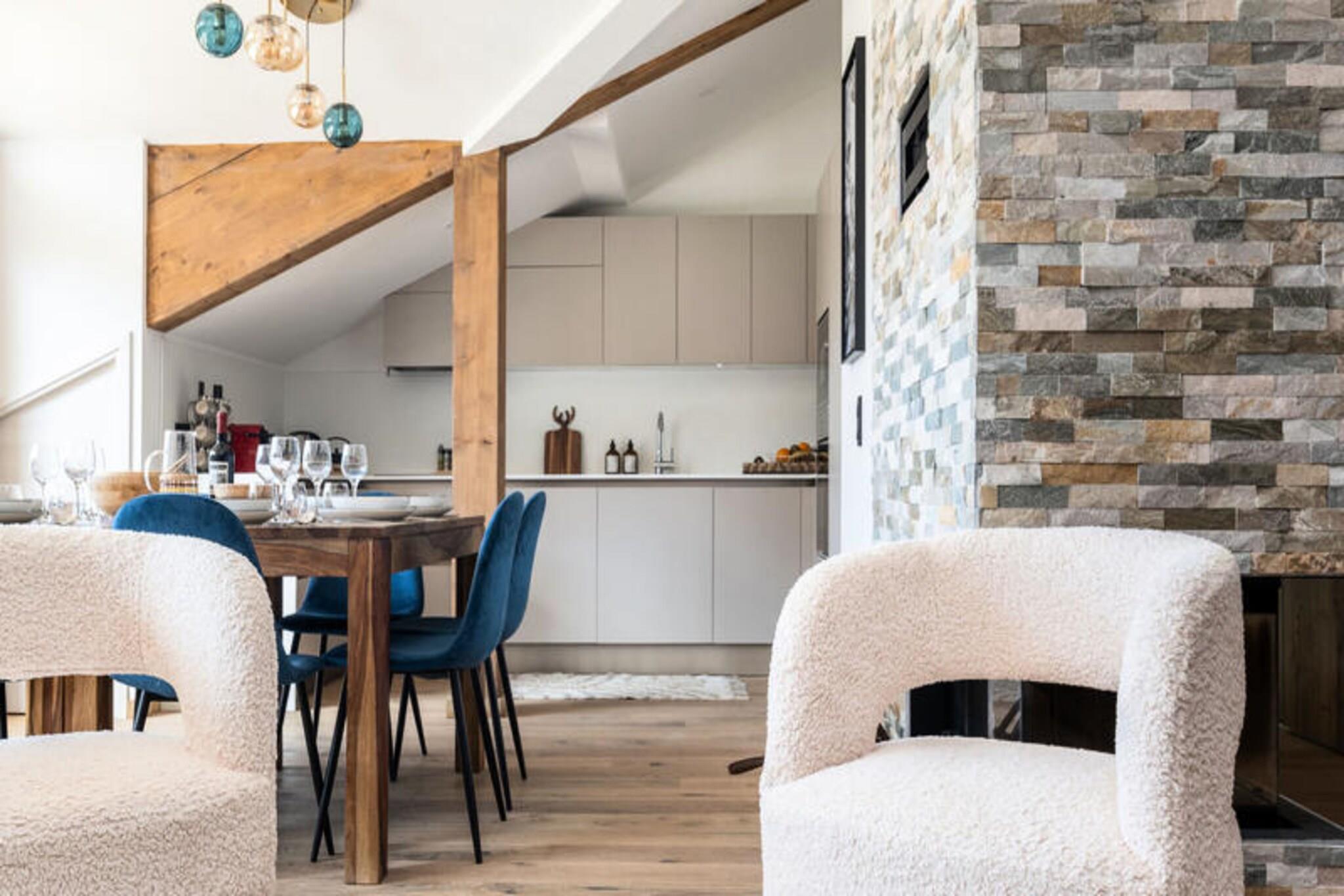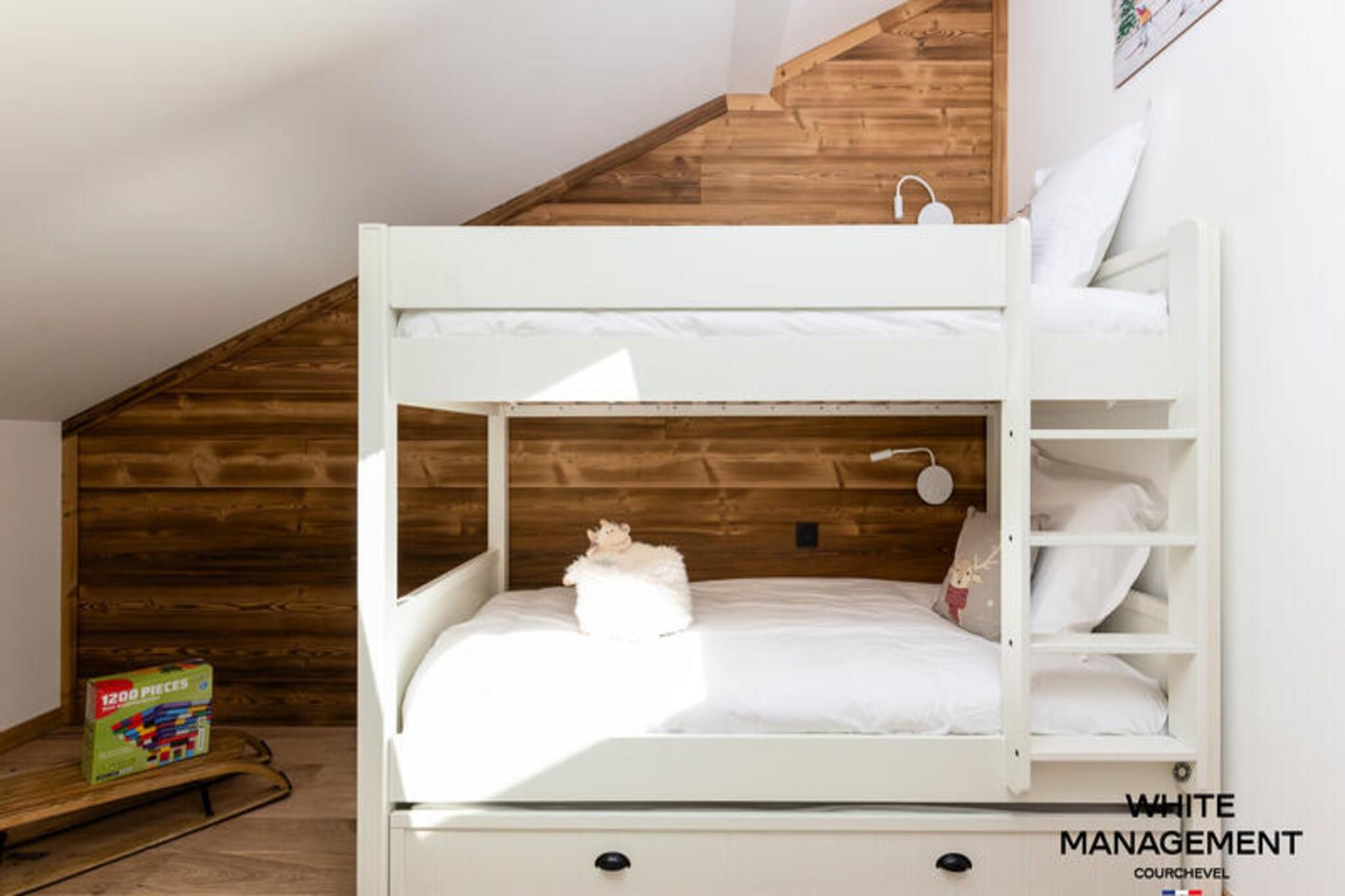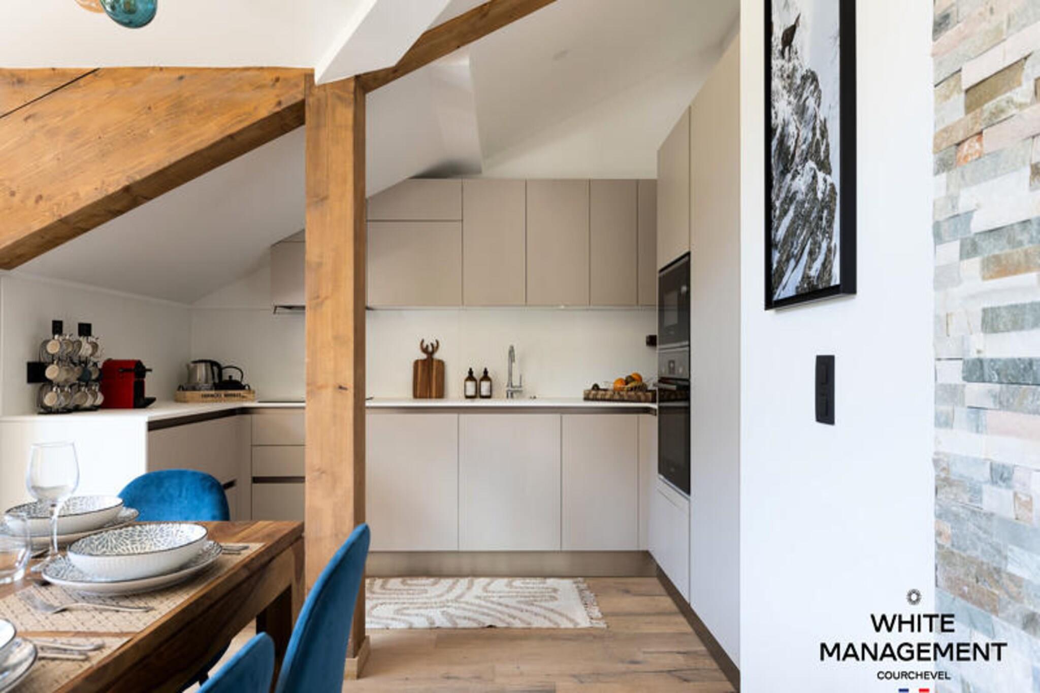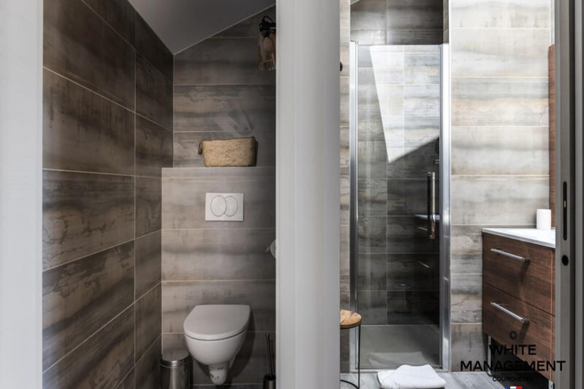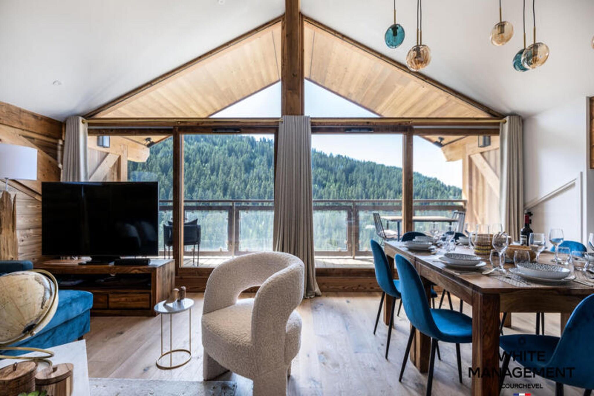 Denne fantastiske 130 m² penthouse, beliggende på 4. og øverste etage i en nyrenoveret bolig, byder på enestående opholdsrum, der er ideelle til et luksuriøst tilflugtssted i bjergene. Penthouse-lejligheden kan rumme op til 8 gæster og har en rummelig stue med en brændeovn, et eksklusivt åbent køkken og en spiseplads. Ejendommen inkluderer udstyr af høj kvalitet, en privat garage og sengetøj og håndklæder for ultimativ komfort. Designet understreger varme og sofistikering, hvilket skaber den perfekte stemning for familie eller venner at slappe af. Beliggende kun 30 meter fra foden af ??Hellebore-residensen, med adgang til ski-in/ski-out via den nærliggende "Petit Moriond"-gondol, er denne penthouse perfekt placeret for skientusiaster. Ejendommen ligger tæt på hjertet af Courchevel Moriond, med nærliggende butikker og caféer, der tilbyder en række lokale delikatesser og faciliteter. Den naturskønne udsigt over dalen og de omkringliggende bjerge skaber ideelle rammer for både vintersport og fredelig afslapning. Penthousens opholdsstue er designet til komfort, med en central pejs, et åbent køkken udstyret med moderne apparater og en balkon, der kan prale af en betagende udsigt over bjergene. Et brusekabine og velholdte faciliteter sikrer et afslappende ophold. Andre tjenester inkluderer levering af morgenmad og daglig rengøring for at sikre, at dit ophold er problemfrit og behageligt.