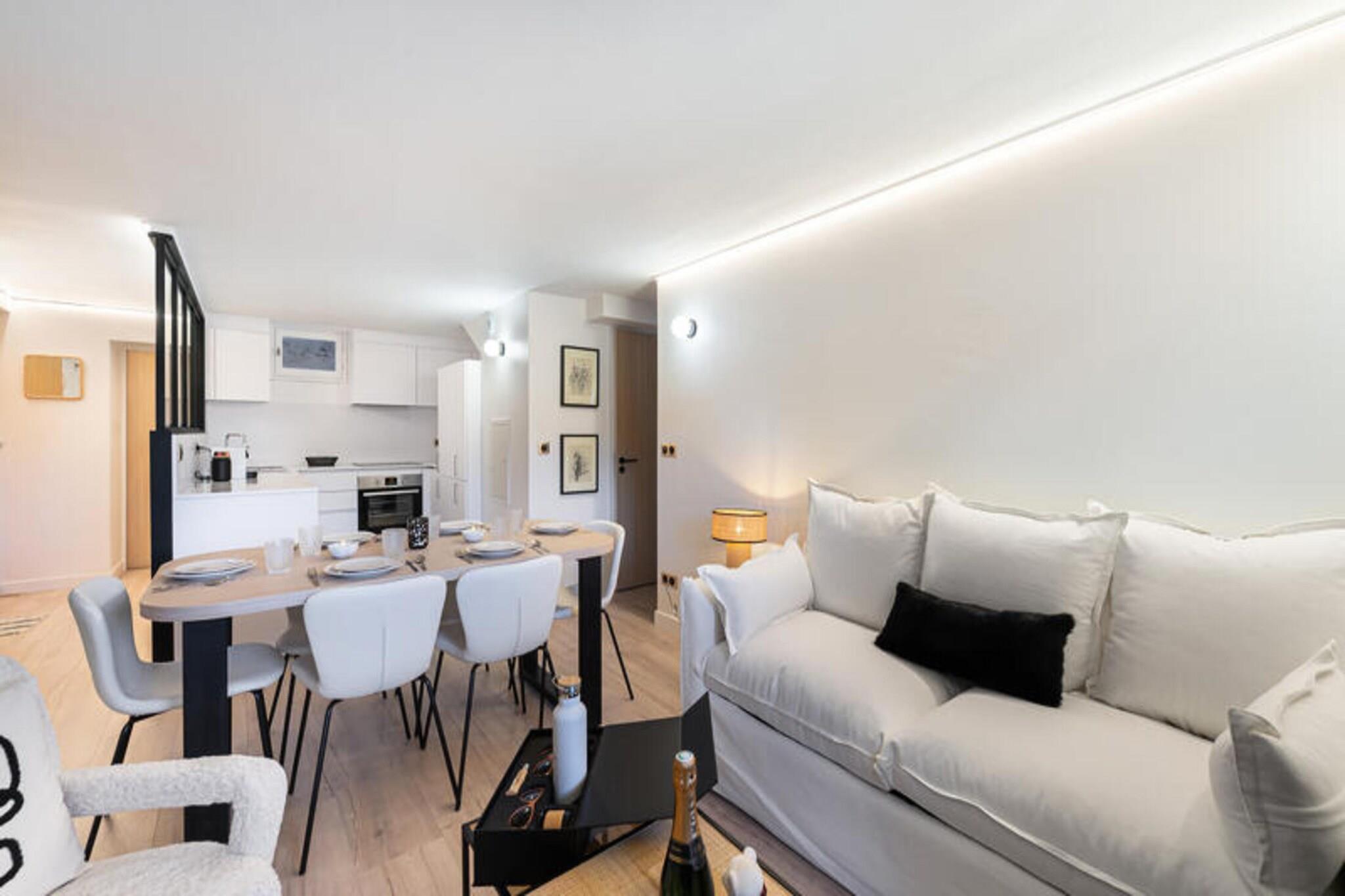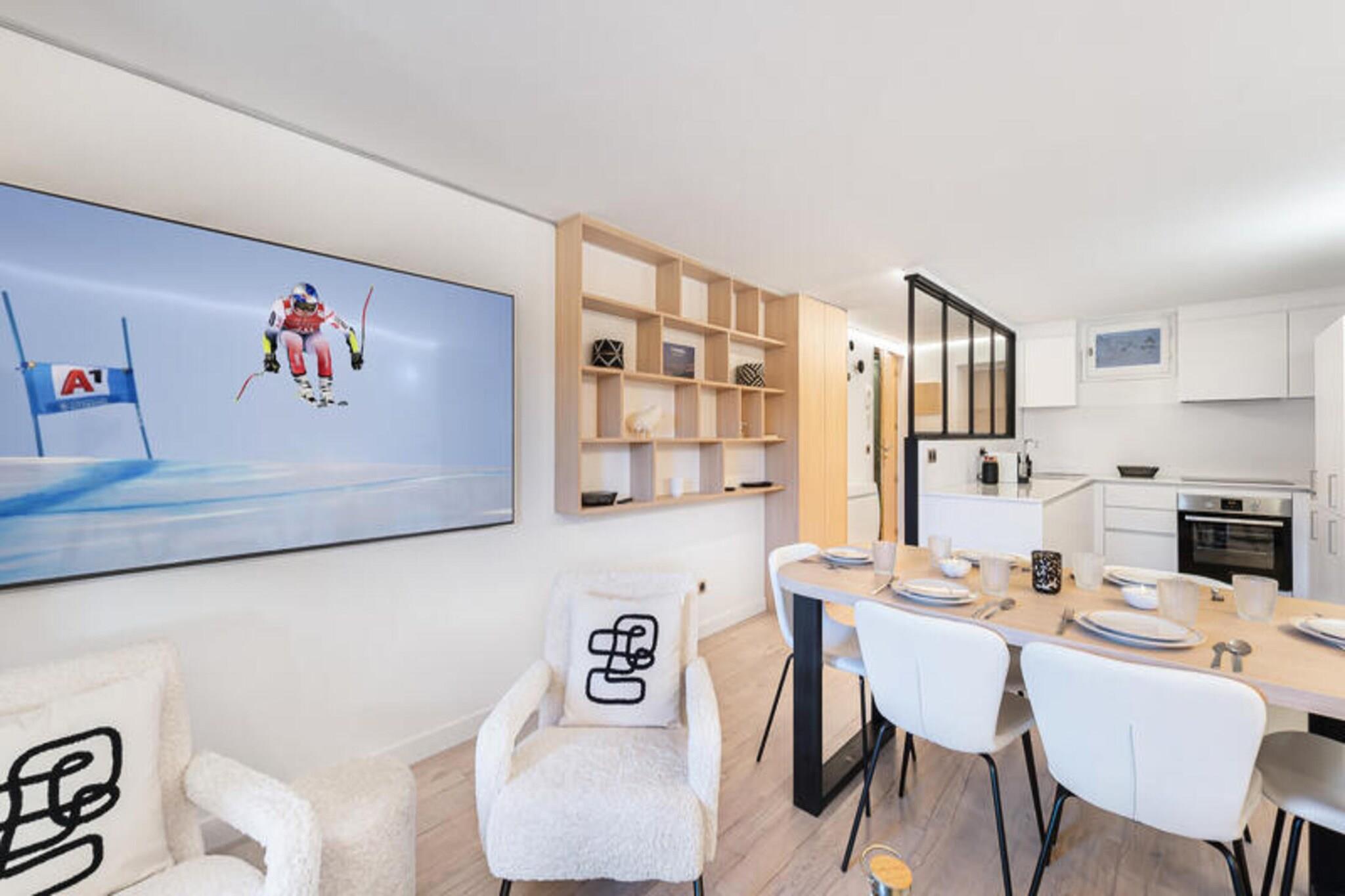 Denne rummelige lejlighed på 56 m² kan rumme op til 4 voksne og 2 børn og tilbyder et hyggeligt tilflugtssted i Courchevel 1850. Lejligheden indeholder en stue/spisestue med balkon, et fuldt udstyret åbent køkken og et soveværelse med dobbeltseng med en-suite bruser værelse og altan. Kabinens soveværelse, velegnet til børn, har en køjeseng (190x90cm) og en mindre køjeseng (170x90cm), sammen med et en-suite brusebad og toilet. Der er også separate toiletter og et skiskab. Kæledyr er ikke tilladt, hvilket sikrer et roligt ophold. Beliggende ved snefronten tilbyder denne lejlighed hurtig adgang til flere skilifter, herunder Verdons, Chenus, Jardin Alpin og Loz, alle kun få skridt væk. Erfarne skiløbere vil sætte pris på nærheden til Emile Allais stadion, Col de la Lauze og Col de Saulire, der tilbyder adgang til nogle af de bedste pister i området. Derudover ligger lejligheden tæt på en række restauranter, caféer og butikker, hvilket giver masser af muligheder for spisning og shopping i resortets centrum. Lejligheden er veludstyret med et fuldt funktionelt køkken, perfekt til at tilberede måltider under dit ophold. Badeværelset inkluderer vigtige produkter, og lejligheden tilbyder sengetøj (lagner, håndklæder) med opredte senge ved ankomsten. Slutrengøring er inkluderet, eksklusive køkkenområdet, så du kan slappe af og nyde din ferie uden besvær.