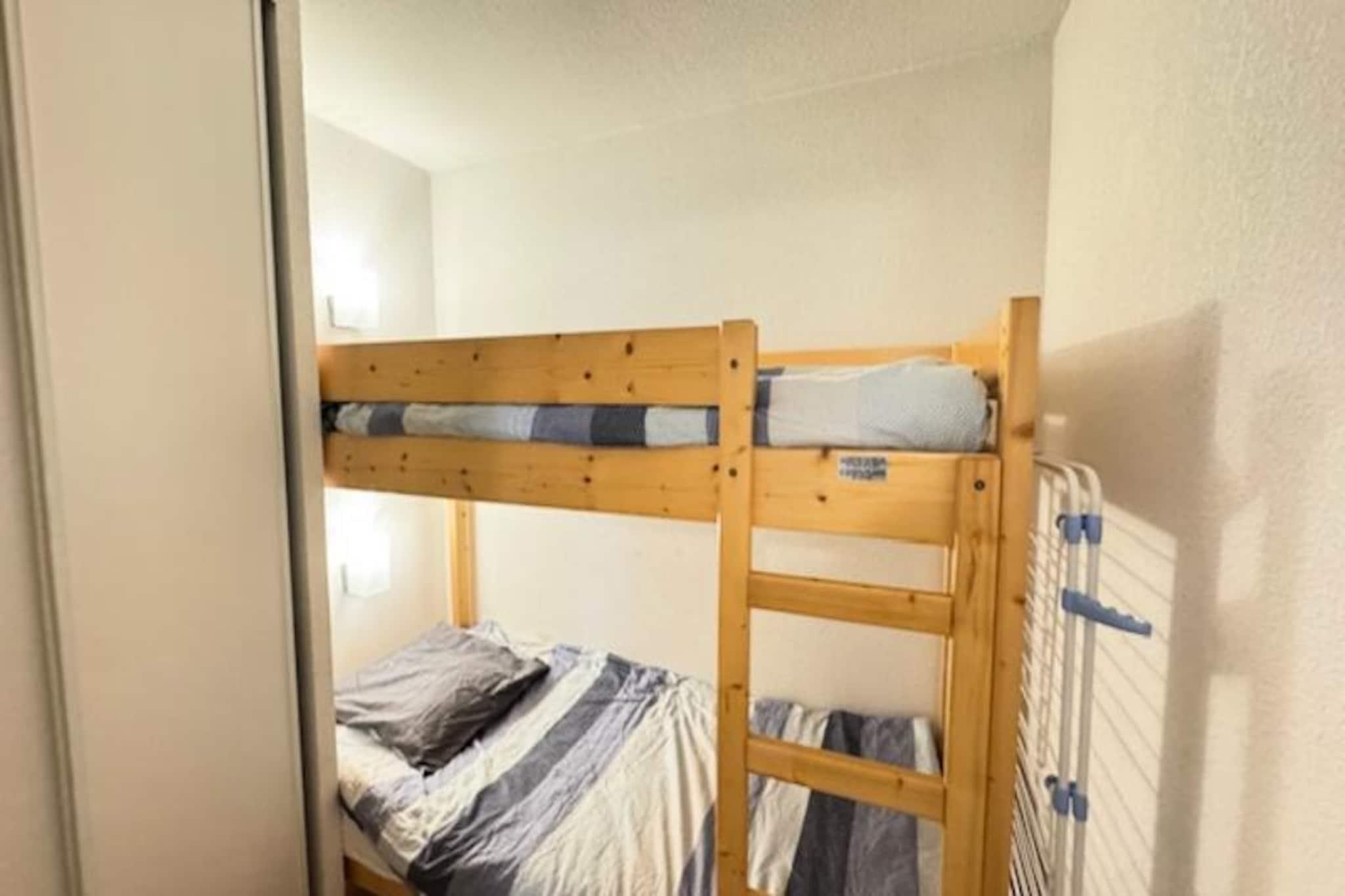 I hjertet af det charmerende Serre Chevalier 1350 – Chantemerle-resort tilbyder denne dejlige lejlighed i stueetagen en perfekt blanding af komfort og bekvemmelighed til din bjergferie. Forestil dig at vågne op til frisk alpeluft og træde direkte ud i haven fra dit hyggelige tilflugtssted, omgivet af Saint-Chaffreys betagende natur. Uanset om du besøger stedet for vintersport eller sommervandreture, placerer denne bolig dig kun 400 meter fra skilifte, skiskoler og lokale butikker, hvilket sikrer nem adgang til alt, hvad du behøver for en uforglemmelig ferie. \n\nLejligheden er på 33 m² og er omhyggeligt designet til at rumme op til seks gæster. Den har en indbydende stue med en dobbelt sovesofa, et moderne tekøkken udstyret med opvaskemaskine, køleskab med fryser, keramisk kogeplade, mikrobølgeovn og essentielle apparater som kaffemaskine og brødrister. To komfortable soveværelser har en dobbeltseng og køjesenge, hvilket gør den ideel til familier eller små grupper. Et privat skirum og en overdækket parkeringsplads bidrager til bekvemmeligheden, mens adgangen til haven skaber et roligt sted at slappe af efter en dag med eventyr. \n\nUd over boligen lokker Serre Chevalier-dalen med sine fantastiske landskaber og aktiviteter. Om vinteren kan du nyde skiløb og snowboarding i verdensklasse, mens sommeren forvandler området til et paradis for vandreture, cykling og udforskning af naturstier. Landsbyens atmosfære er livlig, men rolig, med hyggelige restauranter og butikker kun en kort gåtur væk. \n\nUanset om du søger spændende alpine sportsgrene eller fredelige øjeblikke omgivet af naturen, er denne lejlighed din port til skønheden og spændingen i Serre Chevalier. Lad din bil blive hjemme, indånd bjergluften og skab varige minder i disse idylliske omgivelser.