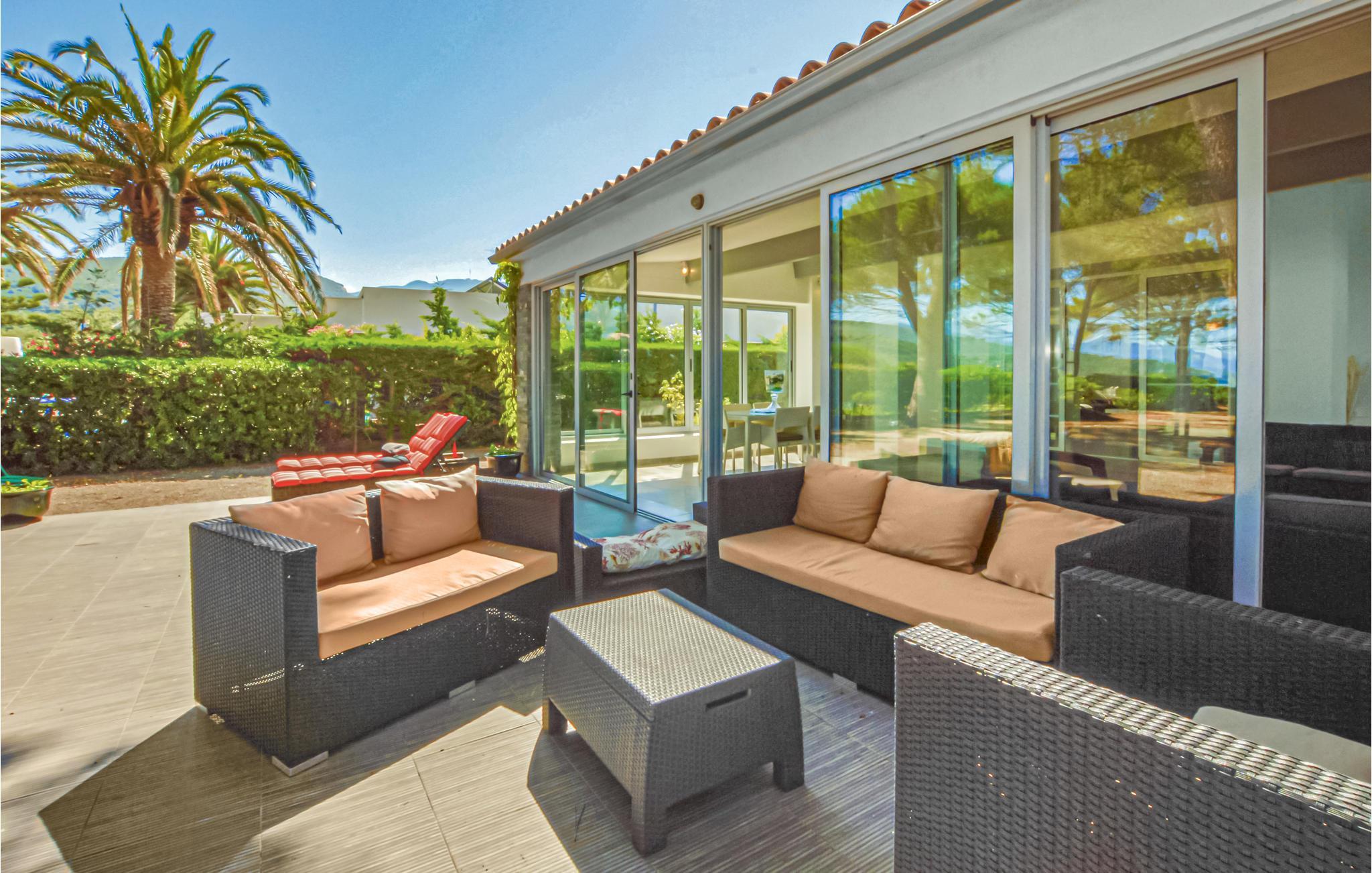 Huset ligger i Saint-Florent og fra grunden er der egen privat udgang til stranden og havet. Ud over masser af plads og komfortabel indretning, er der også en fantastisk udsigt over havet og Saint-Florentbugten. På den store grund er der god plads til at slappe af, så hver kan finde et helt privat yndlingshjørne. Boligen er et rigtigt paradis, og i poolen kan I søge kølighed når dagene bliver rigtig varme. I omgivelserne er der utallige udflugtsmål og aktivitetsmuligheder. Nyd Saint-Florent med sine skønne sandstrande og se jer om i Bastia.