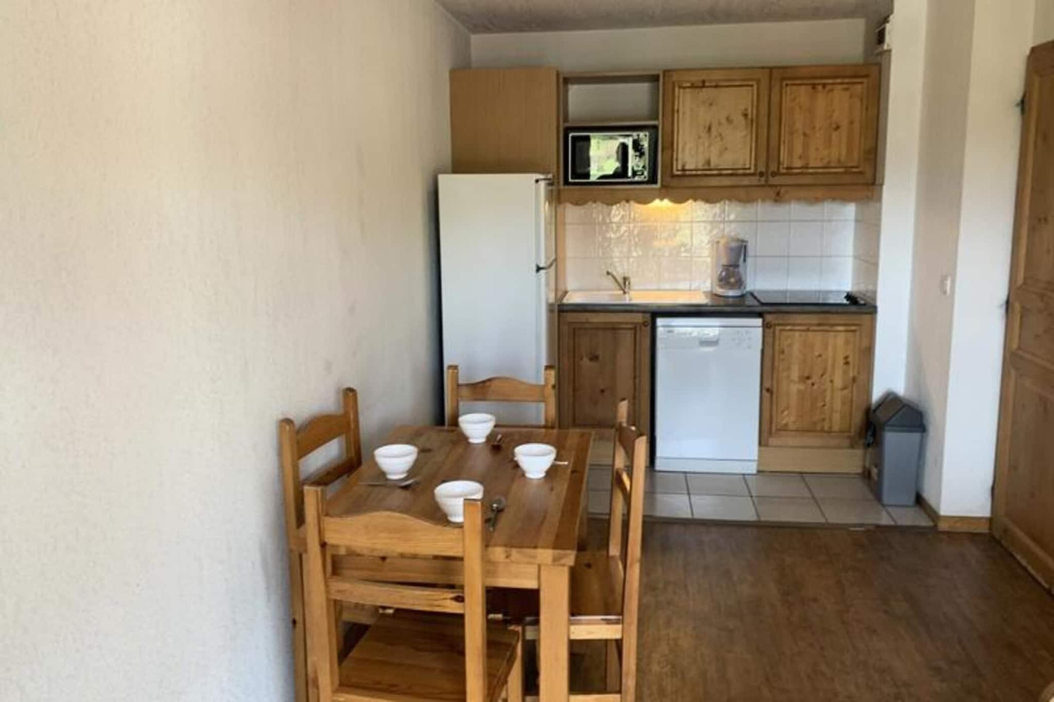 Denne hyggelige lejlighed på 31 m² er perfekt til familier eller små grupper, med plads til op til 4 personer med 2 enkeltsenge i soveværelset og en sovesofa i stuen. Ejendommen er kæledyrsvenlig med et ekstra gebyr for kæledyr, så du kan tage dine lodne venner med. For din komfort er der puder, dyner, tæpper og køkkenudstyr, selvom husholdningsprodukter ikke er inkluderet. Yderligere tjenester, såsom leje af sengetøj og daglig rengøring, er tilgængelige mod et tillægsgebyr. Denne lejlighed ligger kun 50 meter fra Saint-Gervais-gondolen og tilbyder direkte adgang til skiområdet Evasion Mont-Blanc, hvilket gør det ideelt for skientusiaster. Landsbyens centrum ligger 800 meter væk, hvor du vil finde butikker, caféer og restauranter at udforske. Et bageri og udlejningsbutikker er også i nærheden, hvilket gør dit ophold endnu mere bekvemt. Om sommeren kan du nyde den opvarmede udendørs swimmingpool, som er åben fra midten af ??juni til midten af ??september. Lejligheden har et veludstyret køkken med opvaskemaskine, keramisk kogeplade, mikroovn, køleskab, kaffemaskine, brødrister og kedel, perfekt til at tilberede måltider. Badeværelset har badekar og håndvask samt separat toilet for ekstra bekvemmelighed. Gæsterne har også adgang til et skiskab og den udendørs swimmingpool, som er tilgængelig i de varmere måneder.