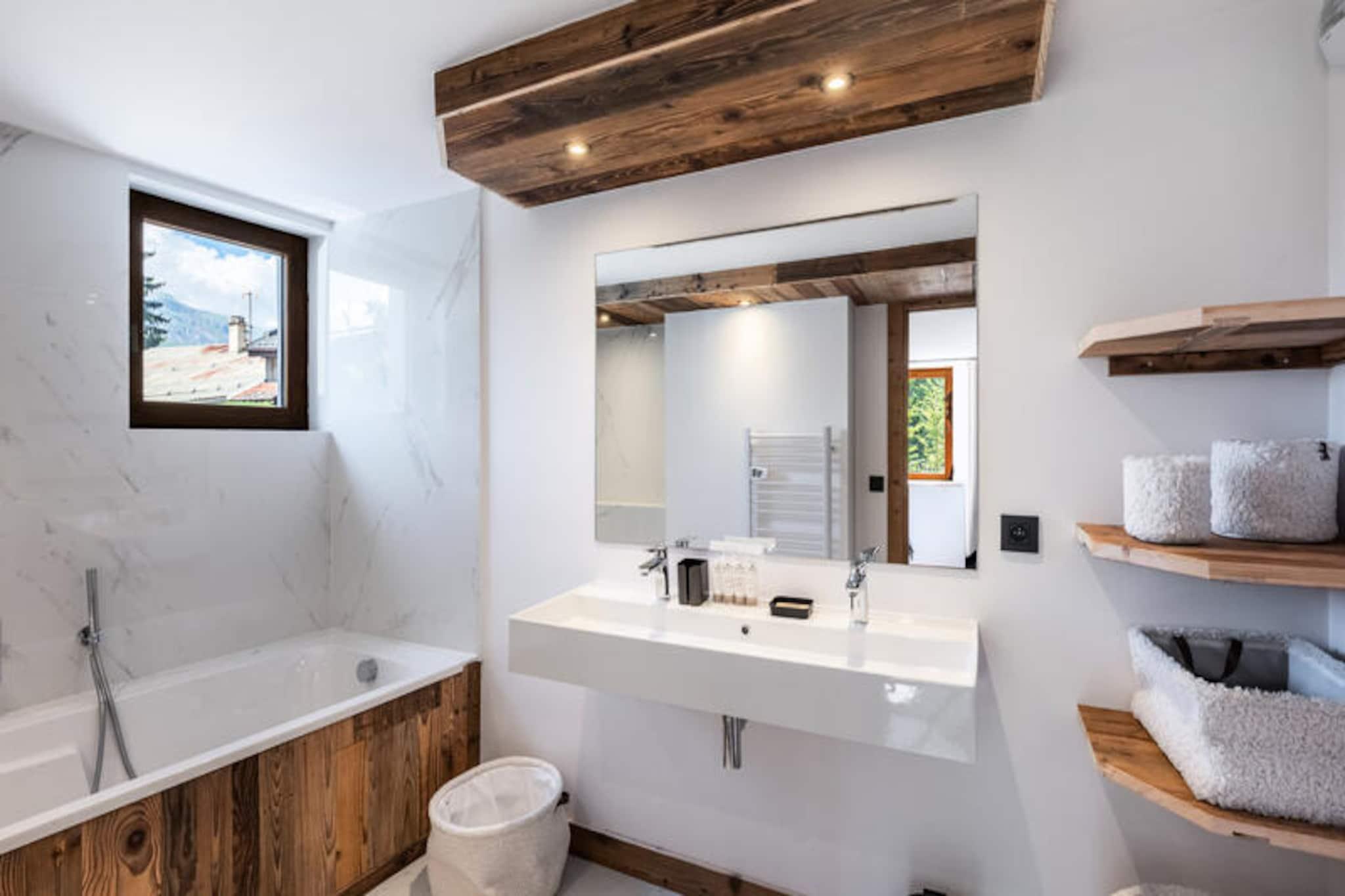 Denne smukt renoverede bondegård tilbyder et rummeligt tilflugtssted for op til 10 gæster, hvilket gør det perfekt til familier eller vennegrupper. Med en sovesal med to køjesenge (90x200 cm), to soveværelser med dobbeltsenge (160x200 cm) og et luksuriøst soveværelse (180x200 cm), sikrer ejendommen et behageligt ophold for alle. Tre moderne badeværelser, herunder to en-suite, tilføjer til bekvemmeligheden. Gæsterne kan slappe af i den hyggelige tv-stue eller afslapningsområde på mezzaninen, mens balkonen har en betagende udsigt over bjergene. Denne ikke-ryger ejendom er udstyret med Wi-Fi, tilbyder to parkeringspladser (en i en lukket garage), og tillader ikke kæledyr. Beliggende nær hjertet af Saint-Gervais-Les-Bains, er stuehuset ideelt placeret til vinter- og sommeraktiviteter. Saint-Gervais skilifter er mindre end 5 minutter væk via en gratis shuttle, der stopper kun 200 meter fra ejendommen. Besøgende kan udforske den charmerende bymidte med dens maleriske caféer, lokale markeder og en række butikker. Området byder også på muligheder for vandreture, cykling og nyde det fantastiske alpine landskab. Ejendommen kan prale af et fuldt udstyret køkken med moderne apparater, en rummelig spiseplads og en afslappende lounge, ideel til socialt samvær efter en dag på pisterne. Yderligere faciliteter omfatter sengetøj, håndklæder og toiletartikler, med opredte senge ved ankomsten. Rengøring er inkluderet, og et uafhængigt vaskeområde sikrer ekstra bekvemmelighed.