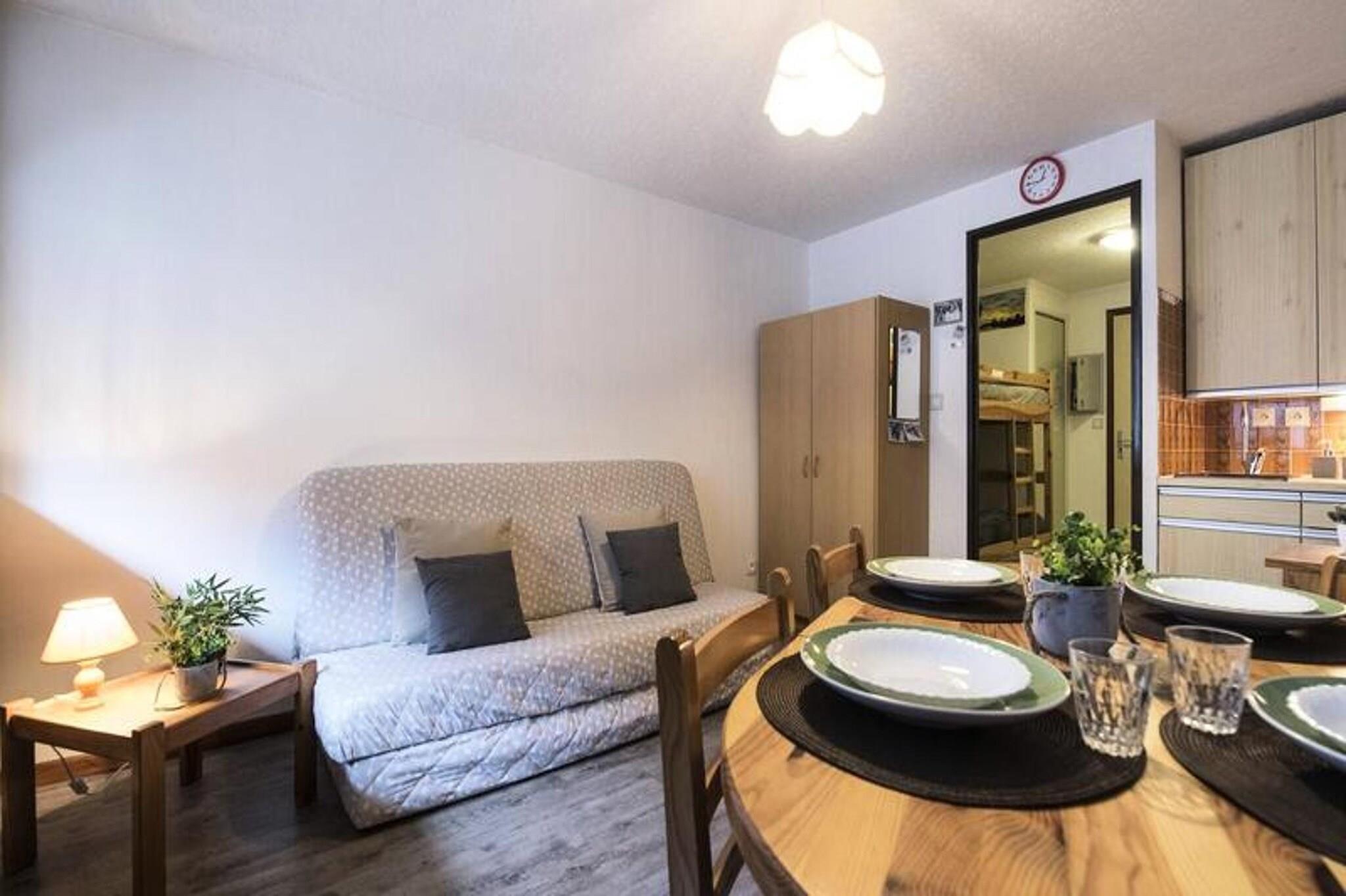 This cozy apartment for up to 6 guests offers a comfortable living space with a double bed, two single bunk beds, and a sofa bed. It is located on the 1st floor and features a south-facing balcony/terrace for a pleasant outdoor experience. The property is pet-free, ensuring a clean and enjoyable stay. Additional services such as cleaning packages, sheet rentals, and towel kits are available for added convenience. Conveniently located near the center of Saint Lary Soulan, the apartment offers easy access to shops, cafes, and local amenities. A free shuttle service at the foot of the residence provides quick and easy access to the cable car and gondola, making it easy to reach the Pla d'Adet slopes. Whether you're here to explore the town or enjoy mountain activities, this location offers everything you need for a relaxing stay. The apartment features a well-equipped kitchenette open to the living room, where you can enjoy meals and unwind with a TV. The separate shower room and toilet add convenience and privacy to your stay. With private parking and a ski locker available, your experience is enhanced with practical amenities to help you enjoy your time in the mountains.