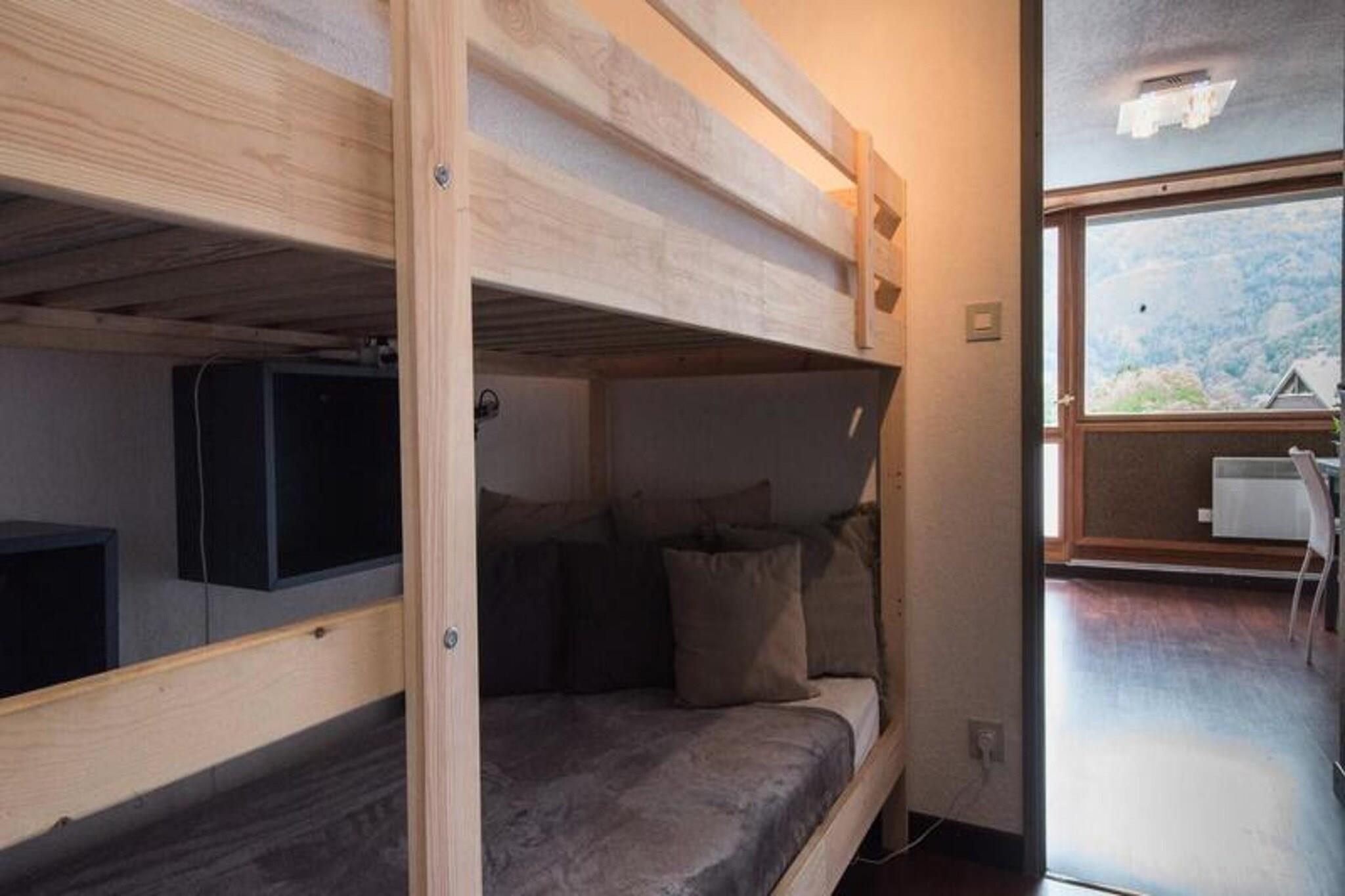 This charming apartment is perfect for up to 4 guests, offering a cozy living space with a double sofa bed and a separate bedroom with a double bed. The apartment also features two bunk beds in the hallway, ideal for children, and a bathroom with separate toilets. A ski locker is available for your convenience, and the property is pet-friendly with an additional fee. Conveniently located near the heart of Saint Lary Soulan, the apartment is close to shops, cafes, and restaurants, providing easy access to local amenities. A shuttle stop in front of the residence offers quick access to the cable car or gondola, making it simple to reach the Pla d'Adet slopes. The apartment's central location ensures that everything you need is just a short walk away. The apartment is equipped with a kitchenette, featuring a mini-oven, microwave, and stovetop, perfect for preparing meals during your stay. A loggia provides a lovely outdoor space to relax, and the apartment also includes a bathroom with separate toilets. Private parking is available, making it easy to come and go as you please. WiFi and additional services, like towel rentals and cleaning, can be arranged for your convenience.