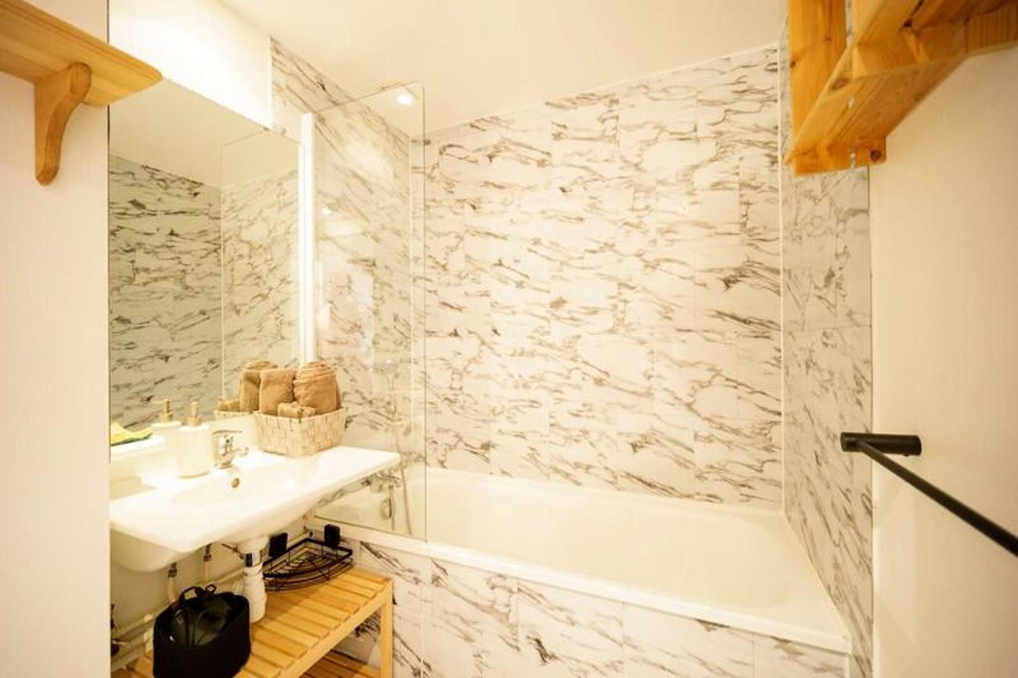 Denne charmerende lejlighed, ideel til op til 4 personer, er beliggende i en nyrenoveret bolig, der tilbyder en hyggelig og raffineret atmosfære. Det har en komfortabel stue med en sovesofa til 2 samt en mezzanin med en dobbeltseng (140 cm). Rummet er perfekt til at slappe af efter en dag med udendørs aktiviteter. Lejligheden tillader ikke kæledyr, hvilket sikrer et roligt og fredeligt miljø for alle gæster. Ejendommen tilbyder også praktiske faciliteter såsom udendørs parkering, et skiskab og et cykelrum. Boligen er ideelt beliggende i det termiske distrikt, hvilket giver nem adgang til de termiske bade og Sensoria, hvilket gør det perfekt til afslapning. Gondolen er også i nærheden, hvilket giver dig hurtig adgang til pisterne for skiløb og snowboarding. Derudover er området omgivet af grønne områder, der tilbyder et fredeligt tilflugtssted. Du finder lokale caféer, markeder og butikker inden for gåafstand, så du kan udforske Saint Larys charme og dens omkringliggende attraktioner. Lejligheden har et veludstyret tekøkken, hvilket gør det nemt at tilberede dine egne måltider under dit ophold. Badeværelset indeholder håndvask og toilet, og der er også vaskerum i kælderen til din bekvemmelighed. For dem, der har brug for internetadgang, tilbyder boligen gratis Wi-Fi i fællesområderne, mens en Wi-Fi-boks kan lejes til brug inde i lejligheden. Valgfrie tjenester såsom et rengøringsgebyr og håndklædesæt er tilgængelige for at gøre dit ophold endnu mere behageligt.