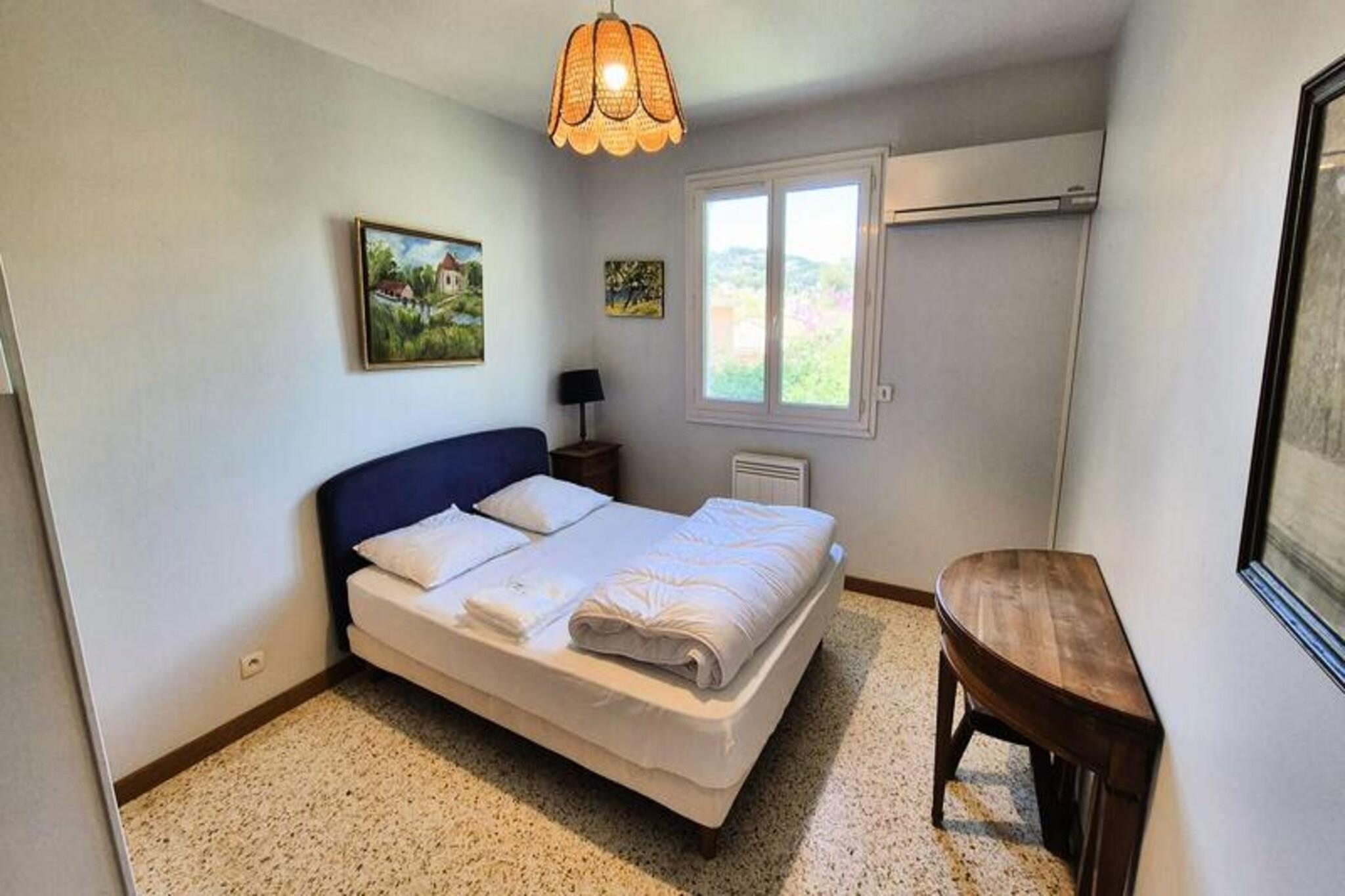 I den maleriske landsby Saint Mandrier inviterer denne charmerende villa i ét plan dig til at opleve det bedste af kystlivet i det sydlige Frankrig. Omgivet af en frodig have på 500 m² og med en rummelig terrasse, er det de perfekte rammer for rolige morgener eller livlige middage under middelhavssolen. Uanset om du søger afslapning eller eventyr, tilbyder denne ejendom en rolig tilflugtssted kun få skridt fra landsbyens pulserende hjerte. \n\nIndenfor kan villaen prale af tre hyggelige soveværelser, hvoraf det ene er udstyret med aircondition for ekstra komfort, et moderne badeværelse og en lys, åben stue, der problemfrit forbinder til et fuldt udstyret køkken. Den gennemtænkte planløsning sikrer en indbydende atmosfære for familier eller vennegrupper, mens udendørsområdet tilbyder et privat tilflugtssted med sin skyggefulde terrasse og have prydet med træer. Det er et ideelt sted at slappe af, nyde en afslappet frokost eller nippe til et glas lokal vin, mens du nyder den fredelige atmosfære. \n\nVillaens førsteklasses beliggenhed giver dig mulighed for nemt at udforske de nærliggende strande, havnen og charmerende lokale restauranter og butikker. Kun en kort gåtur væk tilbyder færgeterminalen nem adgang til Toulon, hvilket gør det nemt at opdage flere af regionens fantastiske kystlinjer og kulturelle attraktioner. Uanset om du vandrer gennem Saint Mandriers hyggelige gader eller begiver dig ud på et eventyr ved havet, er alt hvad du behøver inden for rækkevidde. \n\nDenne ejendom kombinerer komfort, bekvemmelighed og autentisk provencalsk charme, hvilket gør den til et uforglemmeligt valg til din næste ferie. Med sengelinned, håndklæder og valgfri slutrengøring kan du slappe af og fokusere på at skabe varige minder i denne idylliske middelhavsparadis.