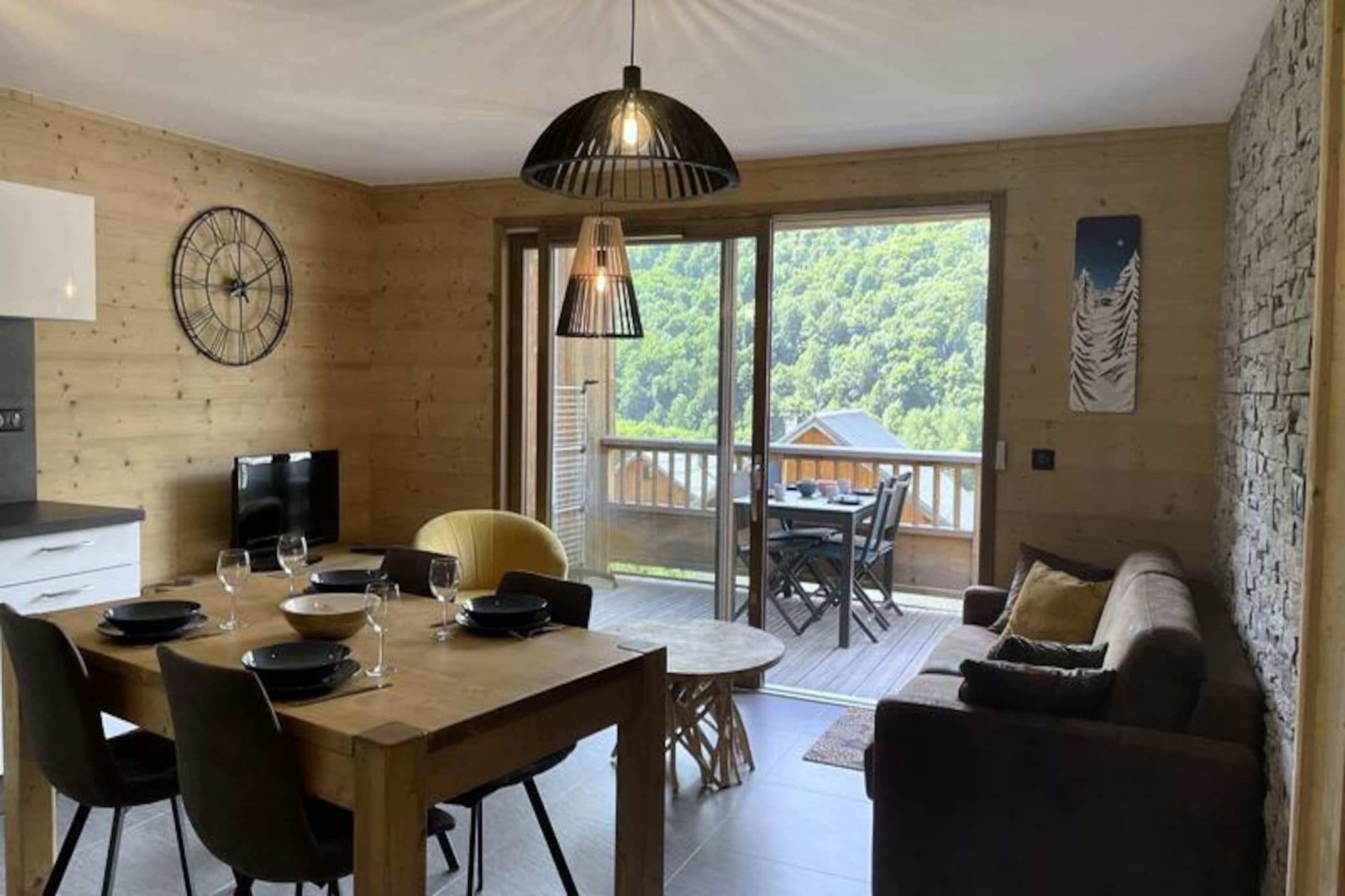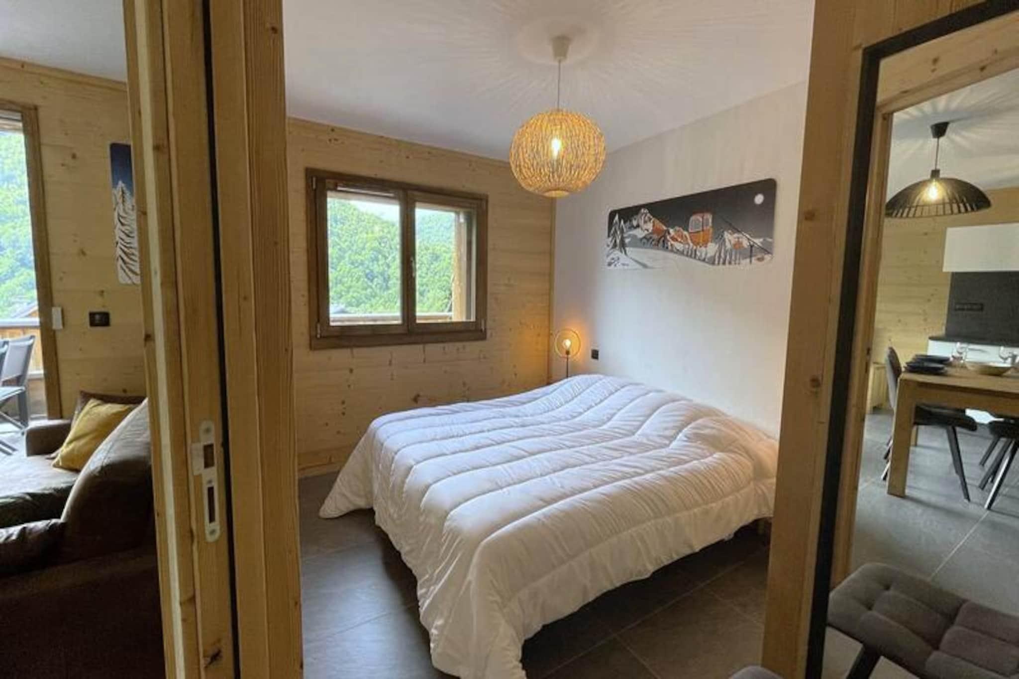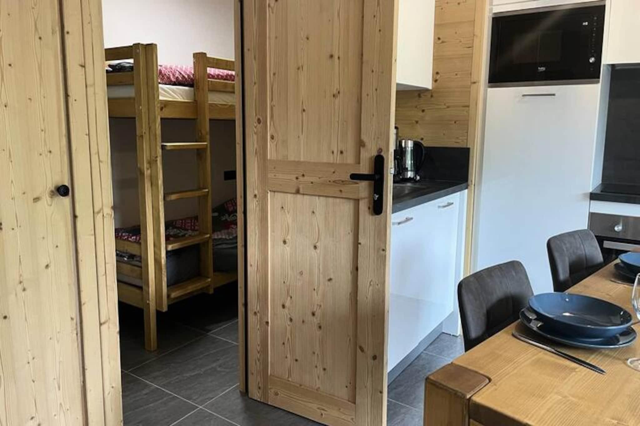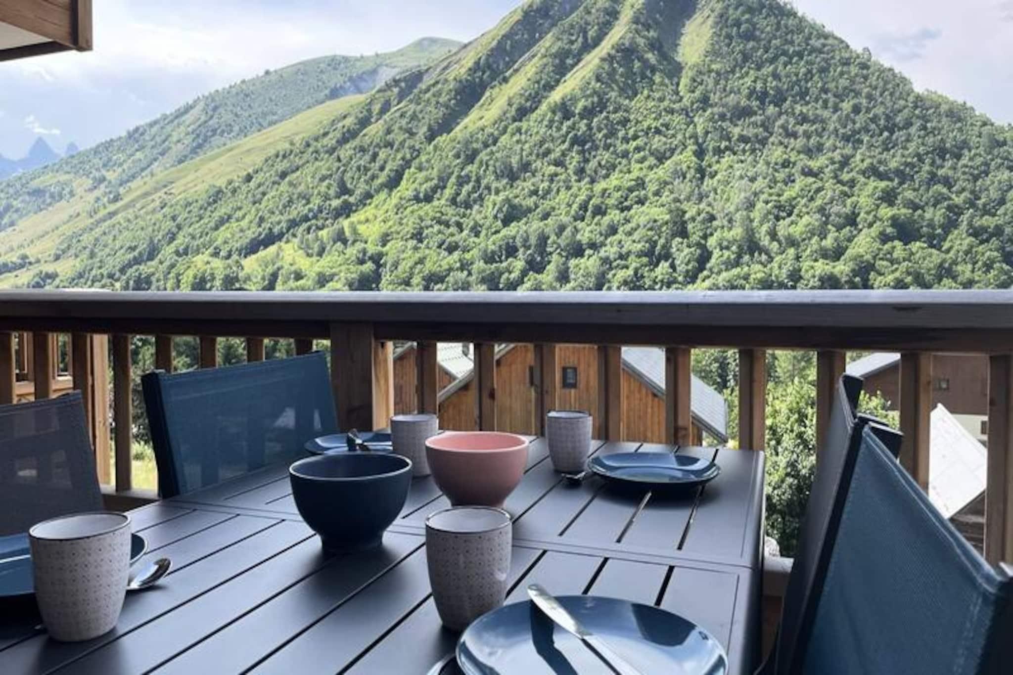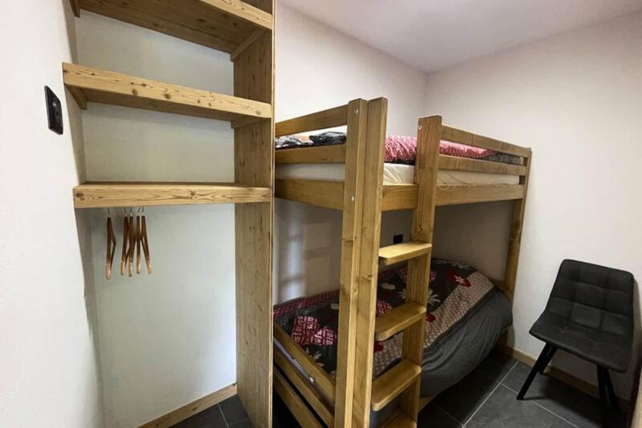I hjertet af den charmerende landsby Saint-Sorlin-d'Arves tilbyder denne dejlige lejlighed en rolig oase med betagende udsigt over Aiguilles d'Arves. Beliggende langs den naturskønne vej til Col de la Croix de Fer, er boligen perfekt placeret til både afslapning og eventyr. Den gratis shuttle til pisterne stopper kun 100 meter væk, hvilket sikrer problemfri adgang til regionens berømte skiområder. Uanset om du besøger om vinteren eller sommeren, er dette din port til de franske alpers skønhed. \n\nTræd indenfor og oplev et varmt og indbydende rum designet til komfort og bekvemmelighed. Den sydvendte opholdsstue er badet i naturligt lys og åbner ud til en møbleret terrasse, hvor du kan nyde den majestætiske udsigt over bjergene. Lejligheden har en hyggelig stue med tv, spiseplads og et fuldt udstyret køkken til at tilberede lækre måltider. Det største soveværelse har en luksuriøs queensize-seng, mens en sovealkove med en køjeseng giver ekstra plads til to. Et moderne brusebad med toilet fuldender planløsningen. For din bekvemmelighed er sengelinned og håndklæder inkluderet, og dine senge vil være redt ved ankomst. Boligen tilbyder også en indendørs parkeringsplads og et skirum med støvletørrer, hvilket sikrer et problemfrit ophold.\n\nUden for lejligheden inviterer landsbyen Saint-Sorlin-d'Arves dig til at udforske dens charmerende gader, lokale butikker og traditionelle restauranter. Friluftsentusiaster vil finde uendelige muligheder for skiløb, vandreture og cykling, mens de fantastiske landskaber i Aiguilles d'Arves og Col de la Croix de Fer danner en malerisk baggrund for dine eventyr. Med skiliftkort leveret direkte til dig og eksklusive rabatter på leje af udstyr, kunne din alpine ferie ikke være nemmere.\n\nUanset om du søger spændende dage på pisterne eller fredelige aftener under stjernerne, tilbyder denne lejlighed den perfekte blanding af komfort, bekvemmelighed og naturlig skønhed. Book nu og skab uforglemmelige minder i hjertet af Alperne.