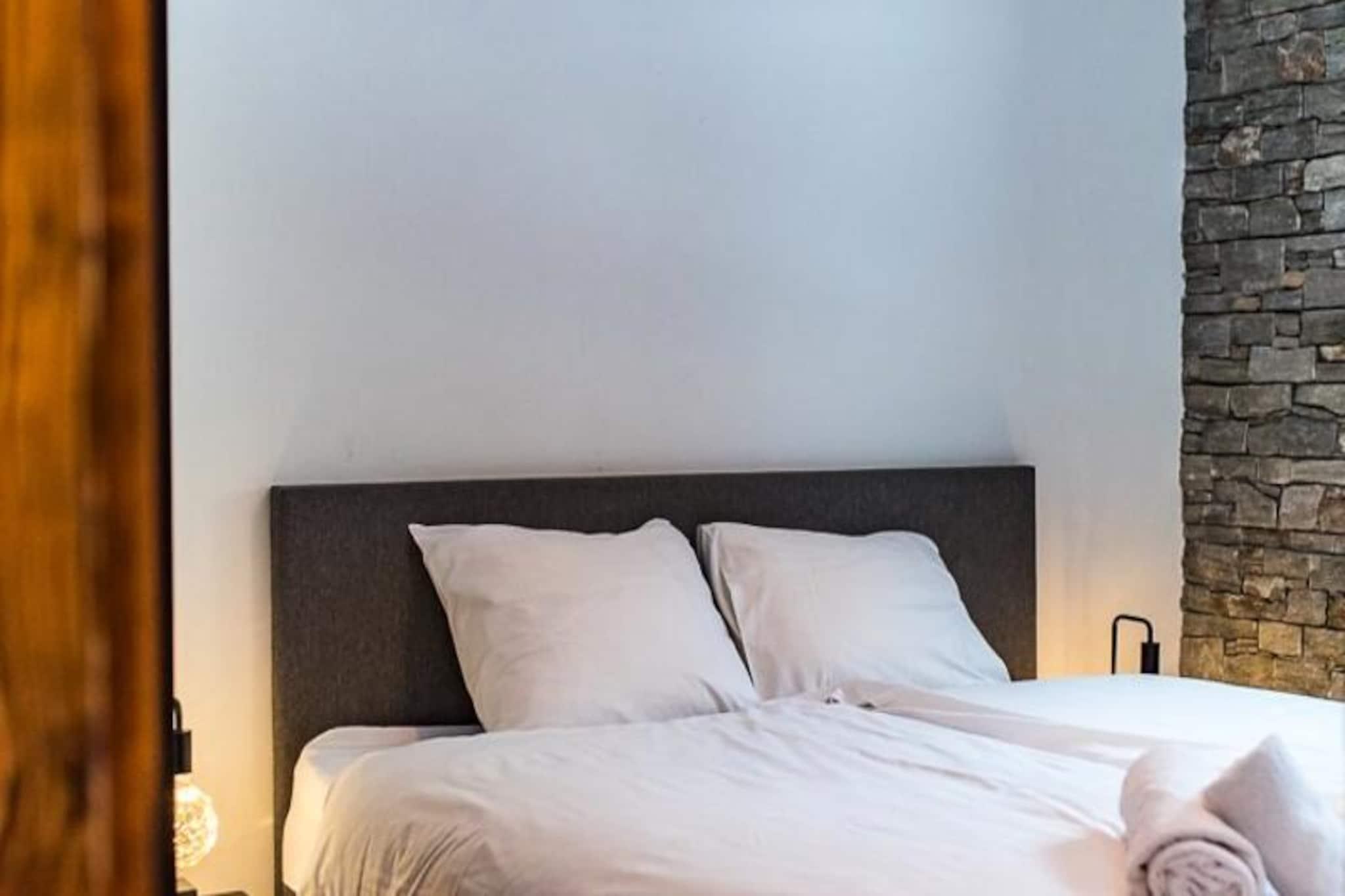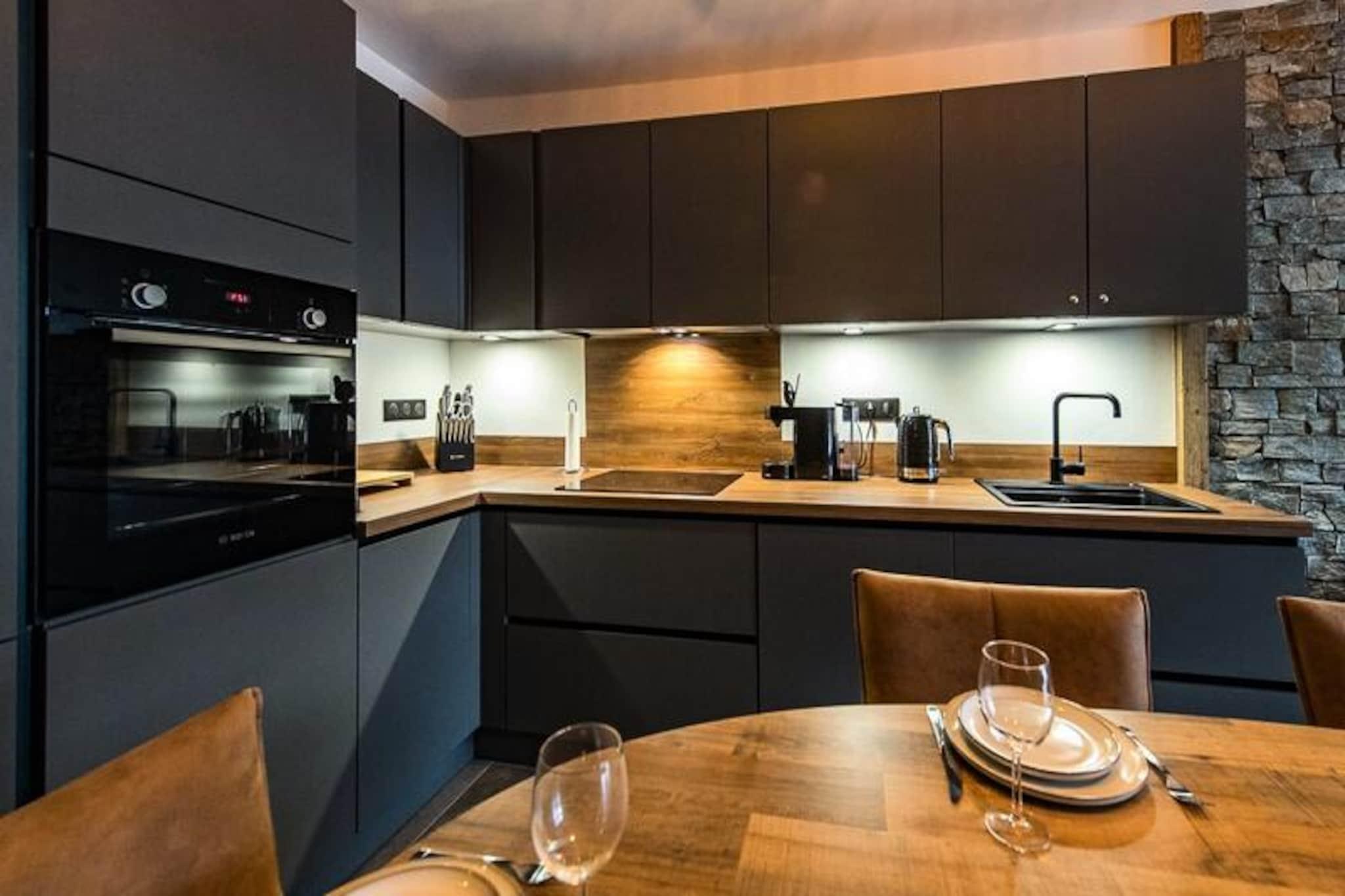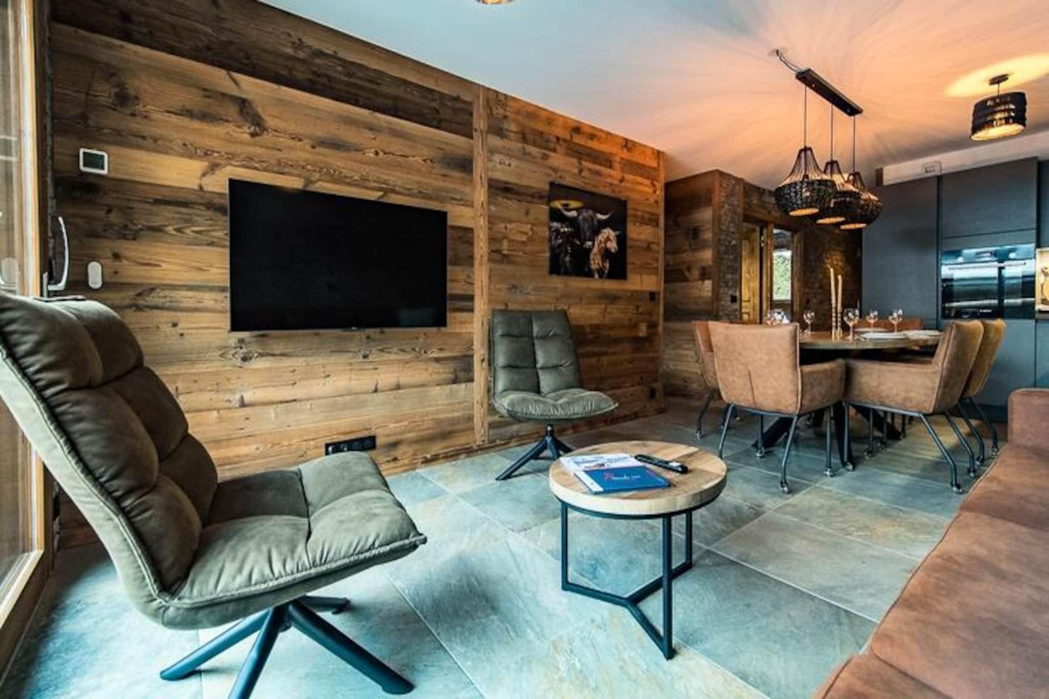 I det maleriske hjerte af Plan du Moulin tilbyder denne fantastiske lejlighed en perfekt blanding af moderne komfort og alpin charme, kun 300 meter fra begynderpisterne og 400 meter fra Plan du Moulin Express-stoleliften. Forestil dig at vågne op til den friske bjergluft, træde ud på din private 36 m² sydvendte terrasse og nyde den betagende udsigt over de omkringliggende tinder badet i sollys. Denne lejlighed med to sider er et paradis for dem, der søger både ro og eventyr i de franske alper. Træd indenfor og oplev et smukt designet opholdsrum med varm indretning og møbler af høj kvalitet. Stuen, komplet med en hyggelig tv-stue og spiseplads, åbner ud til terrassen, hvilket skaber en problemfri inde-udendørs forbindelse. Det fuldt udstyrede køkken inviterer dig til at tilberede solide måltider efter en dag på pisterne. Lejligheden har to rummelige soveværelser med kingsize-senge, en sovealkove med en køjeseng (perfekt til børn over seks år) og et moderne badeværelse med dobbelt håndvask og bruser. Gennemtænkte detaljer som et skiskab med støvletørrer, to indendørs parkeringspladser og opredte senge ved ankomst sikrer et stressfrit ophold. Ud over lejligheden tilbyder landsbyen Plan du Moulin en charmerende alpin atmosfære med nem adgang til skilifter, lokale butikker og restauranter. Uanset om du står på ski om vinteren eller udforsker bjergstierne om sommeren, placerer denne beliggenhed dig i hjertet af begivenhederne. Derudover er din ferieplanlægning ubesværet med nedsatte priser på liftkort og leje af udstyr gennem Altitude 1750. Denne lejlighed er mere end bare et sted at bo – det er en port til uforglemmelige øjeblikke med familie og venner. Book nu, og lad magien i de franske alper skabe minder, der vil vare hele livet.