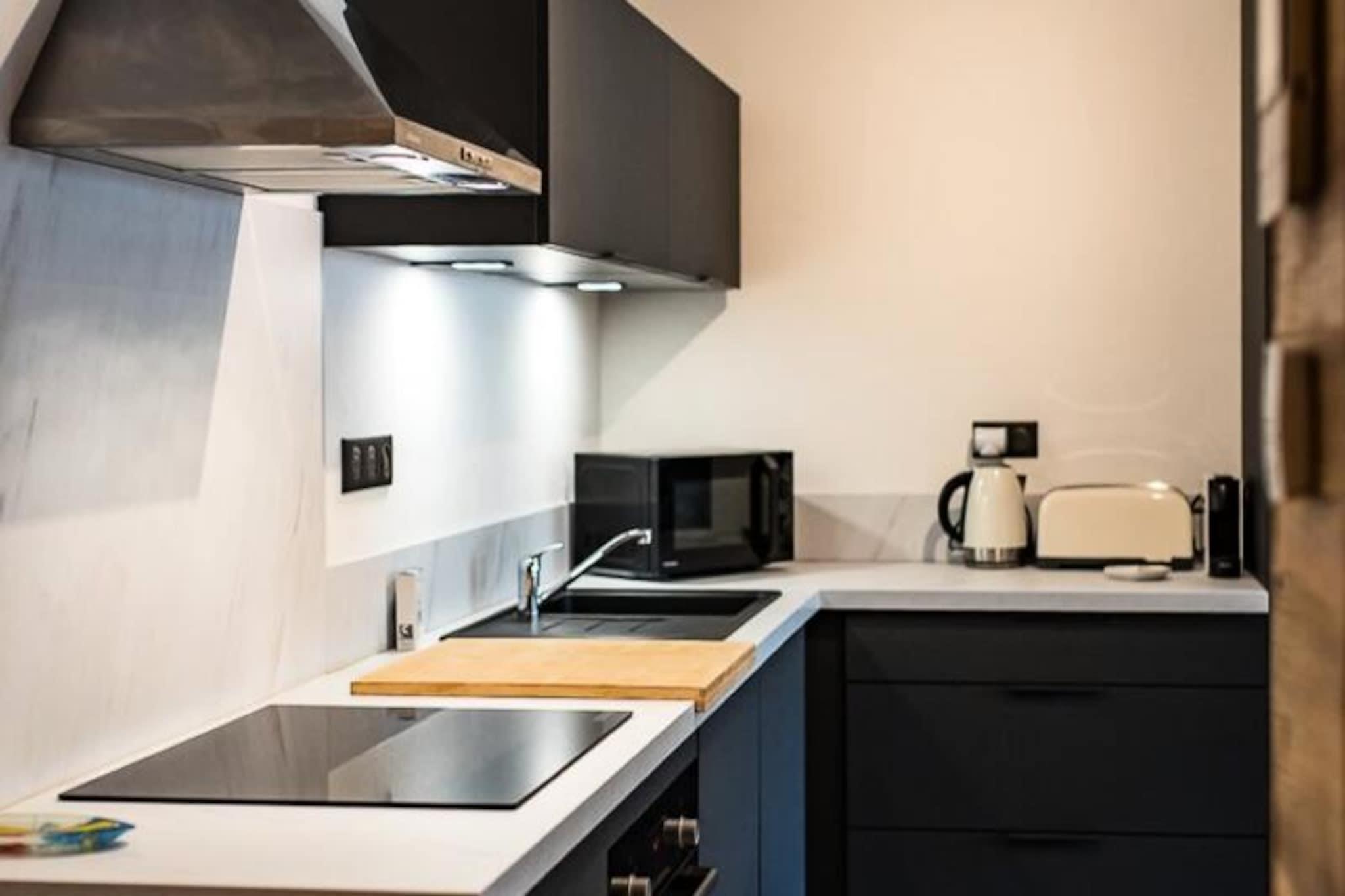 I hjertet af den charmerende landsby Plan du Moulin tilbyder denne dejlige alpine lejlighed den perfekte blanding af moderne komfort og traditionel bjergcharme. Kun 300 meter fra begynderpisterne og 400 meter fra Plan du Moulin Express-stoleliften er det et ideelt tilflugtssted for familier og venner, der søger en afslappende, men eventyrlig ferie i de franske alper. Det omkringliggende landskab med sine majestætiske tinder og rolige atmosfære sætter scenen for en uforglemmelig ferieoplevelse. Træd indenfor og oplev et varmt og indbydende opholdsrum, omhyggeligt designet til at sikre din komfort. Lejligheden kan prale af en rummelig stue med en hyggelig tv-stue og spiseplads, der er problemfrit forbundet med et fuldt udstyret køkken. Højdepunktet er den store 34 m² sydvendte terrasse, perfekt til at nyde solen eller et måltid med en betagende udsigt over bjergene. Tre smukt indrettede soveværelser giver afslappende nætter: en queensize-seng i det første værelse, en dobbeltseng med eget brusebad og tv i det andet samt en køjeseng i et charmerende soveområde. Et fælles badeværelse med badekar og et ekstra separat toilet fuldender planløsningen. Yderligere bekvemmeligheder inkluderer et skirum med støvletørrer, en indendørs parkeringsplads med opladning af elbiler og gratis Wi-Fi. Ud over lejligheden tilbyder landsbyen en perfekt alpin oplevelse med sin nærhed til skiløjper, lokale butikker og restauranter. Når du booker hos Altitude 1750, leveres dine liftkort direkte til dig, og der er rabatter på leje af udstyr ved tidlig booking. Uanset om du står på ski om vinteren eller udforsker løjperne om sommeren, er denne ejendom din port til det bedste af Alperne. Redte senge ved ankomst, slutrengøring inkluderet og et ikke-ryger, kæledyrsfrit miljø sikrer et problemfrit ophold. Gå ikke glip af chancen for at skabe dyrebare minder i dette idylliske bjergparadis.