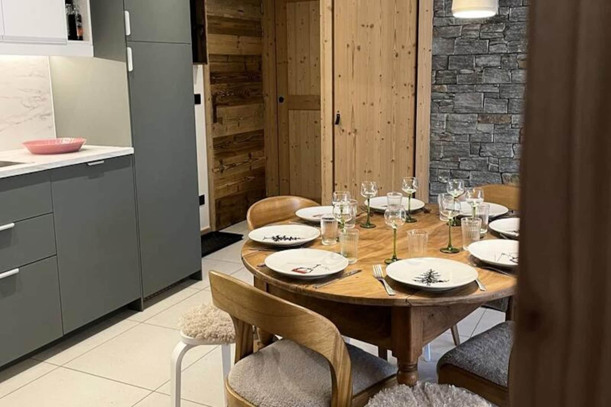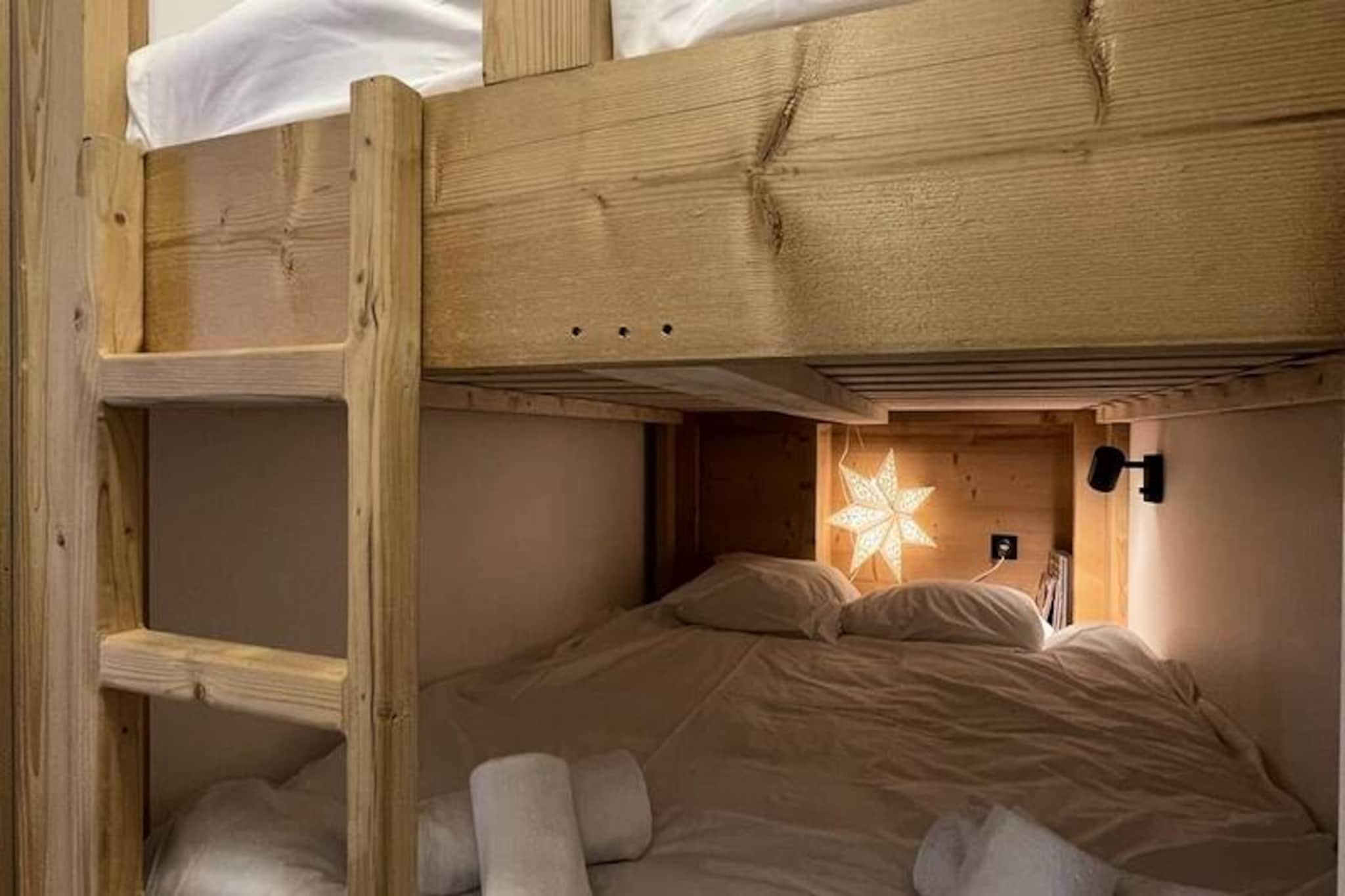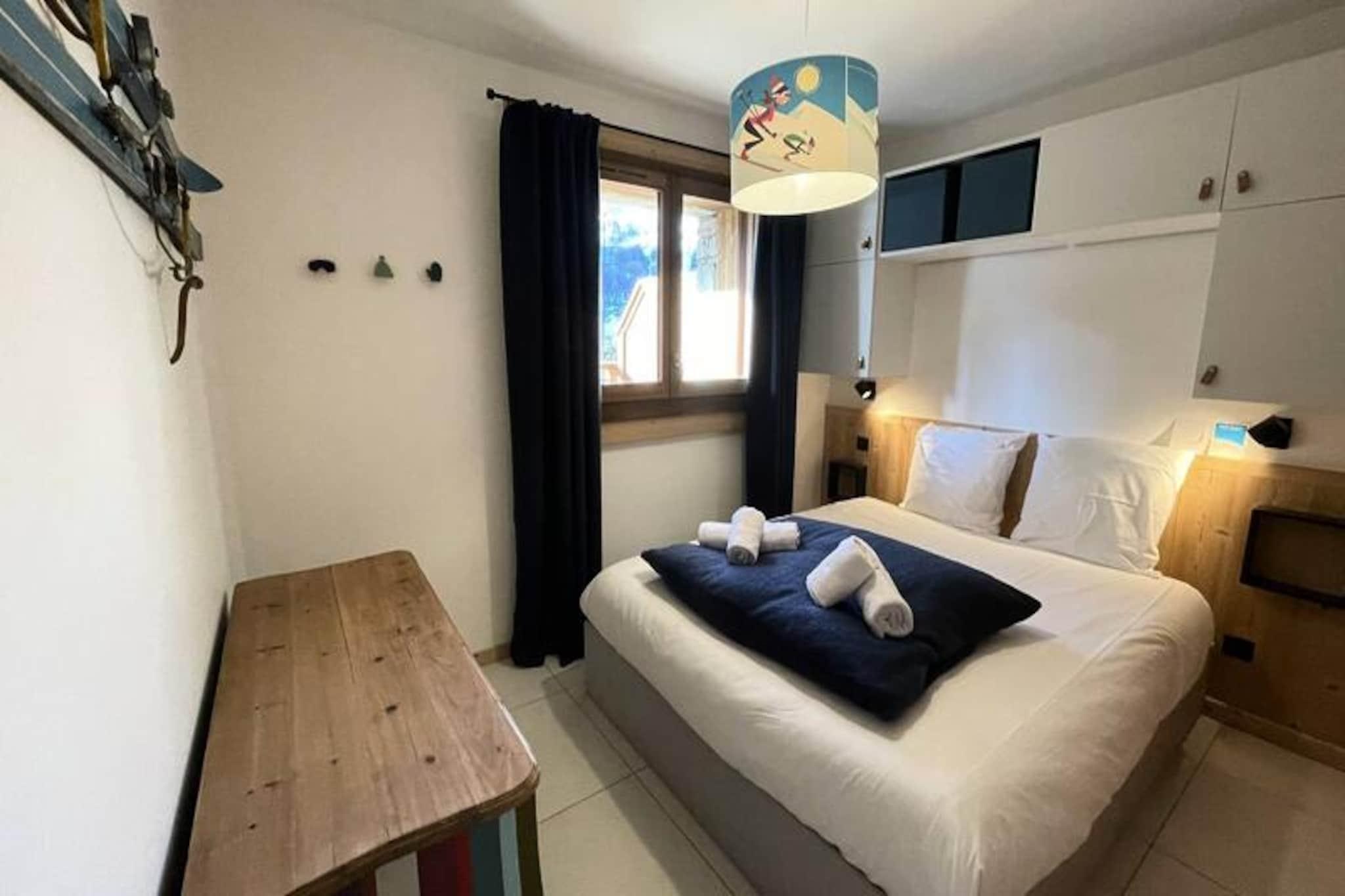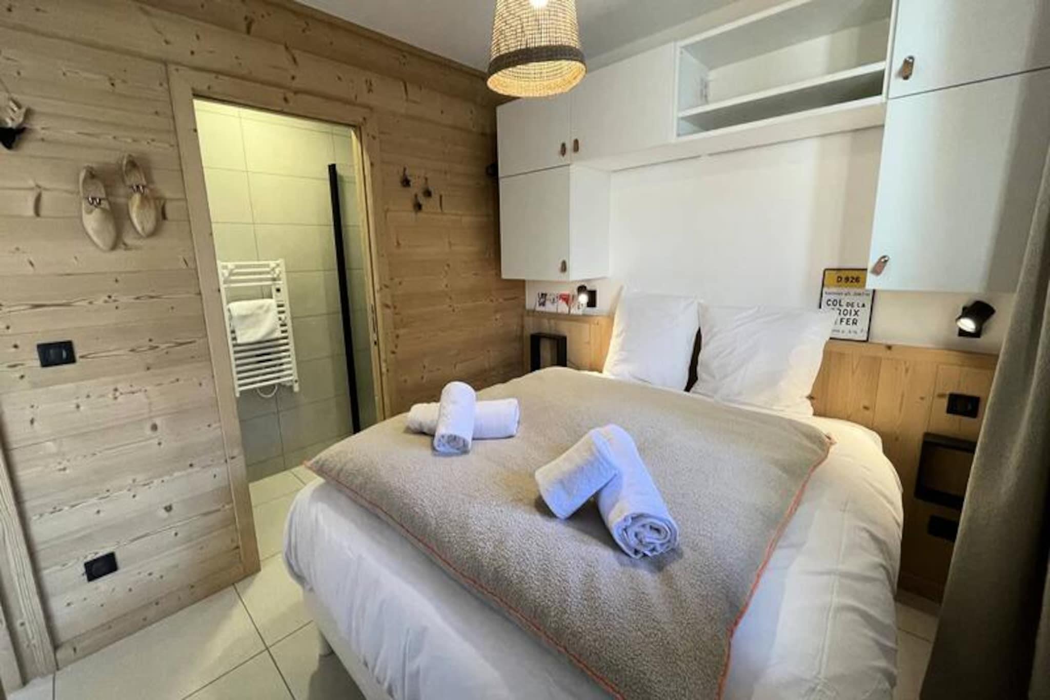 Højt over den charmerende landsby Plan du Moulin inviterer denne elegante lejlighed dig til at opleve magien i de franske alper med stil og komfort. Badet i naturligt lys takket være sin sydvendte beliggenhed kombinerer boligen moderne bekvemmeligheder med en varm, alpin atmosfære, der føles både luksuriøs og indbydende. Uanset om du er her for at klatre gennem uberørte skråninger eller blot slappe af og nyde udsigten over bjergene, tilbyder denne ejendom de perfekte rammer for din ferie. \n\nTræd indenfor for at opdage et gennemtænkt designet rum, der imødekommer ethvert behov. Stuen åbner ud til en rummelig terrasse på 25 m², møbleret med bord og stole til udendørs spisning eller stille øjeblikke under solen. Opholdsstuen er perfekt til afslapning efter en dag med eventyr, mens det fuldt udstyrede køkken gør madlavning til en leg. To sydvendte soveværelser, hver med queensize-senge, lover afslappende nætter, hvoraf det ene tilbyder et privat brusebad. En hyggelig sovealkove med en dobbeltkøjeseng deler et andet brusebad, hvilket sikrer komfort for alle gæster. Yderligere fordele inkluderer en reserveret indendørs parkeringsplads, et skiskab med støvletørrer samt inkluderet sengelinned og håndklæder for ultimativ bekvemmelighed. \n\nBeliggende kun 200 meter fra begynderpisterne og 450 meter fra Plan du Moulin Express-stoleliften, placerer denne bolig dig i hjertet af alpin spænding. Gå en tur gennem landsbyen for at udforske lokale butikker og restauranter, eller benyt dig af nedsatte priser på liftkort og leje af udstyr, når du booker på forhånd. I en højde af 1750 meter er du omgivet af betagende landskaber og uendelige muligheder for eventyr. \n\nUanset om du planlægger en vinterferie eller et sommerophold, er denne lejlighed din port til uforglemmelige øjeblikke i Alperne. Book nu, og lad Plan du Moulins skønhed skabe minder for livet.