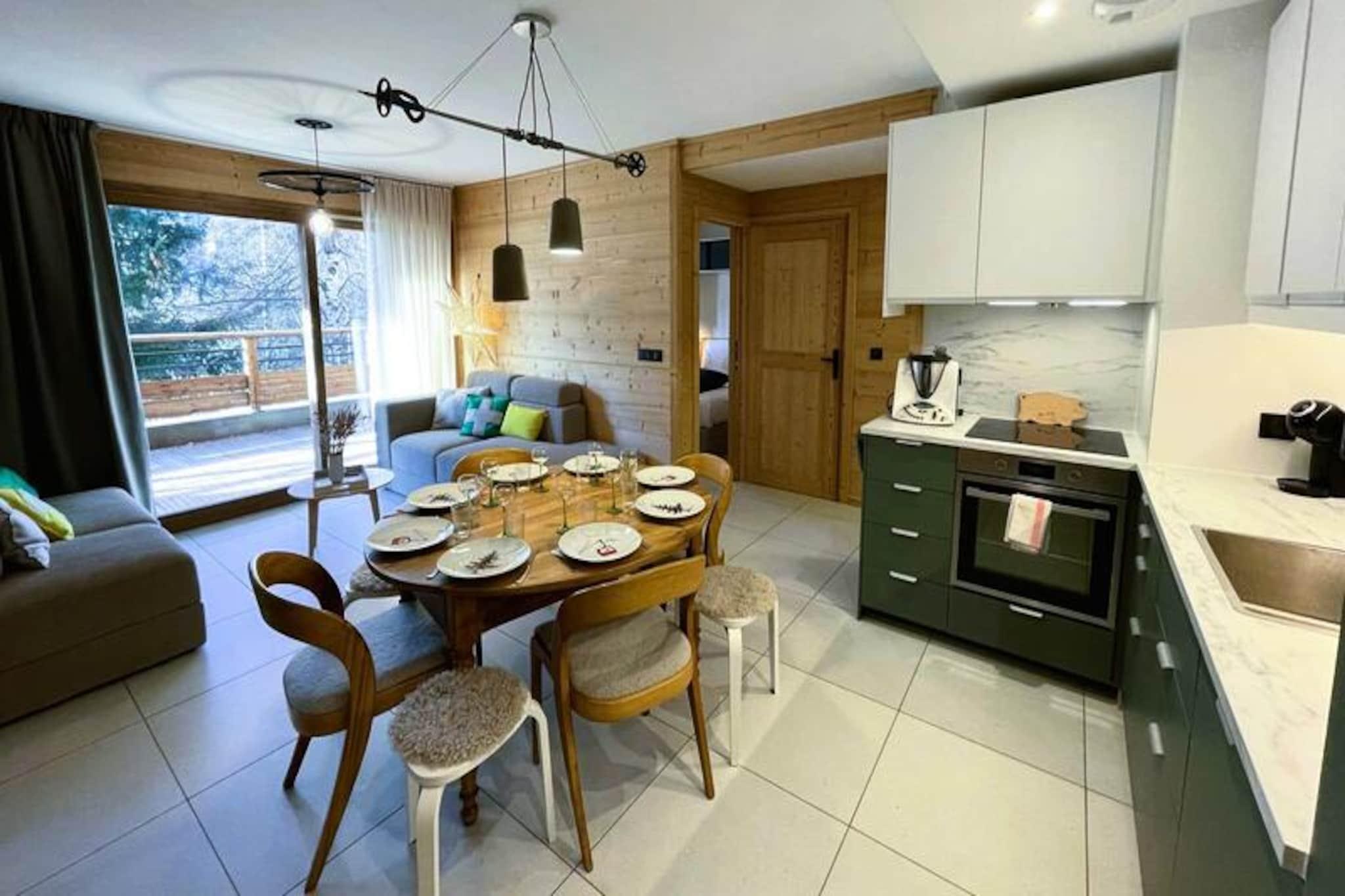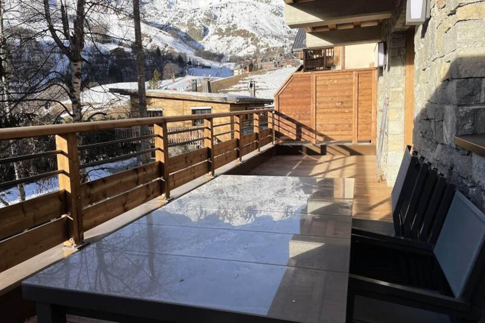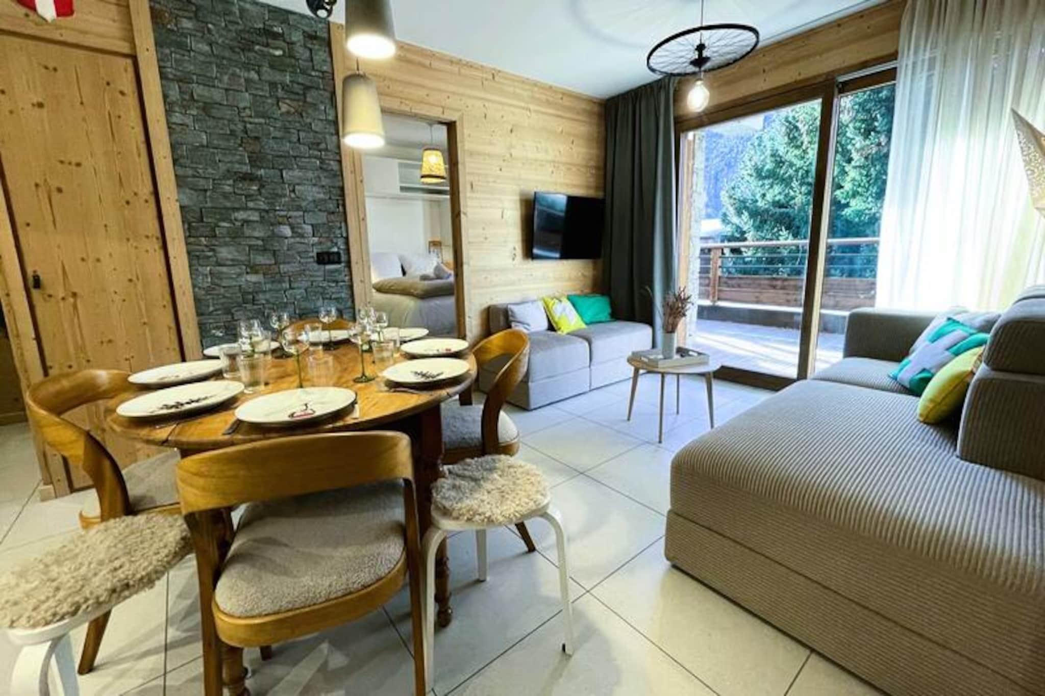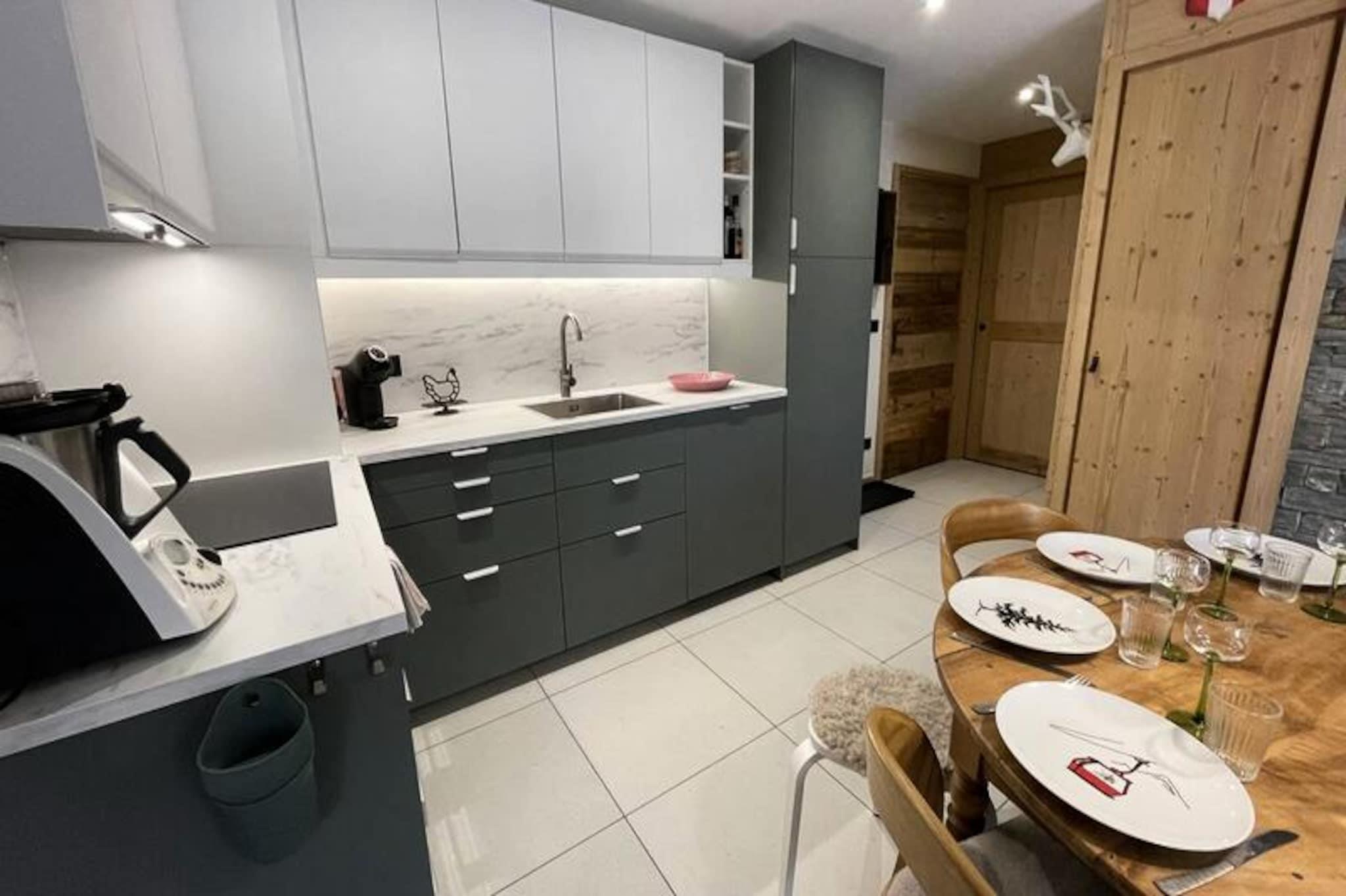 Højt over den charmerende landsby Plan du Moulin inviterer denne elegante lejlighed dig til at opleve magien i de franske alper med stil og komfort. Badet i naturligt lys takket være sin sydvendte beliggenhed kombinerer boligen moderne bekvemmeligheder med en varm, alpin atmosfære, der føles både luksuriøs og indbydende. Uanset om du er her for at klatre gennem uberørte skråninger eller blot slappe af og nyde udsigten over bjergene, tilbyder denne ejendom de perfekte rammer for din ferie. \n\nTræd indenfor for at opdage et gennemtænkt designet rum, der imødekommer ethvert behov. Stuen åbner ud til en rummelig terrasse på 25 m², møbleret med bord og stole til udendørs spisning eller stille øjeblikke under solen. Opholdsstuen er perfekt til afslapning efter en dag med eventyr, mens det fuldt udstyrede køkken gør madlavning til en leg. To sydvendte soveværelser, hver med queensize-senge, lover afslappende nætter, hvoraf det ene tilbyder et privat brusebad. En hyggelig sovealkove med en dobbeltkøjeseng deler et andet brusebad, hvilket sikrer komfort for alle gæster. Yderligere fordele inkluderer en reserveret indendørs parkeringsplads, et skiskab med støvletørrer samt inkluderet sengelinned og håndklæder for ultimativ bekvemmelighed. \n\nBeliggende kun 200 meter fra begynderpisterne og 450 meter fra Plan du Moulin Express-stoleliften, placerer denne bolig dig i hjertet af alpin spænding. Gå en tur gennem landsbyen for at udforske lokale butikker og restauranter, eller benyt dig af nedsatte priser på liftkort og leje af udstyr, når du booker på forhånd. I en højde af 1750 meter er du omgivet af betagende landskaber og uendelige muligheder for eventyr. \n\nUanset om du planlægger en vinterferie eller et sommerophold, er denne lejlighed din port til uforglemmelige øjeblikke i Alperne. Book nu, og lad Plan du Moulins skønhed skabe minder for livet.