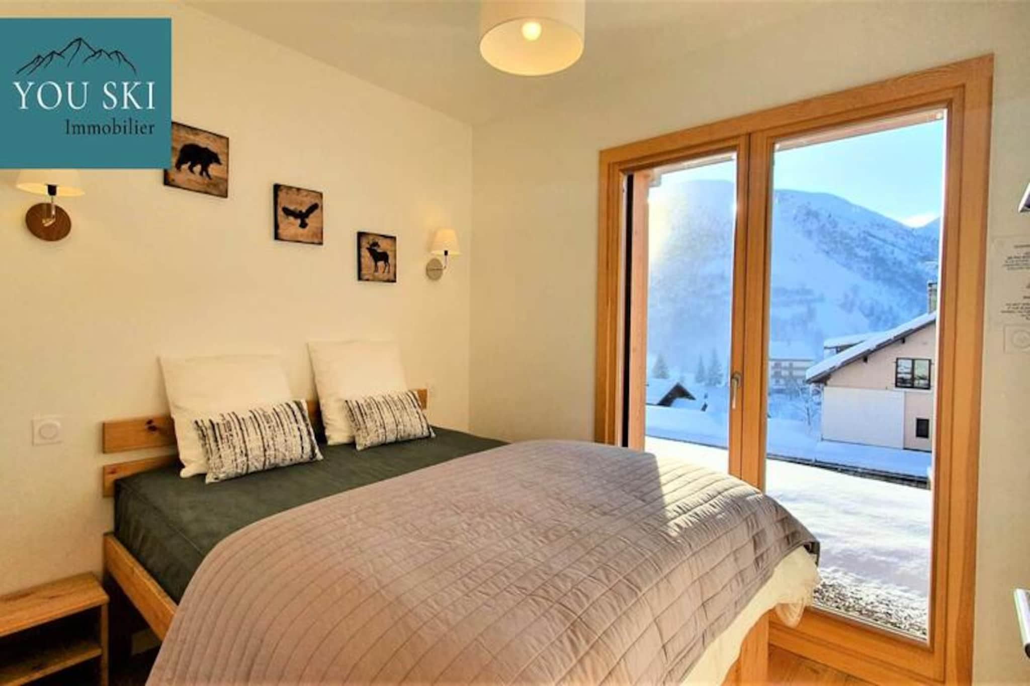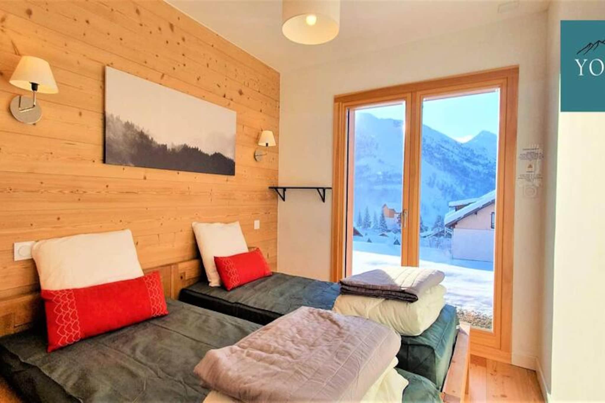 Denne rummelige hytte kan komfortabelt rumme op til otte g?ster og tilbyder tre sovev?relser: et med dobbeltseng, et med to enkeltsenge og et andet med 90 cm k?jesenge. Et separat soveomr?de tilf?jer ekstra fleksibilitet. Hytten indeholder ogs? to badev?relser og et toilet. K?ledyr er ikke tilladt. Med moderne bekvemmeligheder som gratis Wi-Fi, et tv, to skiskabe og elektriske skot?rrere samt to parkeringspladser er denne ejendom perfekt til en skiferie. Hytten er ideelt beliggende i Saint Sorlin d'Arves, kun 400 meter fra pisterne, skiskolen og butikkerne, hvilket giver nem adgang til resortet. Udforsk n?rliggende caf?er, restauranter og butikker, og nyd en betagende udsigt over de omkringliggende bjerge. Omr?det byder p? vintersportsaktiviteter og natursk?nne vandre- eller cykelstier til sjov ?ret rundt. Det moderne k?kken er fuldt udstyret med opvaskemaskine, stort k?leskab, ovn, kaffemaskiner (filter og pod), elkedel, br?drister og raclette- og fonduemaskiner. For nemheds skyld er der vaskemaskine og t?rretumbler. Opholdsstuen har pillefyr, elektriske rulleskodder og balkon med en fantastisk udsigt.