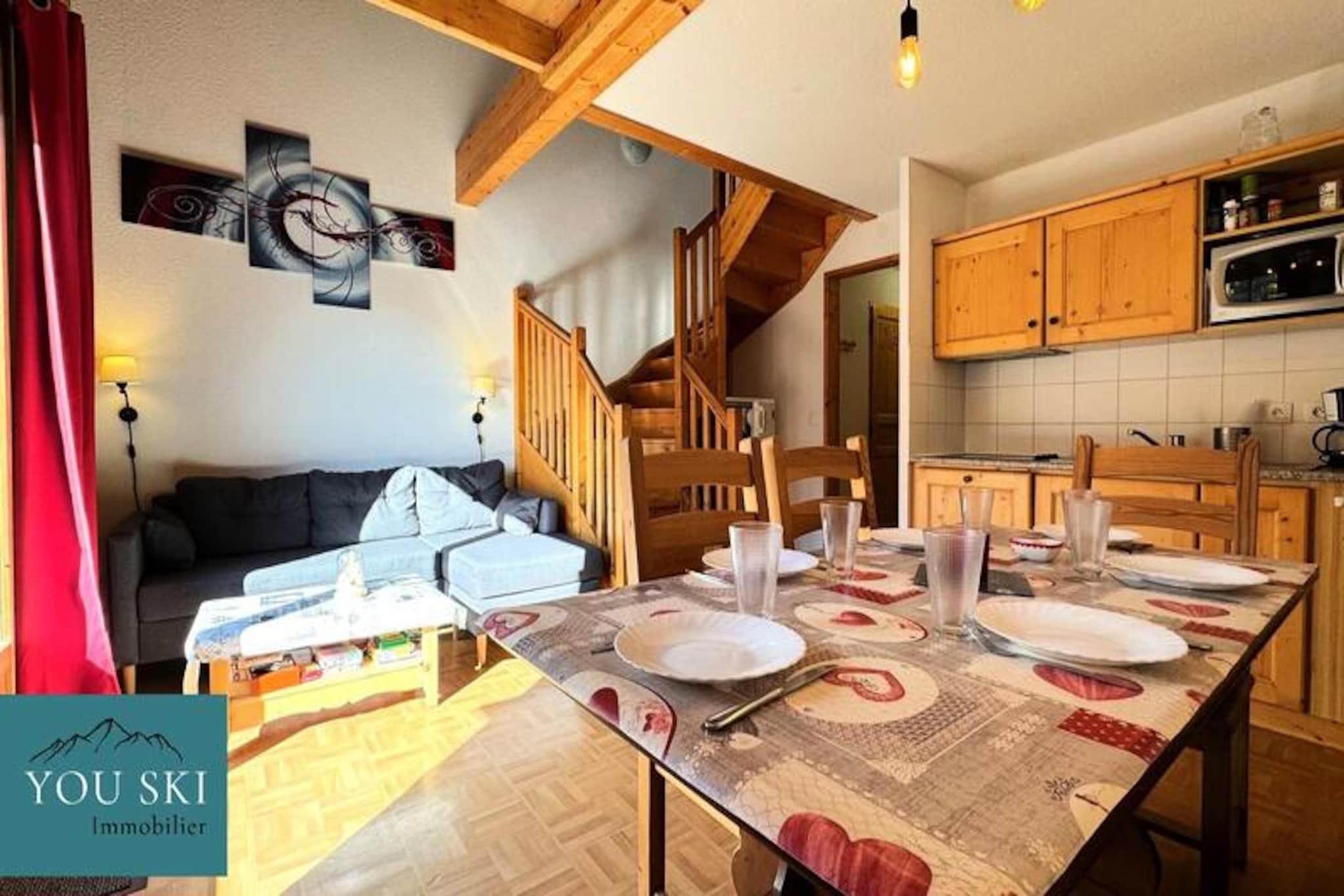 Denne charmerende ferielejlighed kan rumme op til 7 gæster, og byder på et soveværelse med en dobbeltseng (140*190 cm), en stue med køkken og opholdsstue samt en balkon. Ovenpå finder du en mezzanin med en dobbeltseng og en enkeltseng samt et separat soveværelse med en enkeltseng og en køjeseng, perfekt til familier eller grupper. Ejendommen er ikke-ryger, og kæledyr er ikke tilladt. Lejligheden ligger i Les Chalets de St Sorlin-residensen og tilbyder nem adgang til det omkringliggende område. Resortet ligger tæt på vandrestier, skiløjper og forskellige udendørs aktiviteter. Du finder også bekvemme faciliteter som markeder, caféer og butikker i nærheden, hvilket gør det til et fantastisk sted for både afslapning og eventyr. Den opvarmede indendørs swimmingpool er tilgængelig i feriestedets åbne perioder, og tilbyder en fantastisk måde at slappe af efter en dag med udforskning. Lejligheden har et fuldt udstyret køkken med opvaskemaskine, køleskab, lille ovn, elektrisk filterkaffemaskine, kedel, brødrister og raclettegrill. Der er også et badeværelse med bruser og toilet samt et ekstra badeværelse med toilet ovenpå. For ekstra bekvemmelighed tilbyder ejendommen gratis parkering, og du kan bestille valgfri tjenester såsom leje af sengetøj og håndklæder eller WiFi mod et ekstra gebyr.
