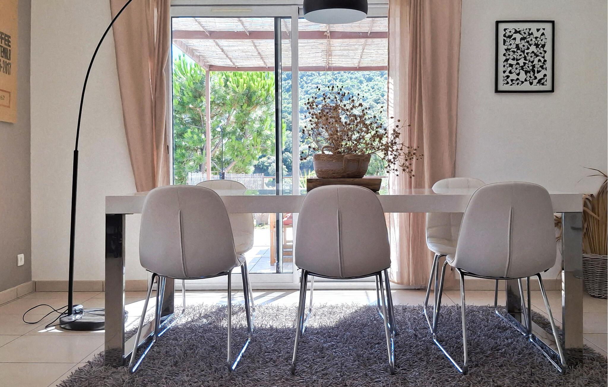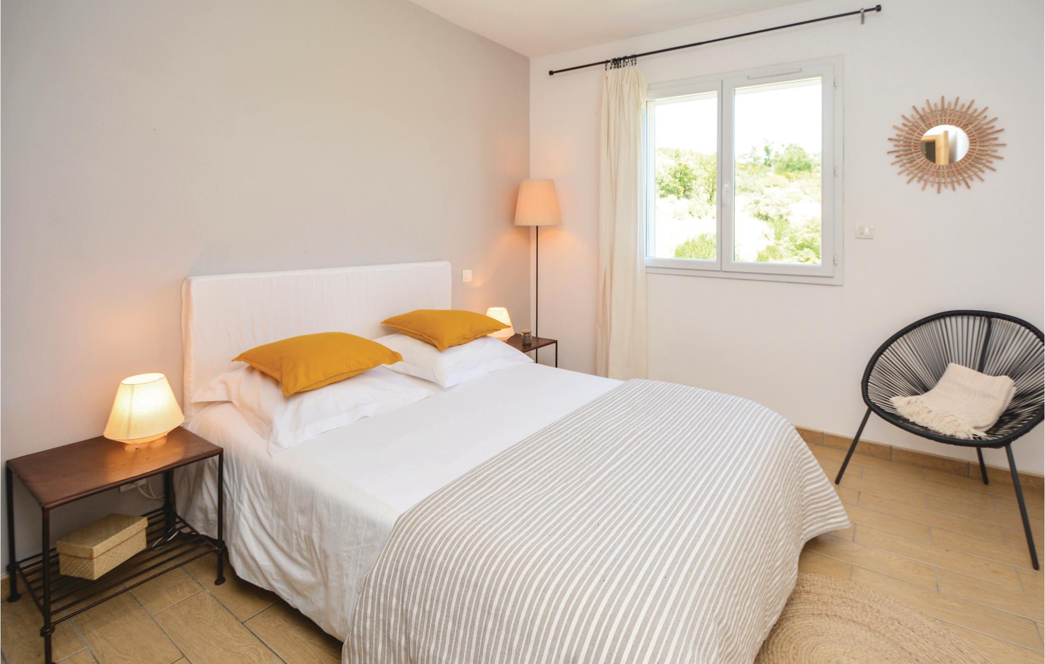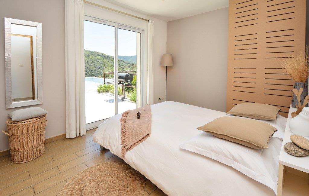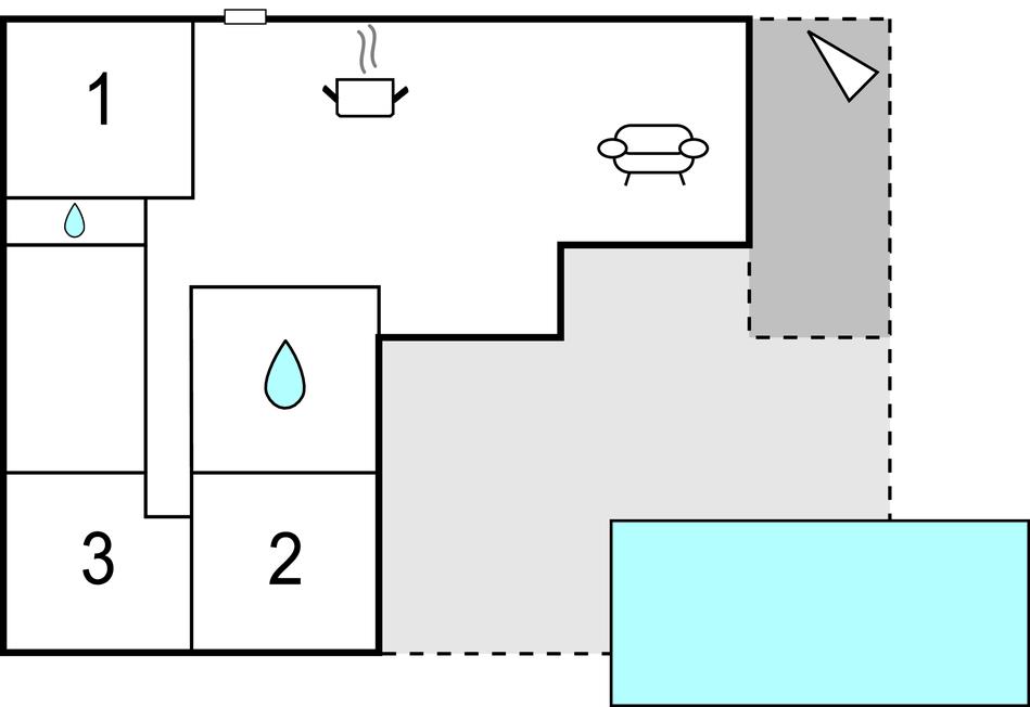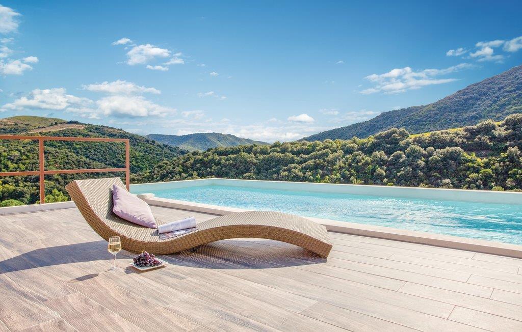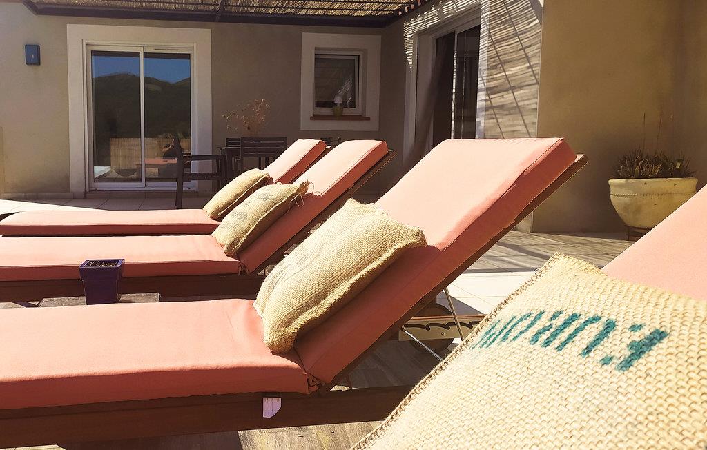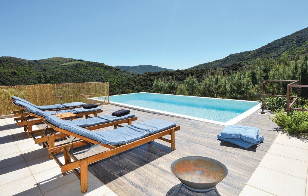 En stor terrasse, til dels overdækket, og en skøn udendørs pool sætter prikken over i'et. Ejeren bor 50 m væk, men kan ikke se jeres pool.
