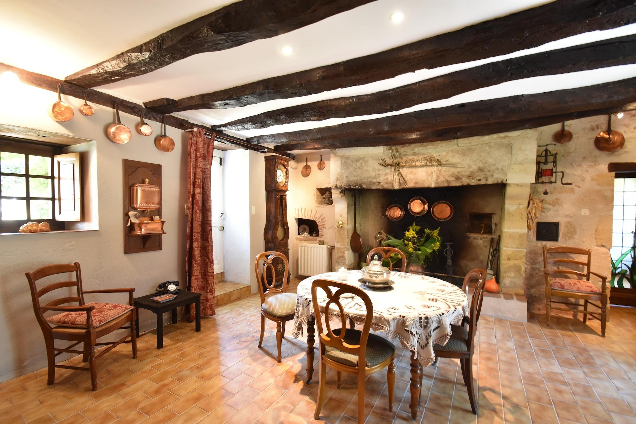 Beliggende i den rolige landsby Magnac i Saint-Jory-las-Bloux, er dette charmerende feriehus perfekt til op til 6 gæster. Omgivet af natur og kun 5 km fra Excideuil og 12 km fra Thiviers, tilbyder det nem adgang til supermarkeder, restauranter og lokale attraktioner. Den indhegnede have strækker sig over 1000 m² og omfatter en privat swimmingpool (8 x 4 m, åben maj-september), legeredskaber, bordtennis og billard - ideel til familier med børn. Indenfor har villaen tre soveværelser, to badeværelser (et med vaskemaskine), en hyggelig stue med brændeovn, TV, DVD og stereoanlæg, plus en separat spisestue med pejs. Køkkenet er fuldt udstyret med kaffemaskine, mikroovn, opvaskemaskine og køleskab med fryser. Opvarmning sikrer komfort året rundt, og faciliteter såsom en børneseng og høj stol er inkluderet. Gæsterne kan nyde nærliggende aktiviteter såsom golf på Domaine d'Essendiéras (6 km), ridning i Pompadour (30 km), kajaksejlads i Brantôme (30 km) og eventyrparker. Cykeludlejning er tilgængelig kun 3 km væk i Corgnac-sur-l'Isle. Med gratis WiFi og kæledyrsvenlig adgang tilbyder denne villa et afslappende og aktivitetsfyldt ophold i hjertet af Dordogne.