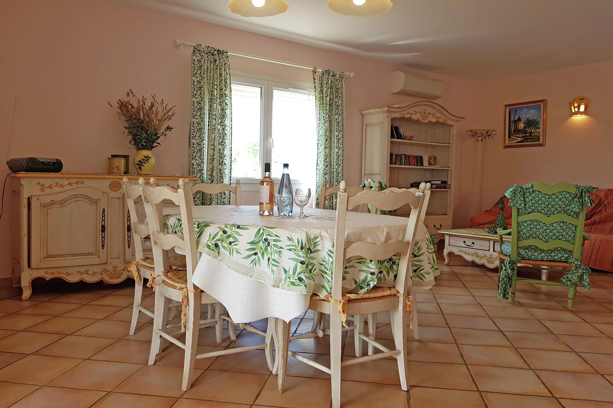 Stueetage: (Stue(Fjernsyn, pejs, DVD-afspiller), Køkken(ovn, mikrobølgeovn, opvaskemaskine ), soveværelse(2x enkeltseng), soveværelse(dobbeltseng), badeværelse(badekar, håndvask, toilet, vaskemaskine)) garage, varme(elektrisk), terrasse, have(indhegnet), swimmingpool(privat, 5 x 5 m., opened from 1/2 May upto and including 1/2 Oct), petanquebane