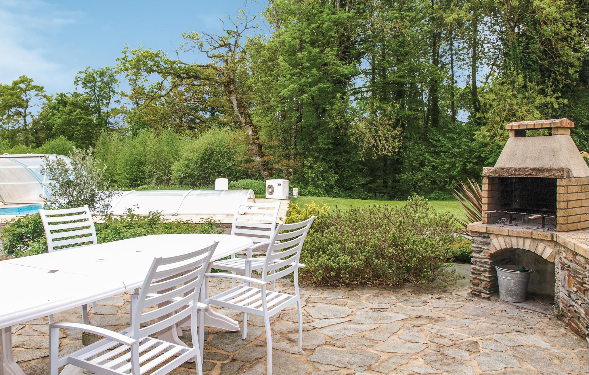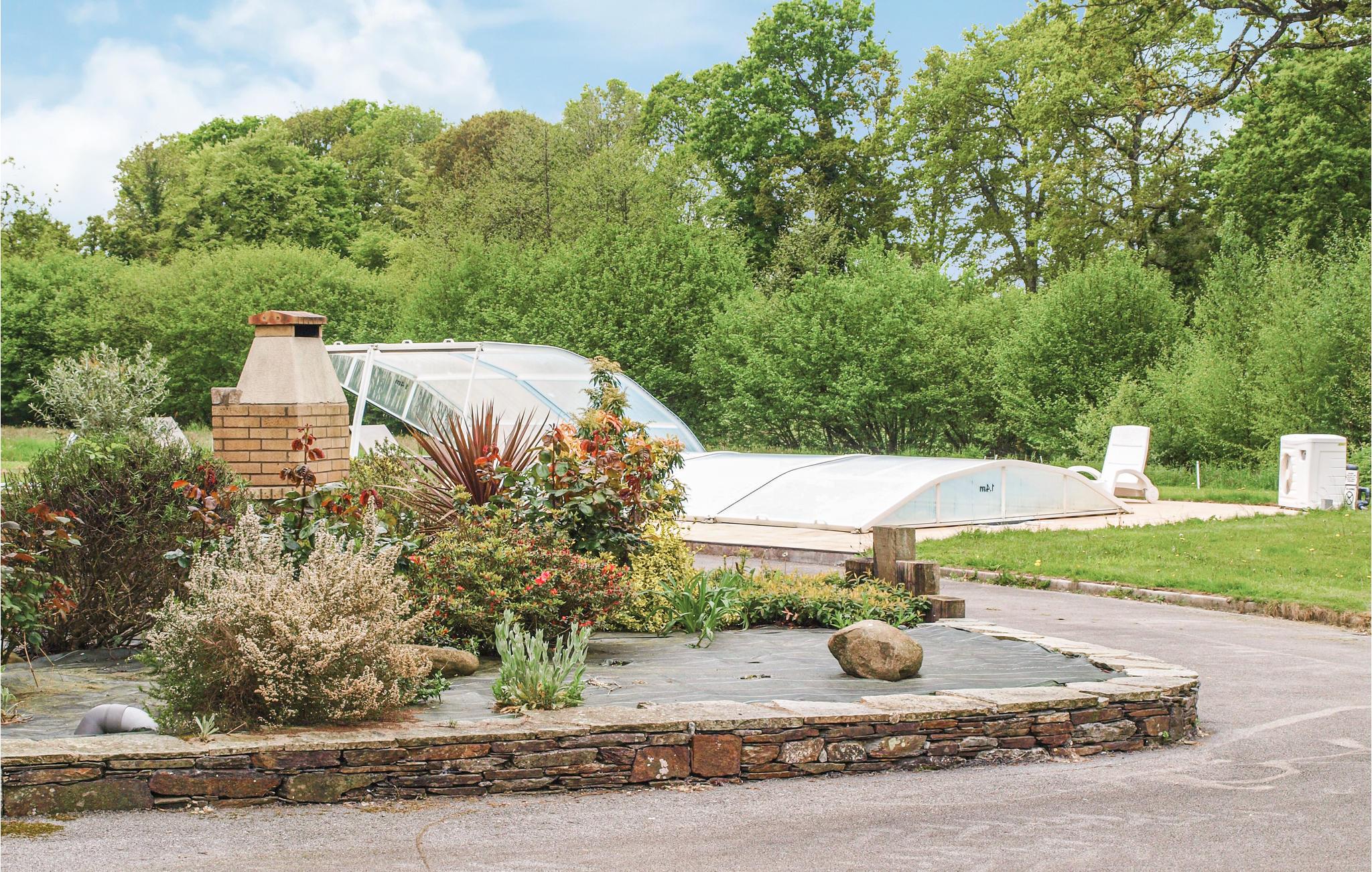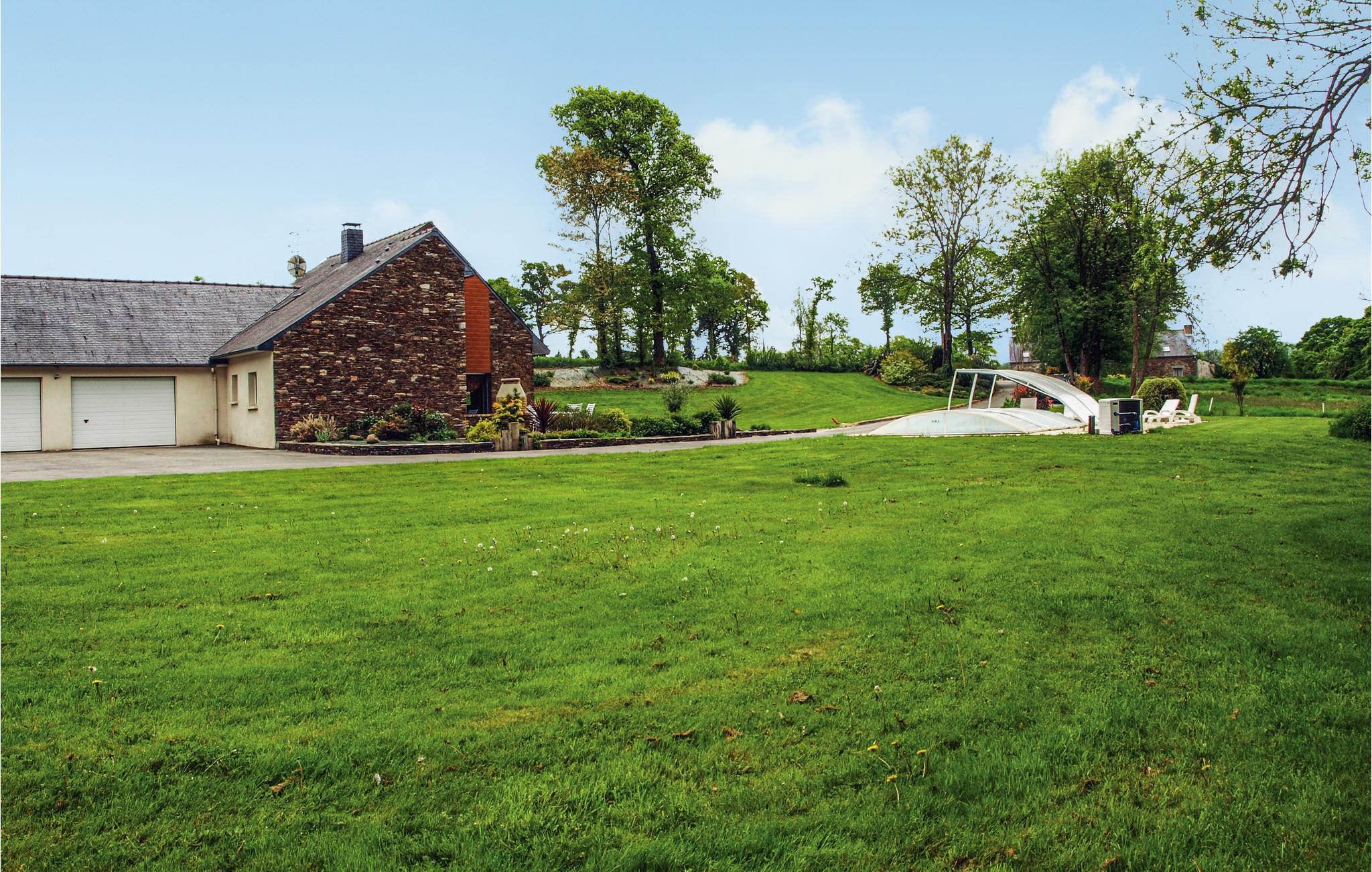 Ejendommen står på en stor grøn grund, hvor der er blomster og træer. Den opvarmede pool er handicapvenlig og er overdækket. Det har beliggenhed 4 km fra søen Bosméléac, hvor I kan dyrke mange former for vandsport og en sandstrand.