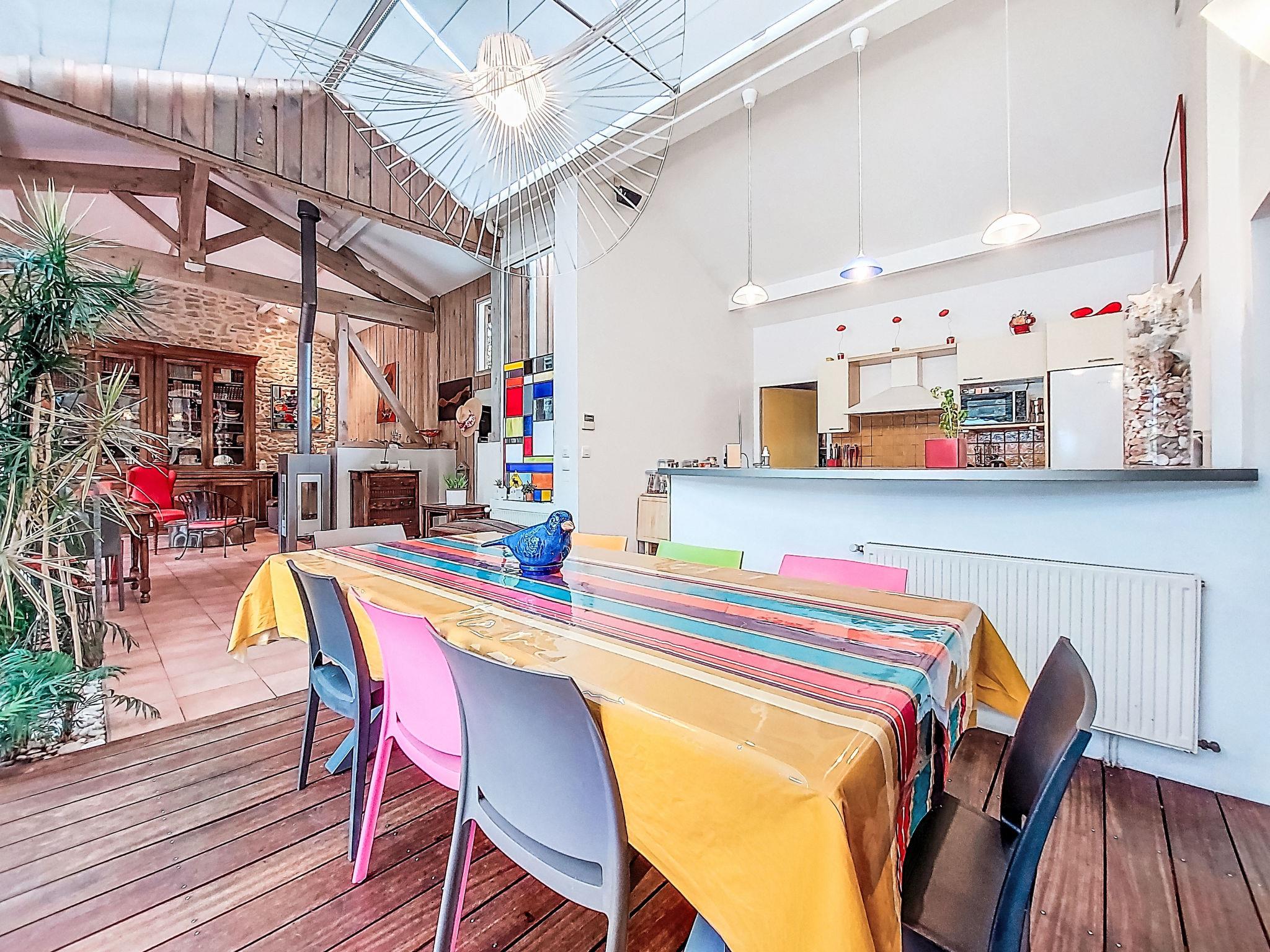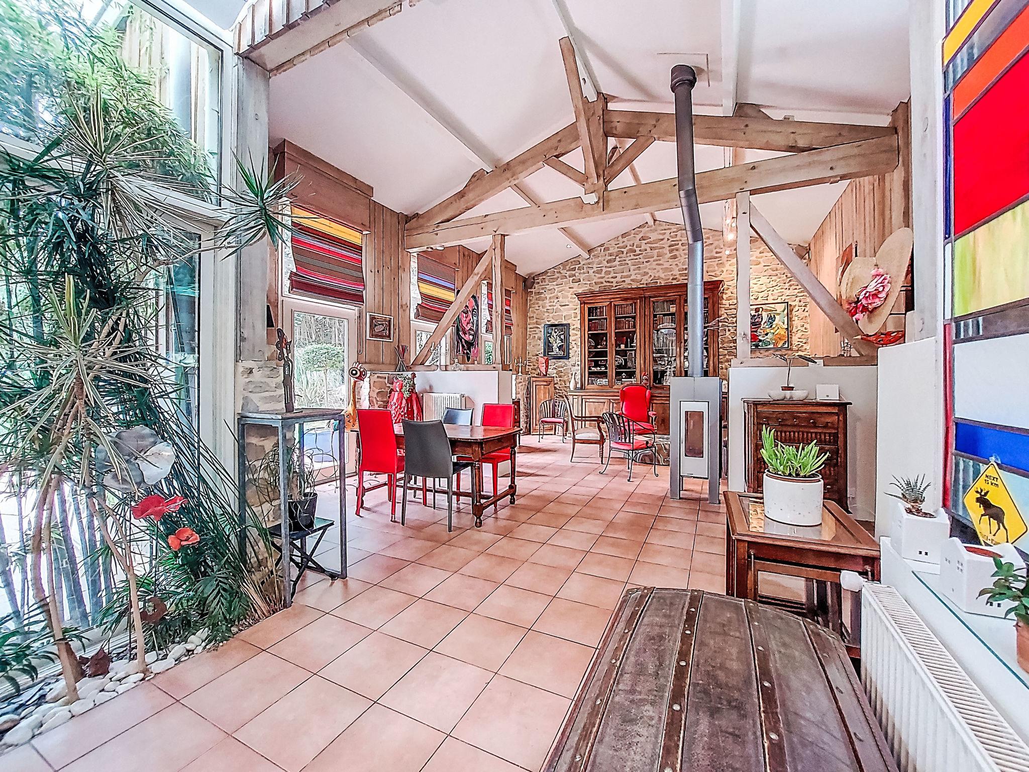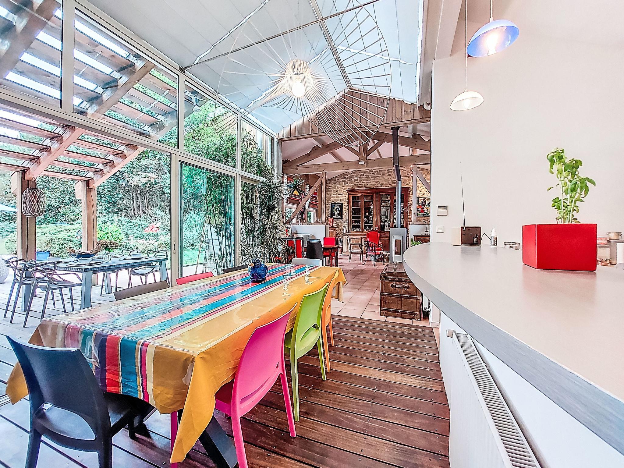 "Le Préau", 5-room house 140 m2 on 2 levels. Bright, beautiful and cosy furnishings: living/dining room with dining table and TV (flat screen), wood-burning stove and air conditioning. Exit to the terrace. 1 room with 1 french bed (160 cm, length 200 cm). 1 room with 1 french bed (140 cm, length 190 cm). Open kitchen (oven, dishwasher, 3 induction hot plates, toaster, kettle, microwave, freezer, electric coffee machine, Capsules for coffee machine (Nespresso) extra). Exit to the terrace. Bathroom, sep. WC, double hand-basin. Upper floor: 2 rooms with sloping ceilings, each room with 1 french bed (140 cm, length 190 cm), hand-basin. Heating. Wooden floors. Terrace partly roofed. Terrace furniture, barbecue (portable), deck chairs (6). Facilities: washing machine, iron, baby cot, hair dryer. Internet (WiFi, free). Please note: non-smoking house. Maximum 1 small pet/ dog allowed. Smoke alarm. Offer by a private individual according to Art. 155, IV of CGI. FRO4071