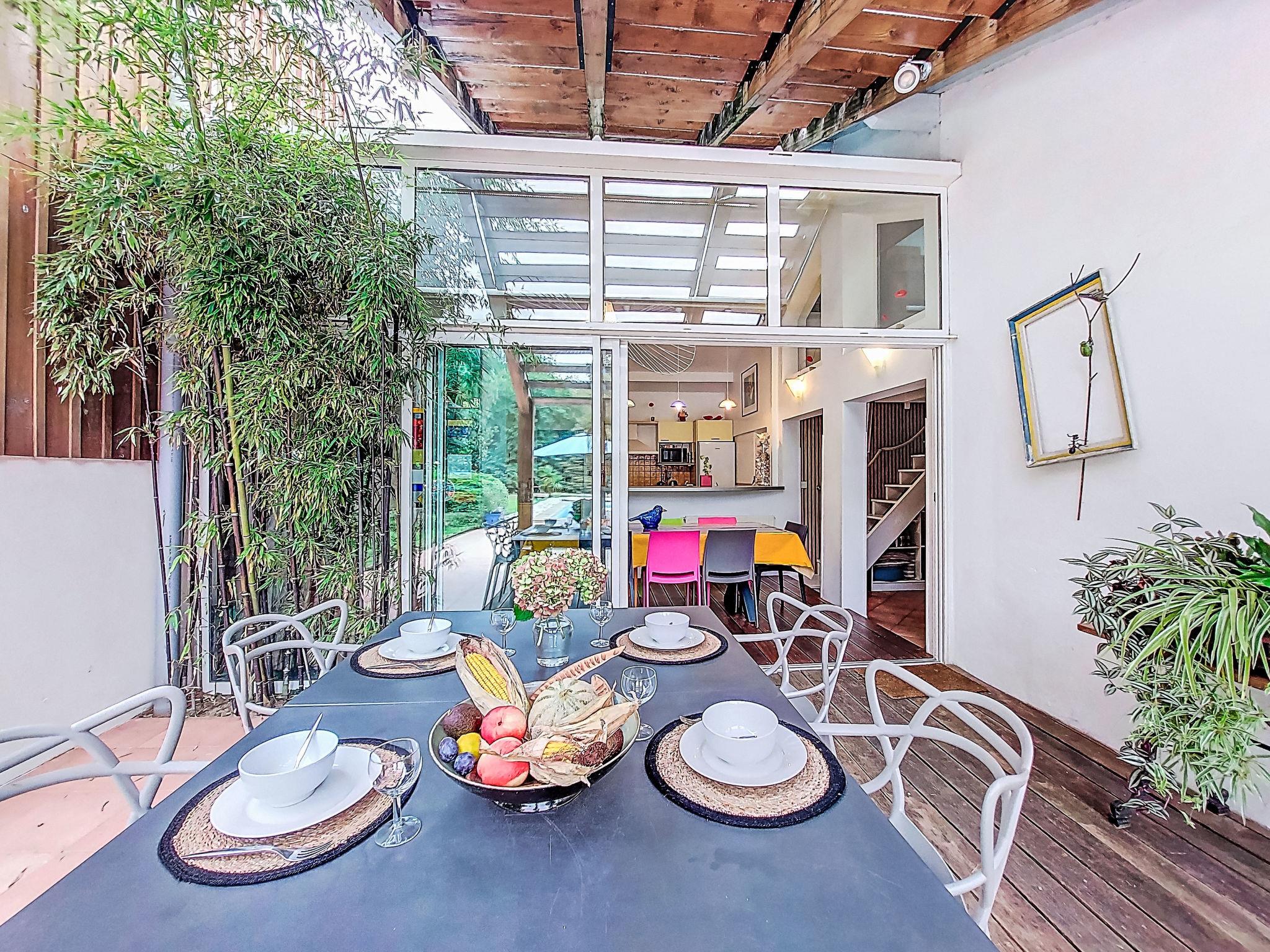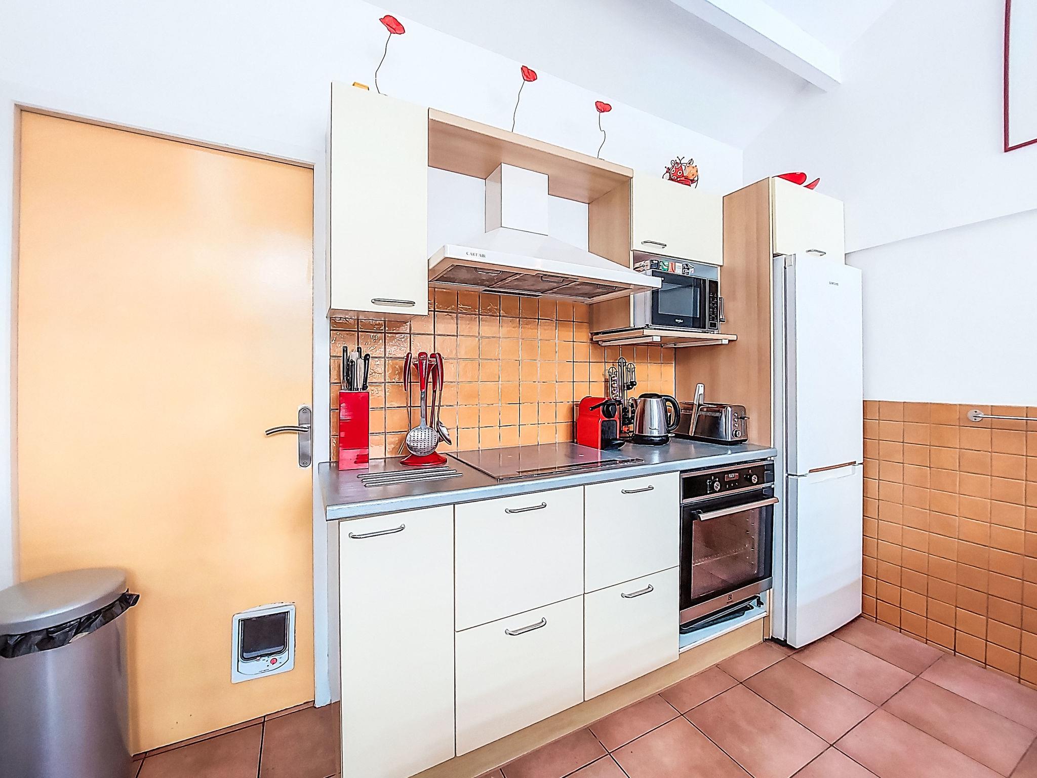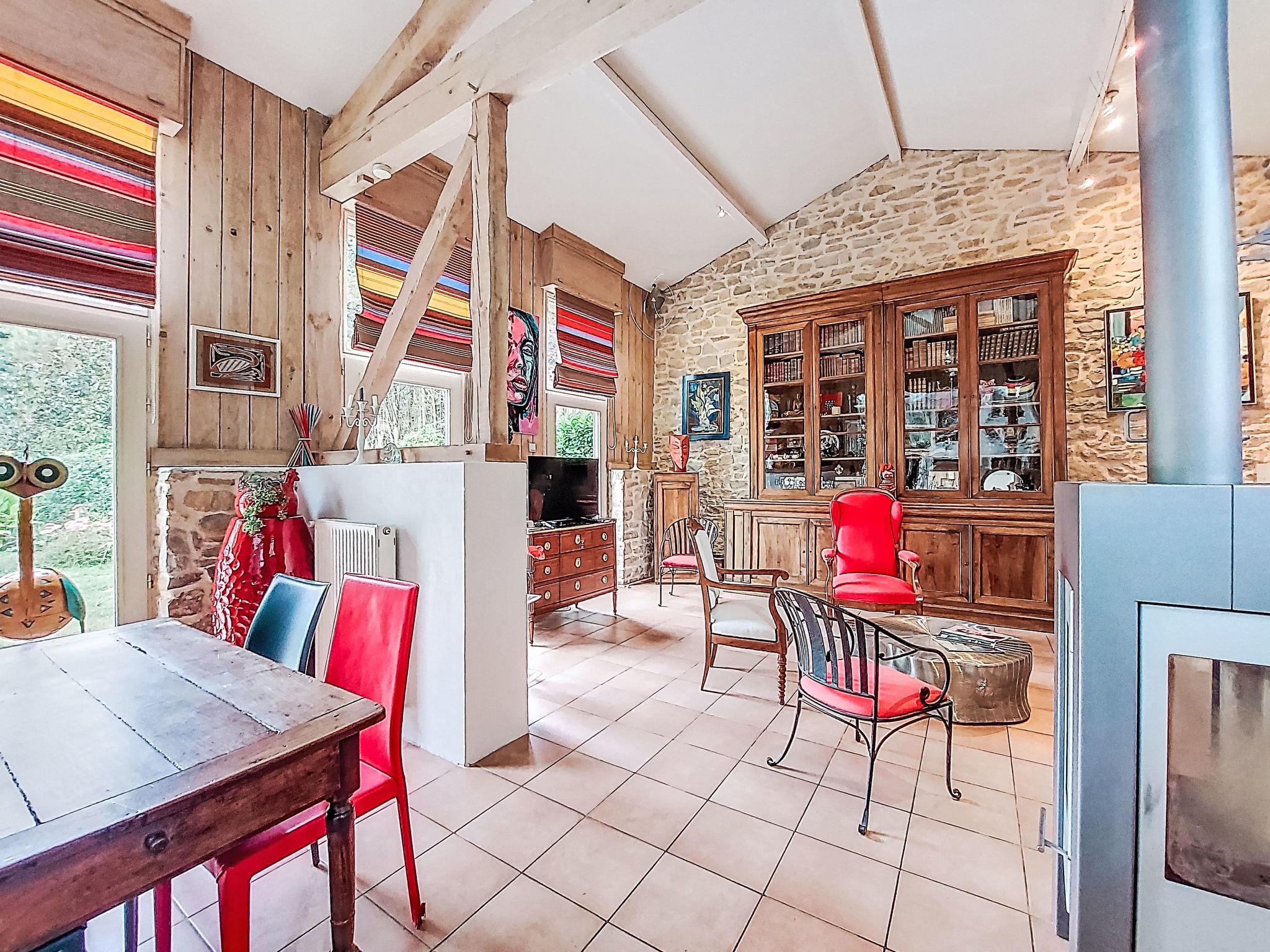 "Le Préau", 5-room house 140 m2 on 2 levels. Bright, beautiful and cosy furnishings: living/dining room with dining table and TV (flat screen), wood-burning stove and air conditioning. Exit to the terrace. 1 room with 1 french bed (160 cm, length 200 cm). 1 room with 1 french bed (140 cm, length 190 cm). Open kitchen (oven, dishwasher, 3 induction hot plates, toaster, kettle, microwave, freezer, electric coffee machine, Capsules for coffee machine (Nespresso) extra). Exit to the terrace. Bathroom, sep. WC, double hand-basin. Upper floor: 2 rooms with sloping ceilings, each room with 1 french bed (140 cm, length 190 cm), hand-basin. Heating. Wooden floors. Terrace partly roofed. Terrace furniture, barbecue (portable), deck chairs (6). Facilities: washing machine, iron, baby cot, hair dryer. Internet (WiFi, free). Please note: non-smoking house. Maximum 1 small pet/ dog allowed. Smoke alarm. Offer by a private individual according to Art. 155, IV of CGI. FRO4071